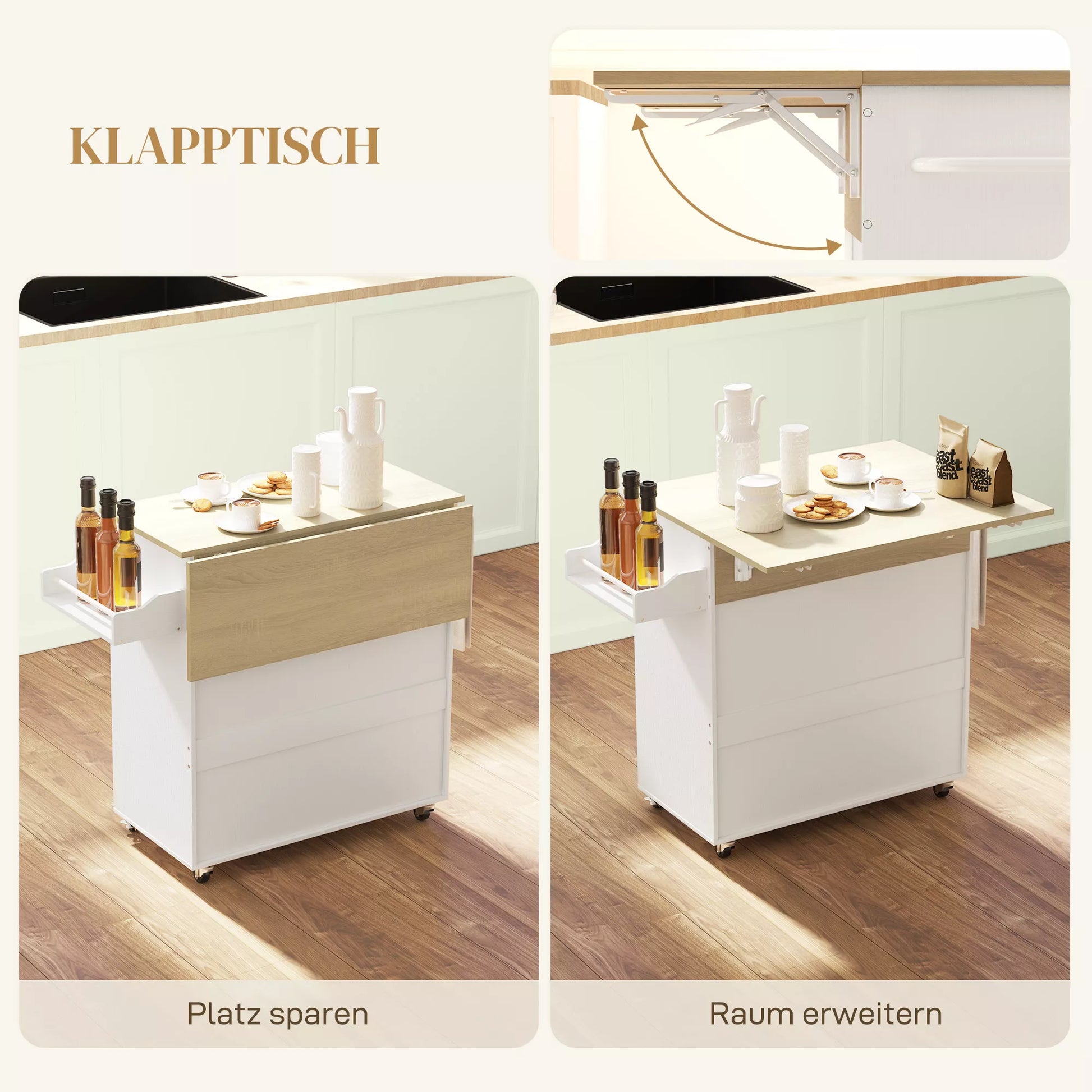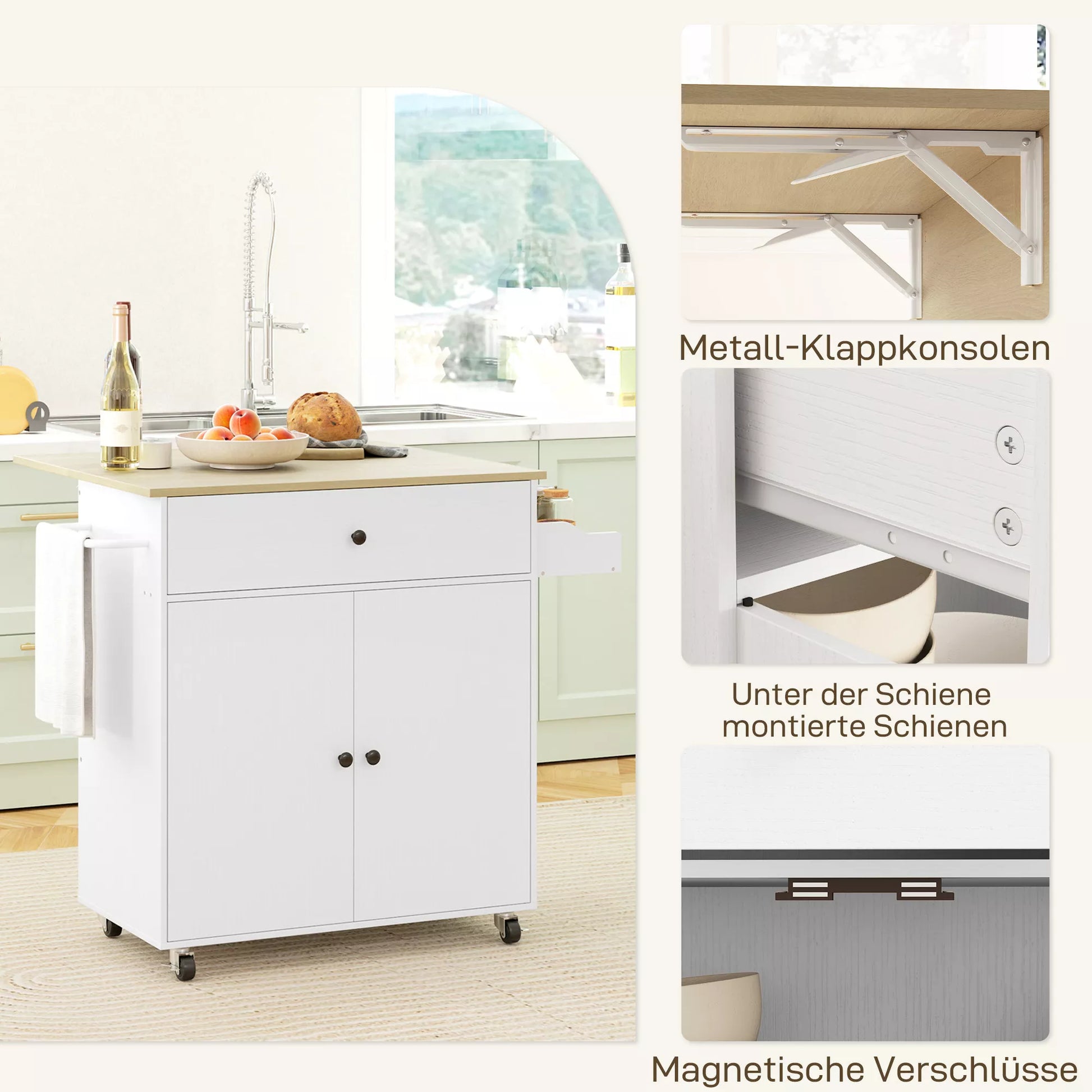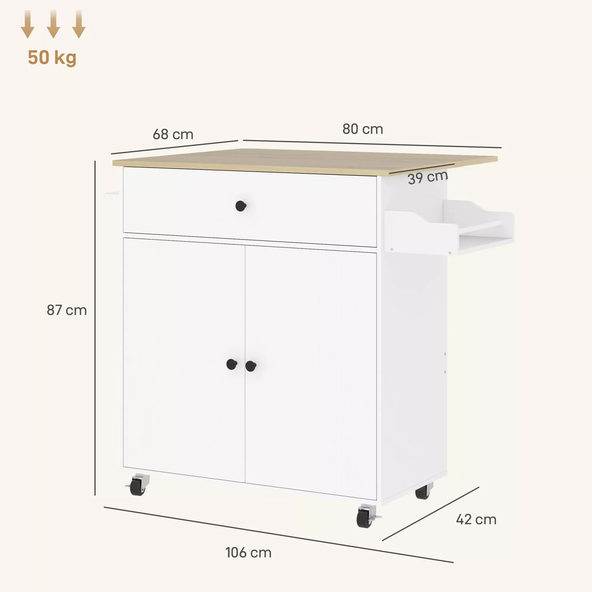Virtuvės vežimėlis su stalčiumi, spintele, rankšluosčių laikikliu, 106 x 42 x 87 cm, baltas/ąžuolas