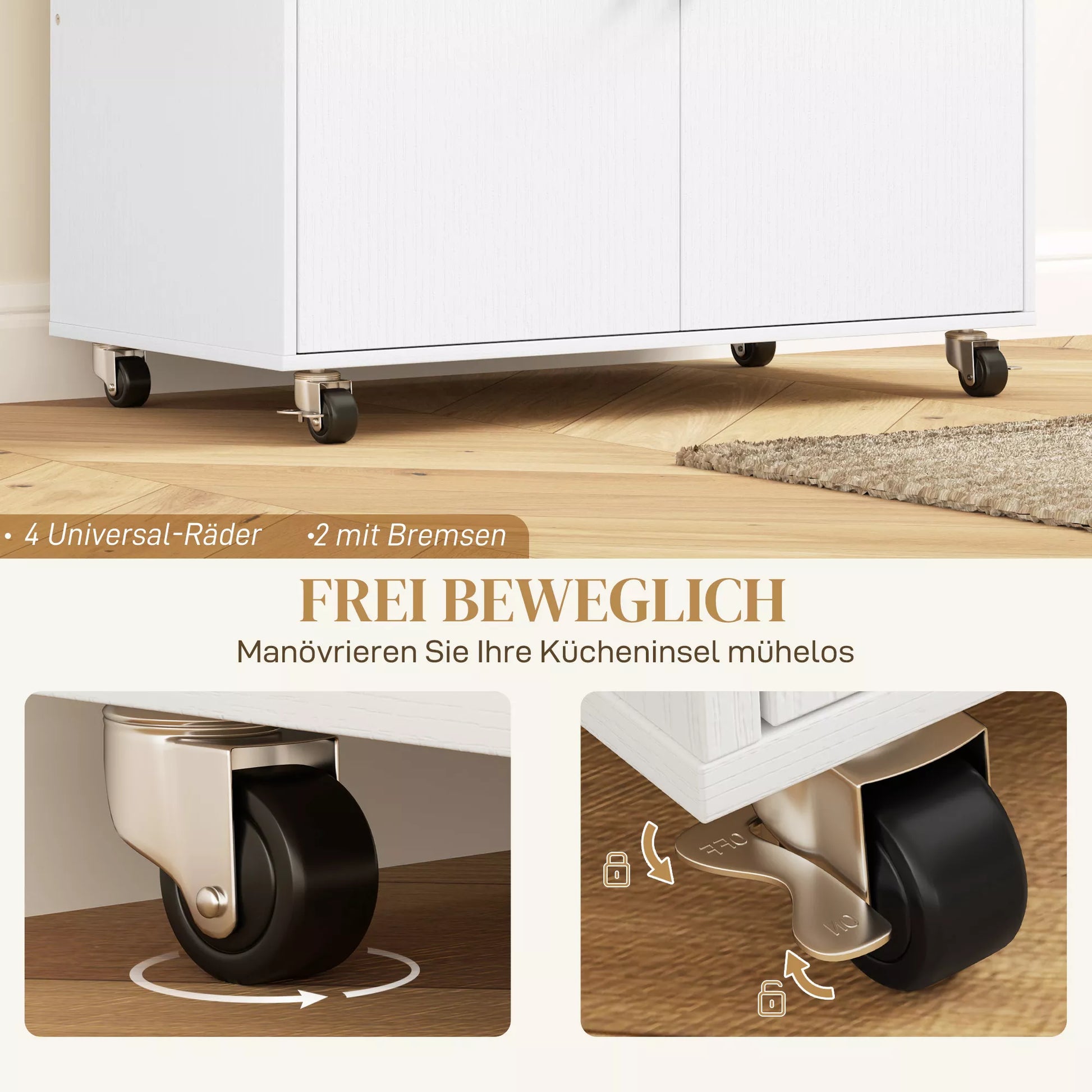 Patirkite virtuvės vežimėlio universalumą. Ištraukiamas darbo paviršius ir tvirtos metalinės atramos leidžia išplėsti darbo plotą arba pritaikyti jį mažoms patalpoms. Spintelė su dvejomis durimis ir reguliuojamu įdėklu suteikia praktišką saugojimo vietą. Be to, serviravimo vežimėlis puikiai tinka kaip stilingas valgomojo stalas arba pusryčių stalas ir papuošia bet kurią virtuvę.