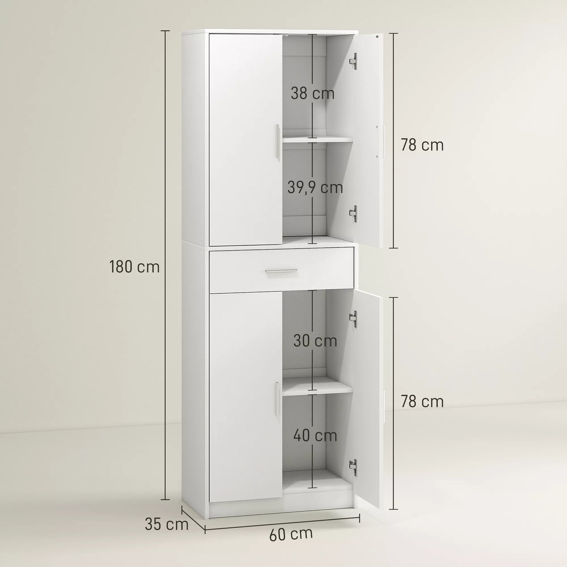 Virtuvinė spintelė, 3 pakopų reguliuojamos lentynos, medžio drožlių plokštės, MDF, daug vietos daiktams laikyti, balta