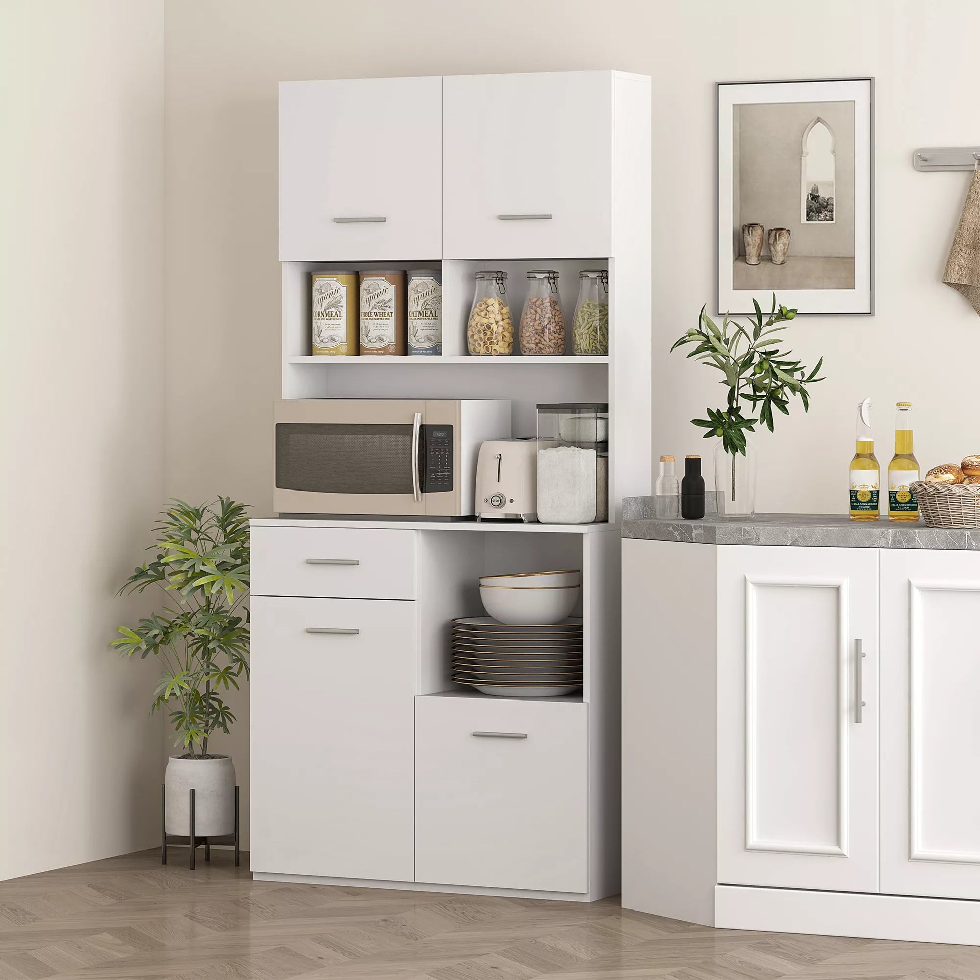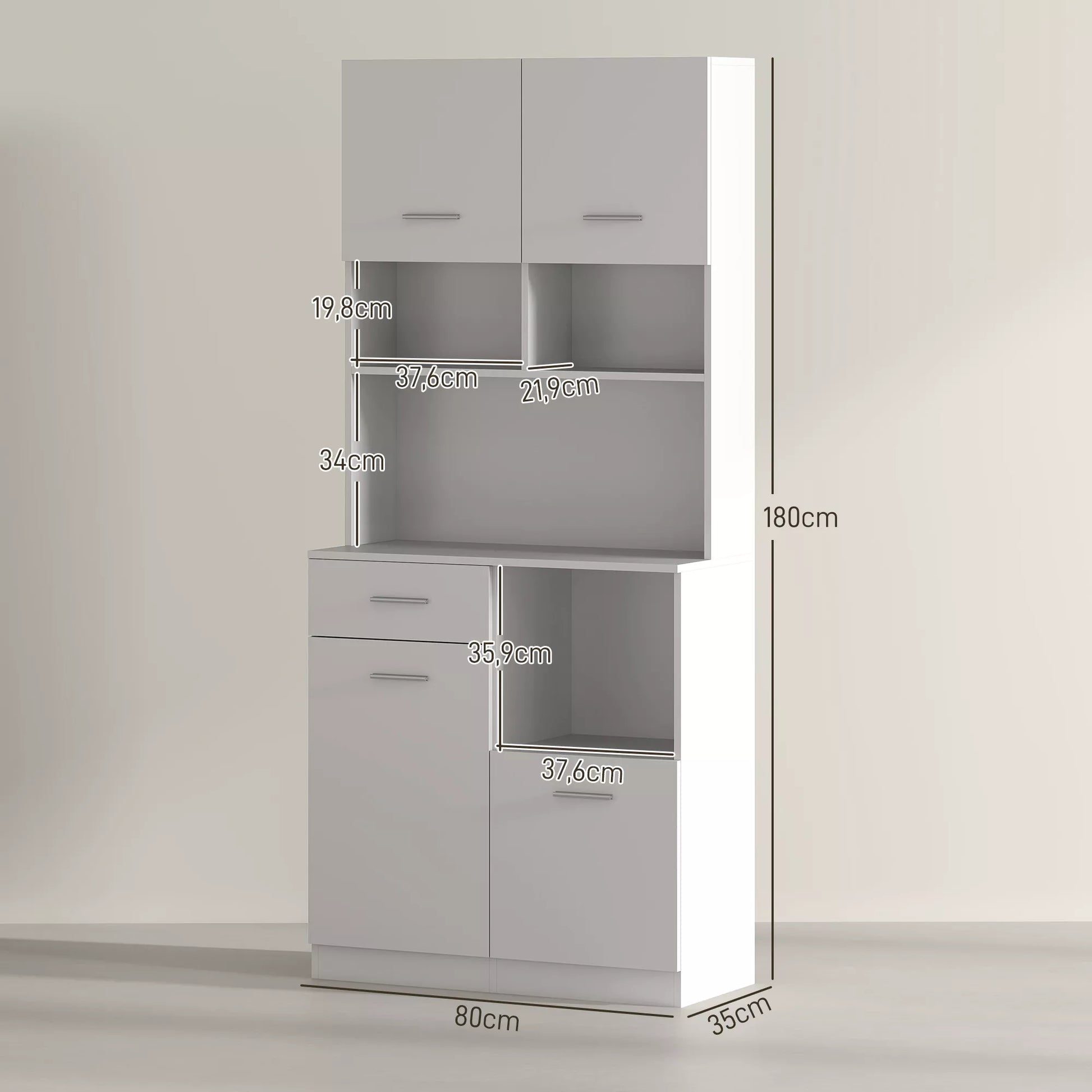 Virtuvinė spintelė, bufetas su stalčiumi, švelnaus uždarymo durelės, 80 x 35 x 180 cm, Balta