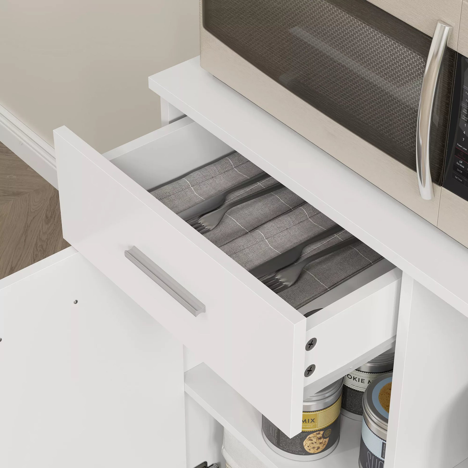 Ši stilinga komoda yra puikus uždarų ir atvirų skyrių derinys, papildytas erdviu stalviršiu. Mėgaukitės patogumu dėl švelnaus uždarymo durelių ir apsaugos nuo apvirtimo. Ši balta virtuvės spintelė su elegantiškais sidabriniais rankenėliais suteiks bet kuriai erdvei elegancijos. Paverskite savo virtuvę tvarkos ir estetikos vieta – harmoningai namų aplinkai, kuri džiugina.
