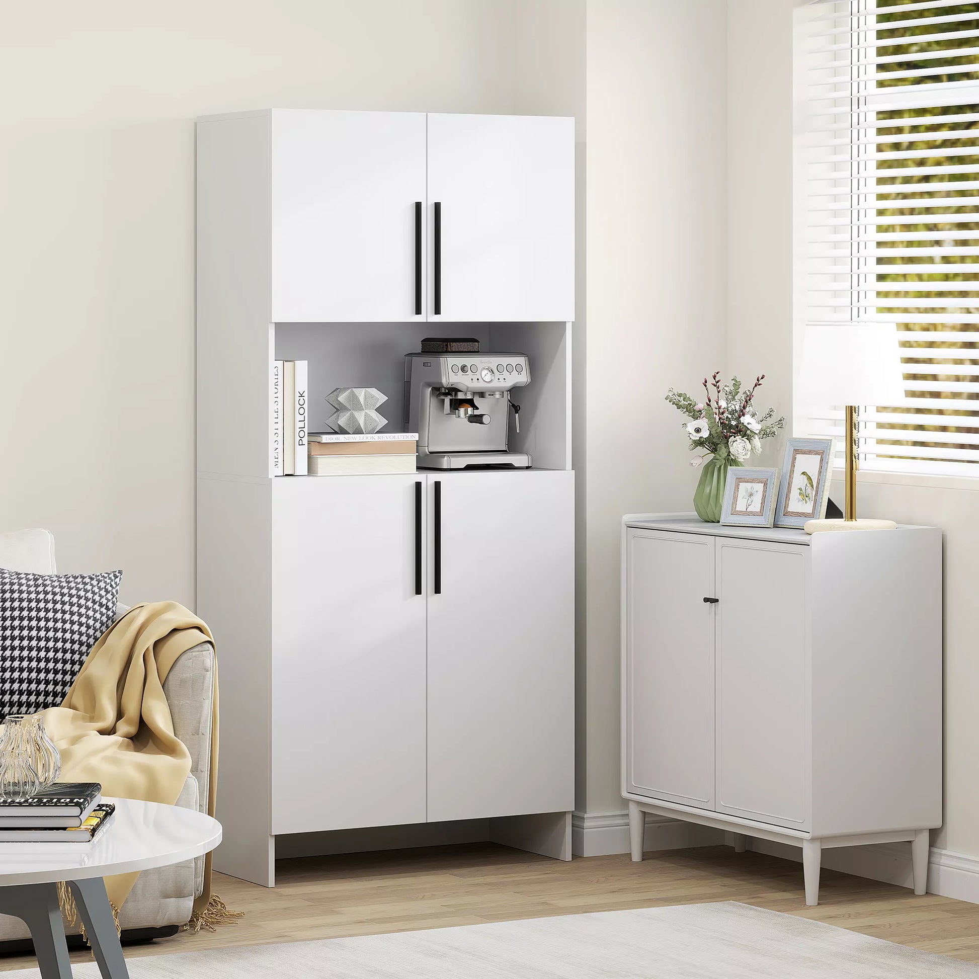 Virtuvės spintelė, sandėliuko spintelė skirta virtuvei, svetainei, valgomajam, spintelės, lentynos, mikrobangų krosnelės padėklas, medžio drožlių plokštė, balta