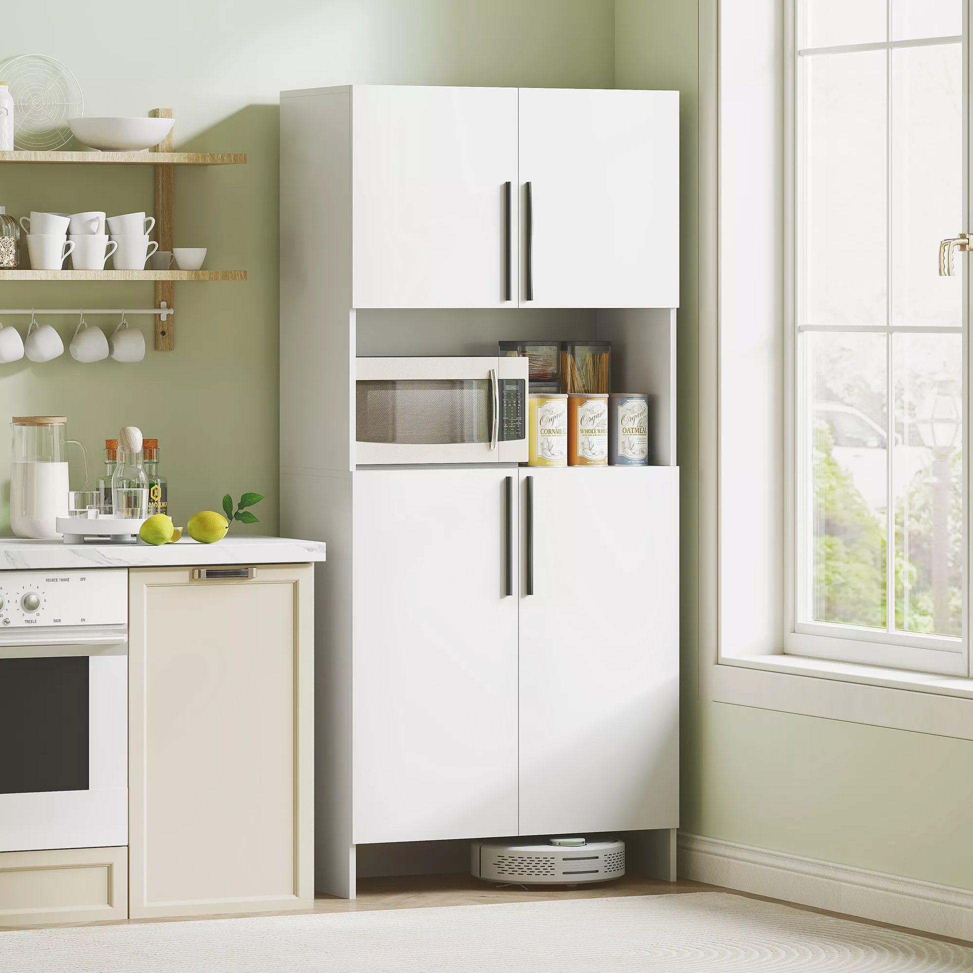 Atraskite savo naująjį organizacinį pagalbininką: Virtuvės spintelę! Su erdviomis dvivėrėmis ir viengalėmis spintelėmis bei didele darbo plokšte, jis suteikia stiliaus ir funkcionalumo. Aštuoni tylūs mikrobangų krosnelės spintelės vyriai užtikrina tylų veikimą. Elegantiškos baltos spalvos ir su juodomis metalinėmis rankenėlėmis, ši spintelė idealiai tinka virtuvėje ar svetainėje.