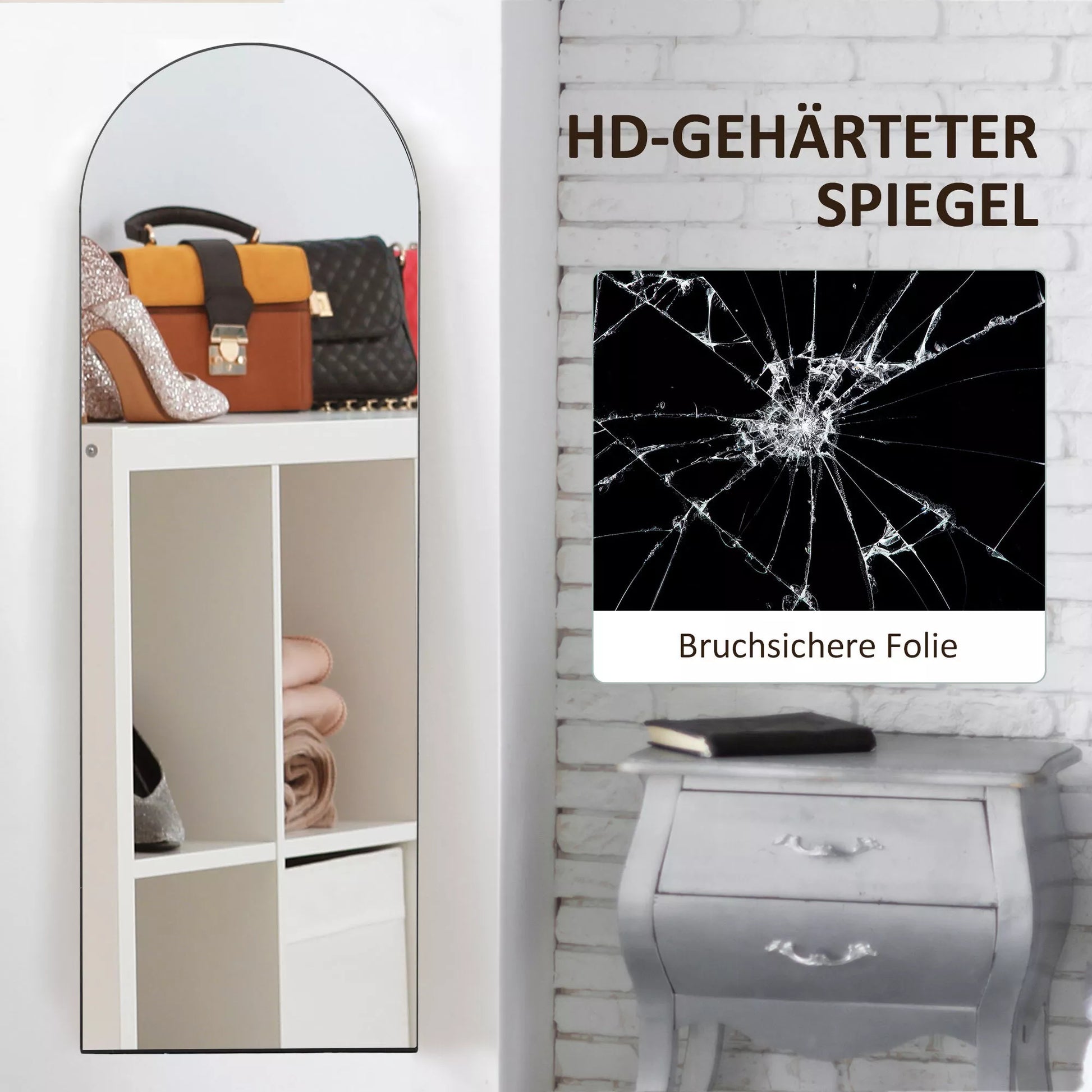 Su 150 cm aukščiu ir 50 cm pločiu, šis elegantiškas pastatomas veidrodis ne tik leis visapusiškai apžiūrėti savo aprangą, bet ir suteiks spindintį akcentą bet kuriam kambariui. Veidrodžio stiklas užtikrina aiškų, neiškraipytą atspindį, o apsauginė plėvelė nuo skilinėjimo garantuoja jūsų saugumą kasdien naudojantis. Nesvarbu, ar pastatytas ant kojelės, atremtas ar pritvirtintas prie sienos – šis sieninis veidrodis lanksčiai prisitaiko prie jūsų poreikių.