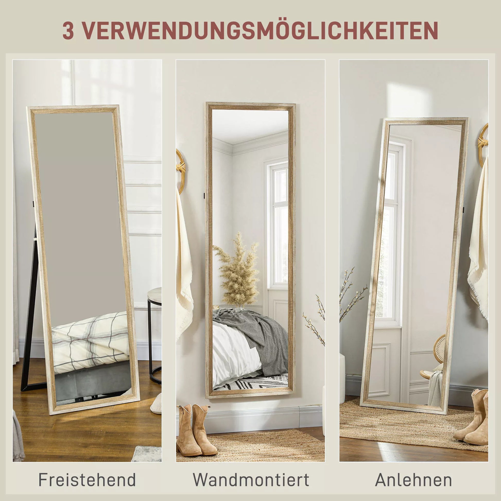 Pastatomas veidrodis, kurio dviejų spalvų MDF rėmas elegantiškos baltos ir natūralios spalvos, suteikia stiliaus ir funkcionalumo. Jo matmenys 162,6 x 53,3 cm, todėl per didelės raiškos stiklą, apsaugotą nuo atplaišų, galėsite puikiai matyti visą savo kūną. Pastatykite jį ant kojelės, atremkite arba pritvirtinkite prie sienos – idealiai tinka bet kokiai patalpai.