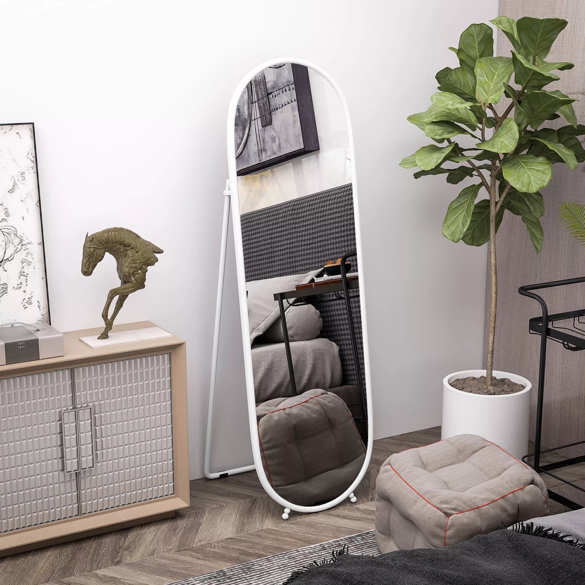 Viso kūno veidrodis, ovalo formos, laisvai stovintis, metalinis rėmas, 40x160cm, spalva: balta