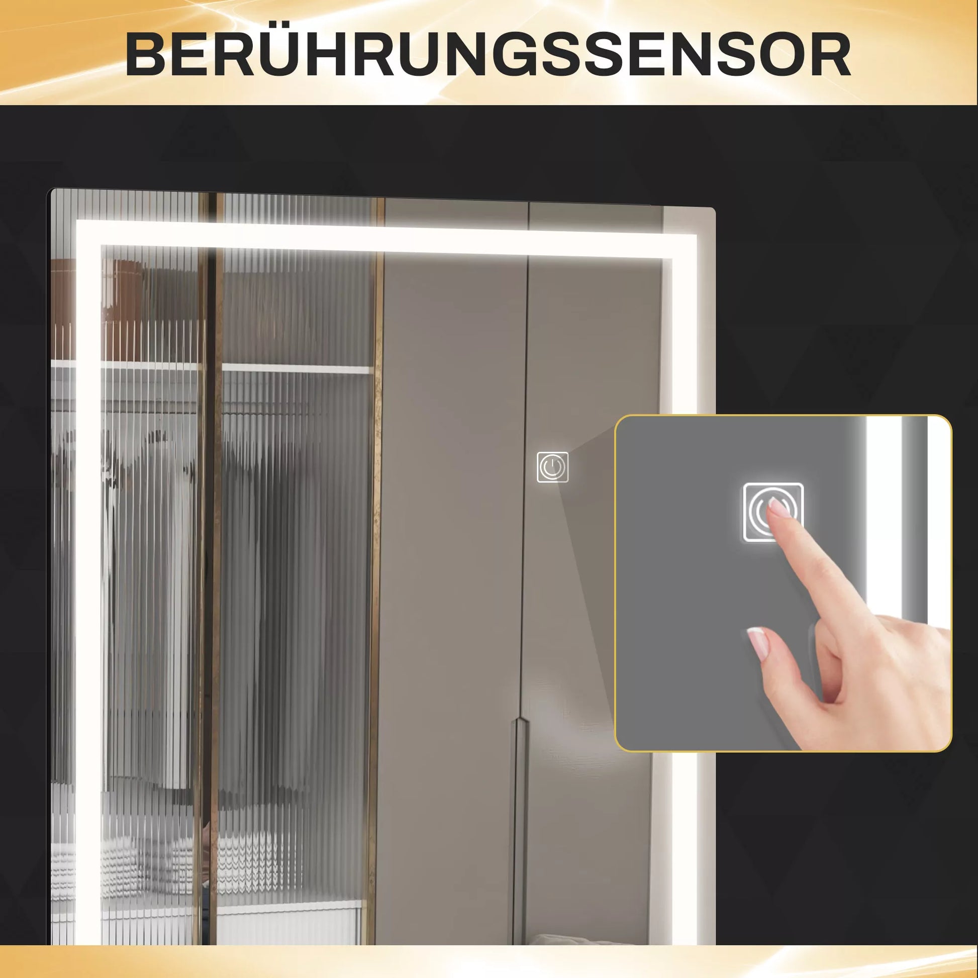 - ✔ Sieninio veidrodžio lietimui jautrus jungiklis lengvam valdymui