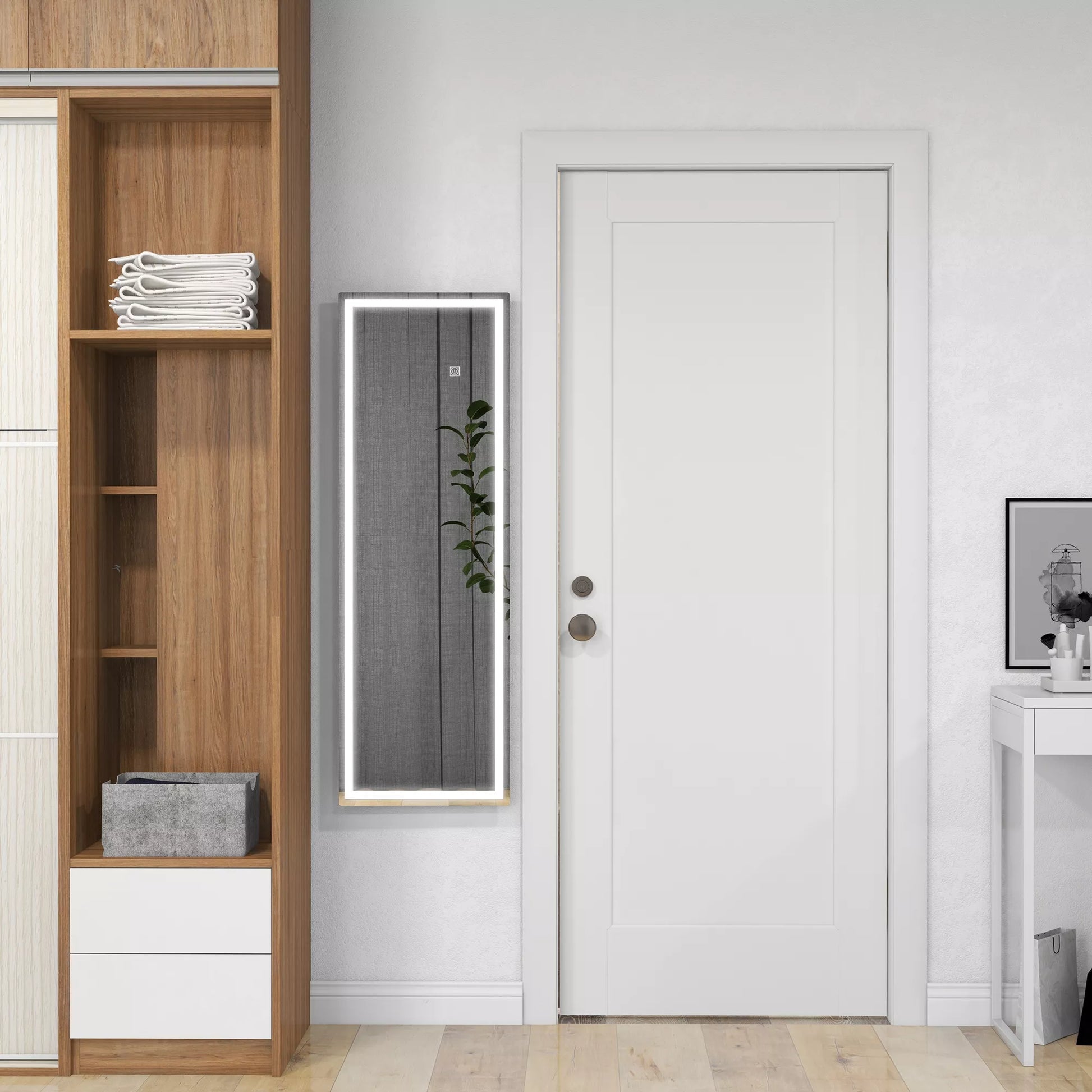 Atraskite elegantišką sieninį veidrodį – jūsų tobulą pagalbininką kiekvienai dienai! Jo dydis leidžia matyti save nuo galvos iki kojų ir puikiai derinti savo aprangą. Integruotas viso kūno veidrodžio apšvietimas siūlo tris spalvų pasirinkimus (šiltai balta, neutraliai balta ir šaltai balta) bei reguliuojamą ryškumą, kad galėtumėte pritaikyti šviesą pagal savo poreikius. Storas, nedūžtantis ir atsparus skilinėjimui stiklas taip pat užtikrina aiškų atspindį.
