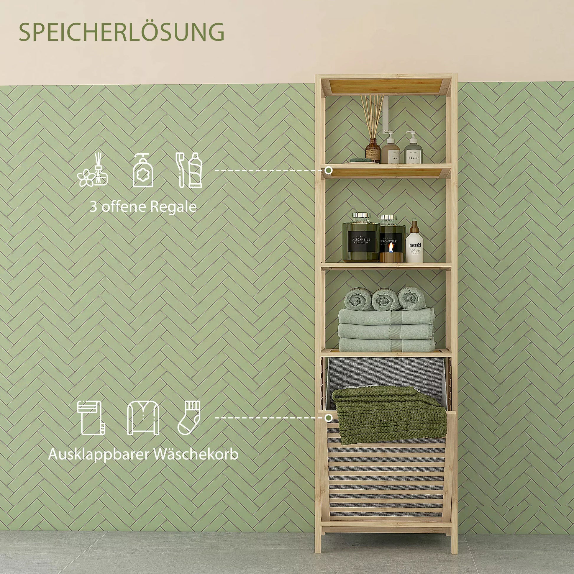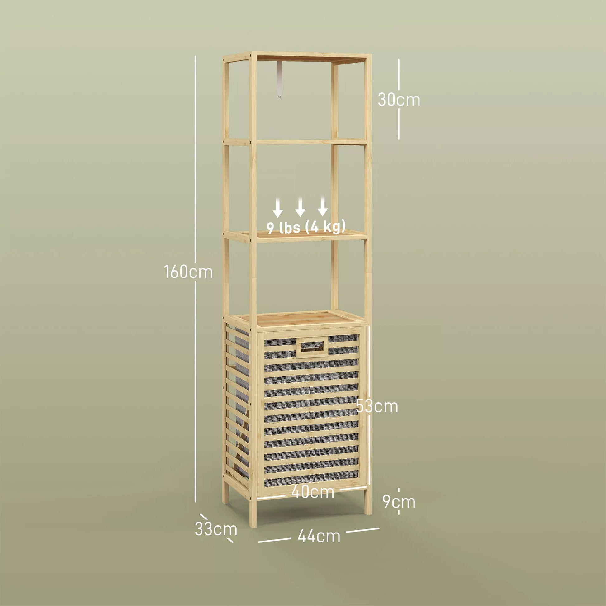 Vonios lentyna su skalbinių surinktuvu, 3 lentynos, bambuko rėmas, 44x33x160cm, natūrali