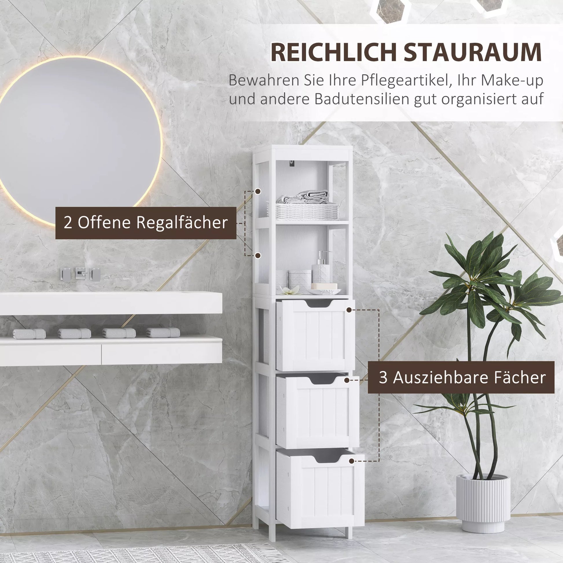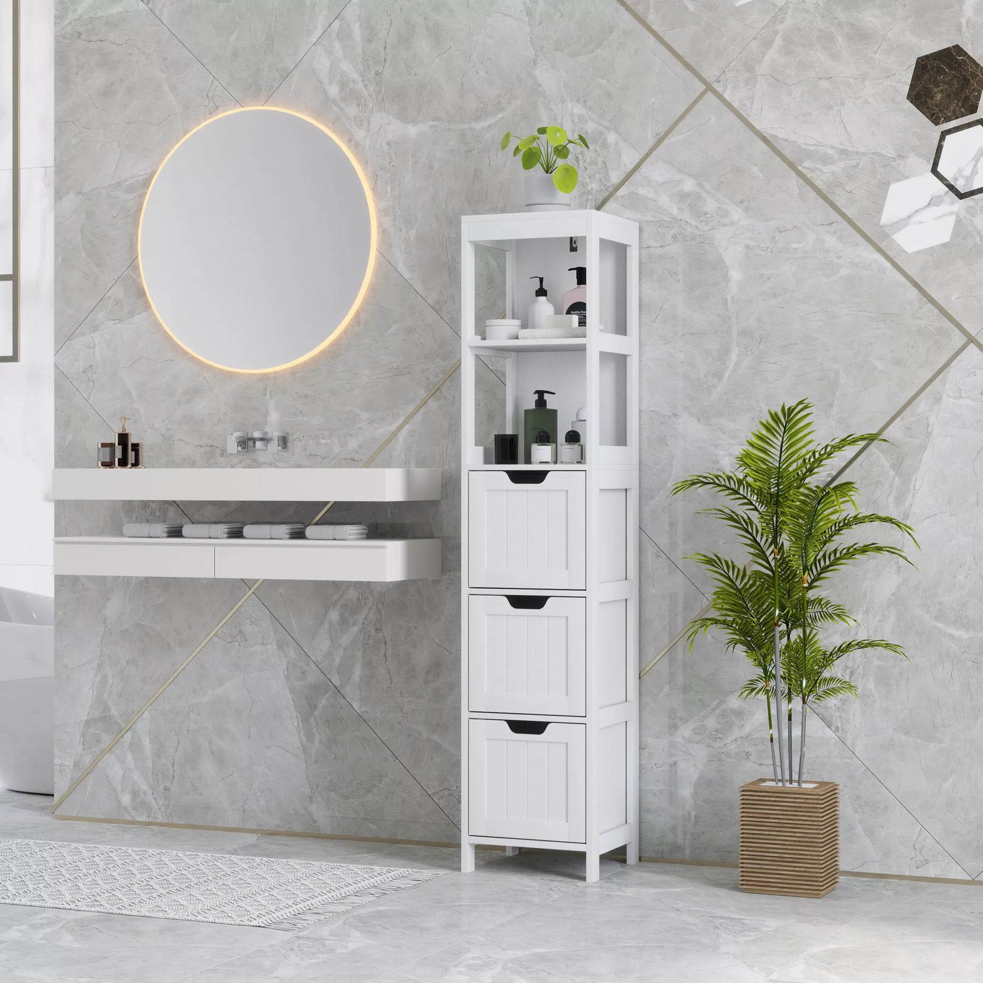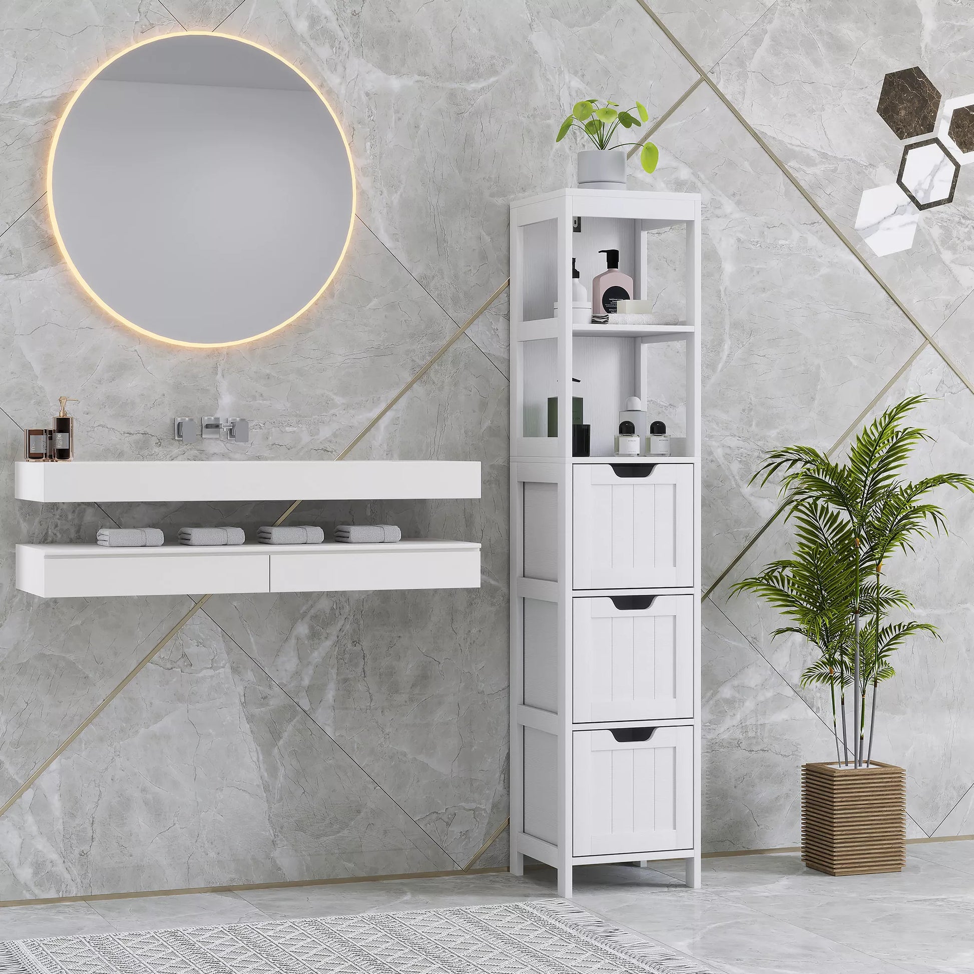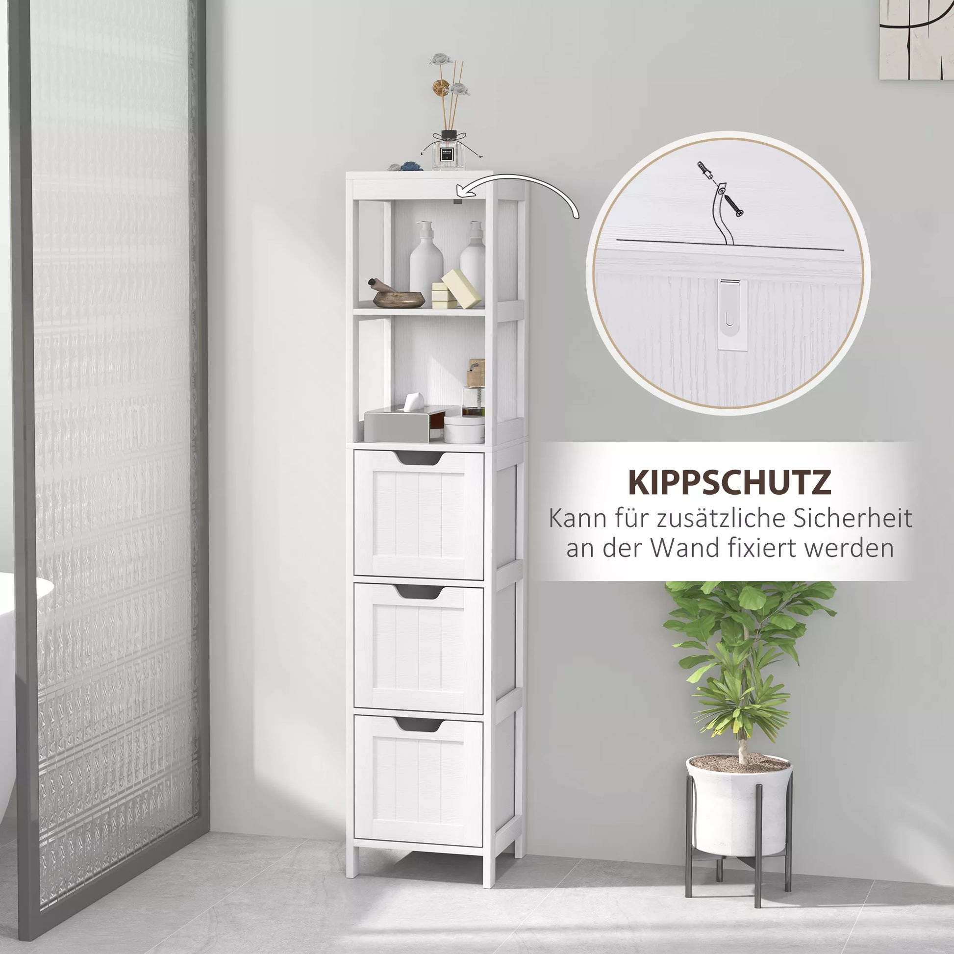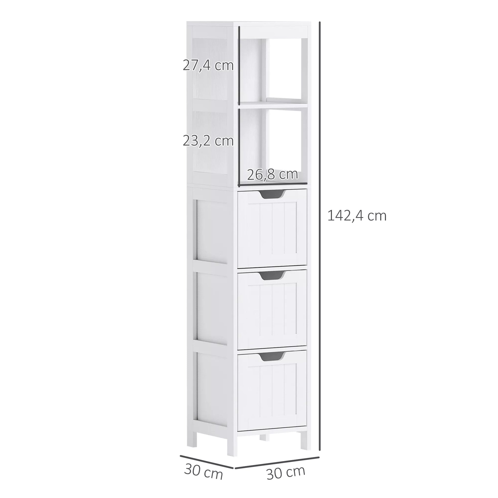 Vonios spintelė, 2 lentynos, 3 stalčiai, vandeniui atspari medžiaga, Balta