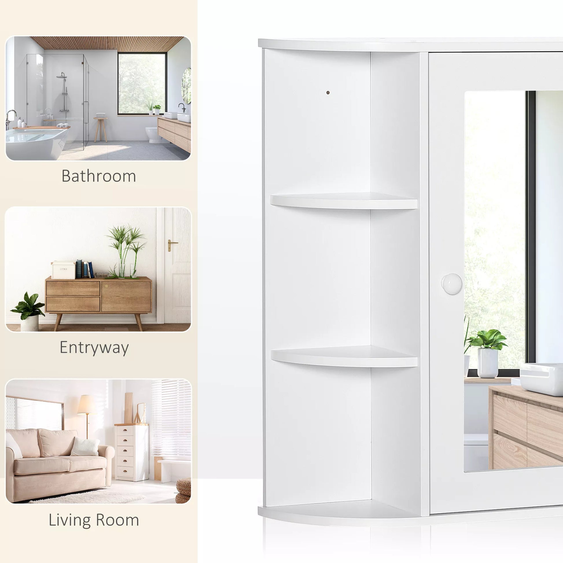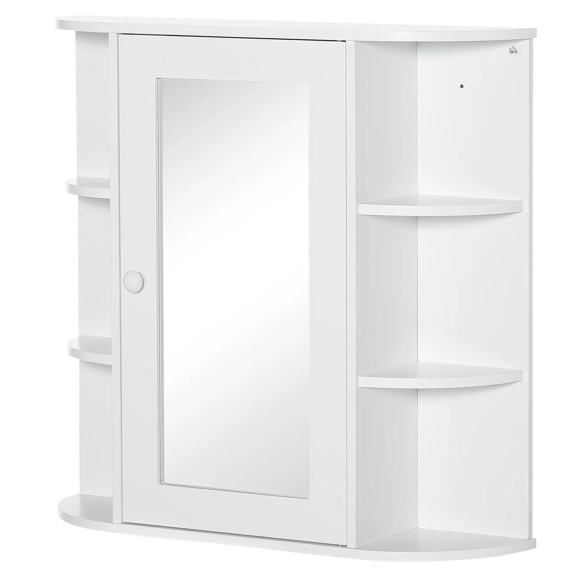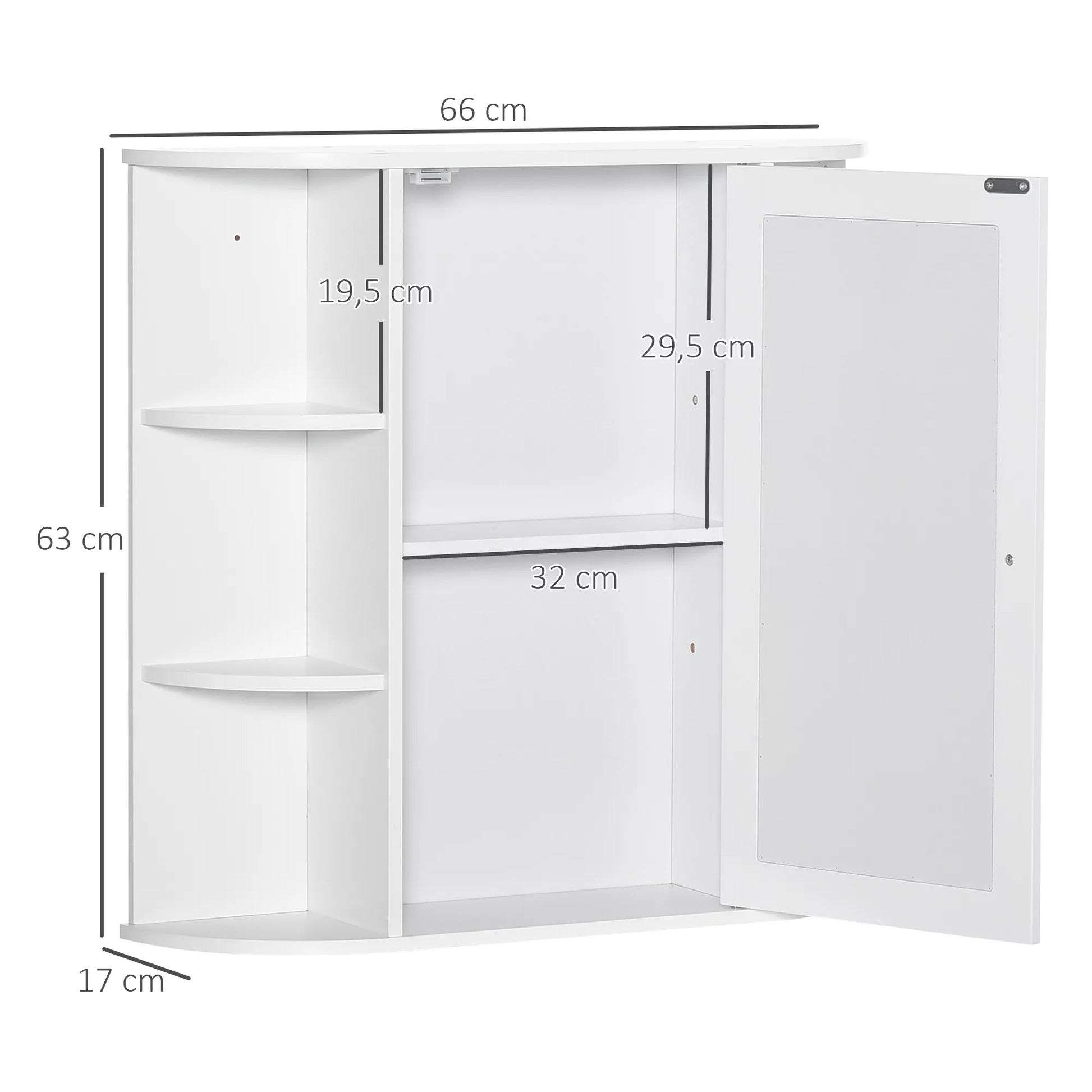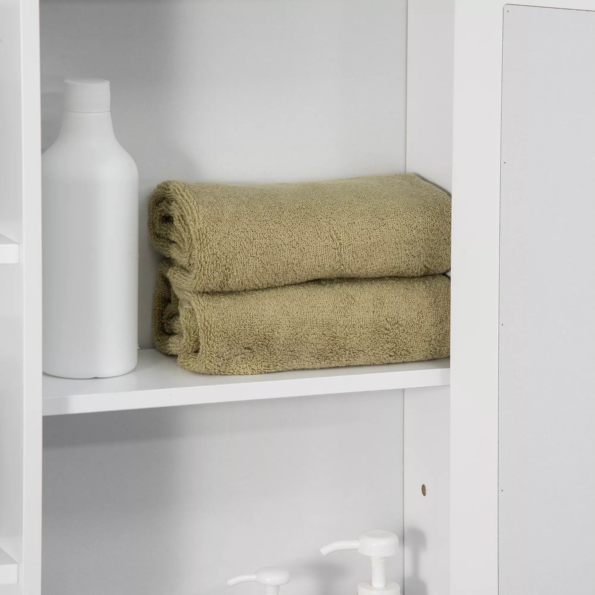 Veidrodinė spintelė voniai, 8 skyrių, su veidrodinėmis durimis, atspari vandeniui, 66 cm x 17 cm x 63 cm, balta