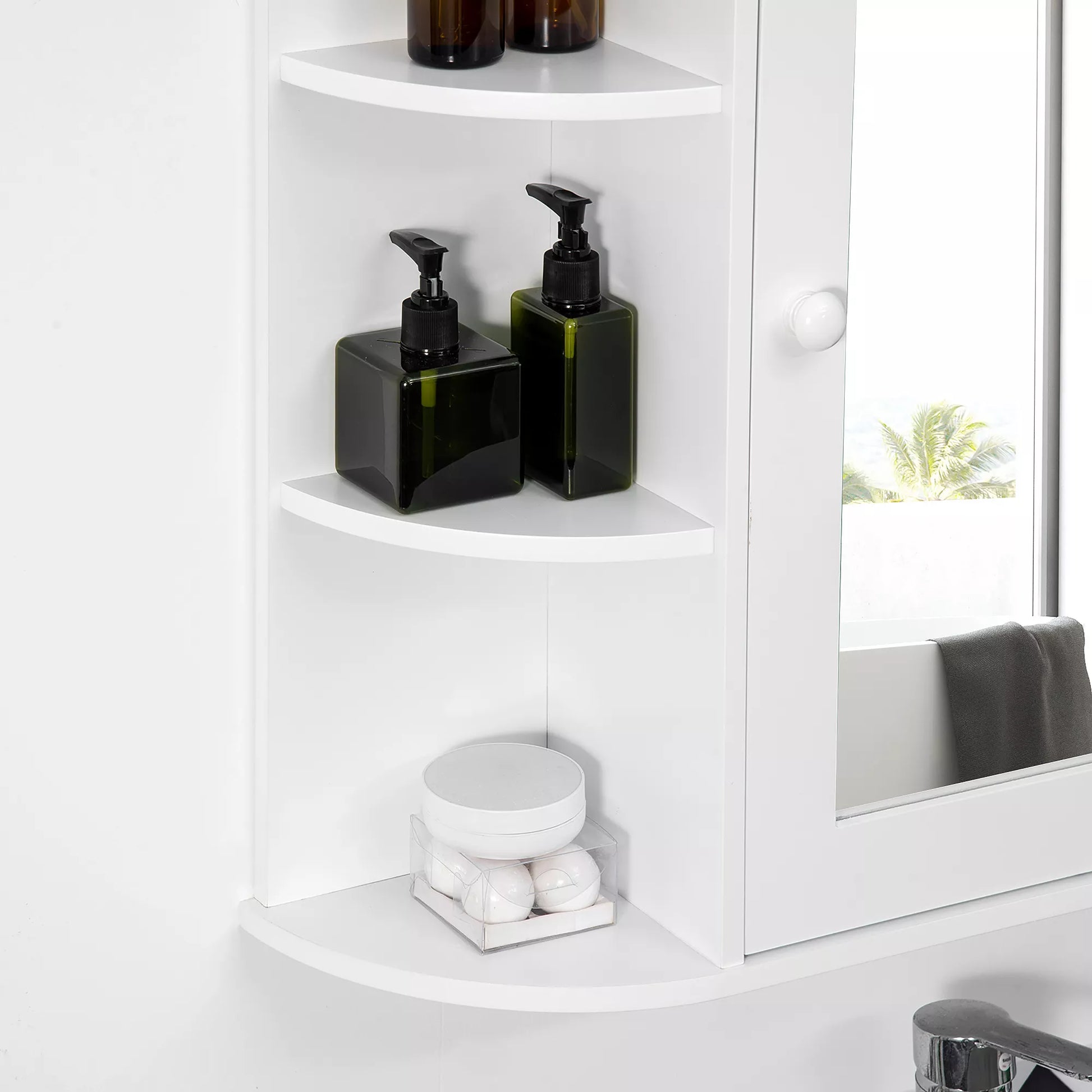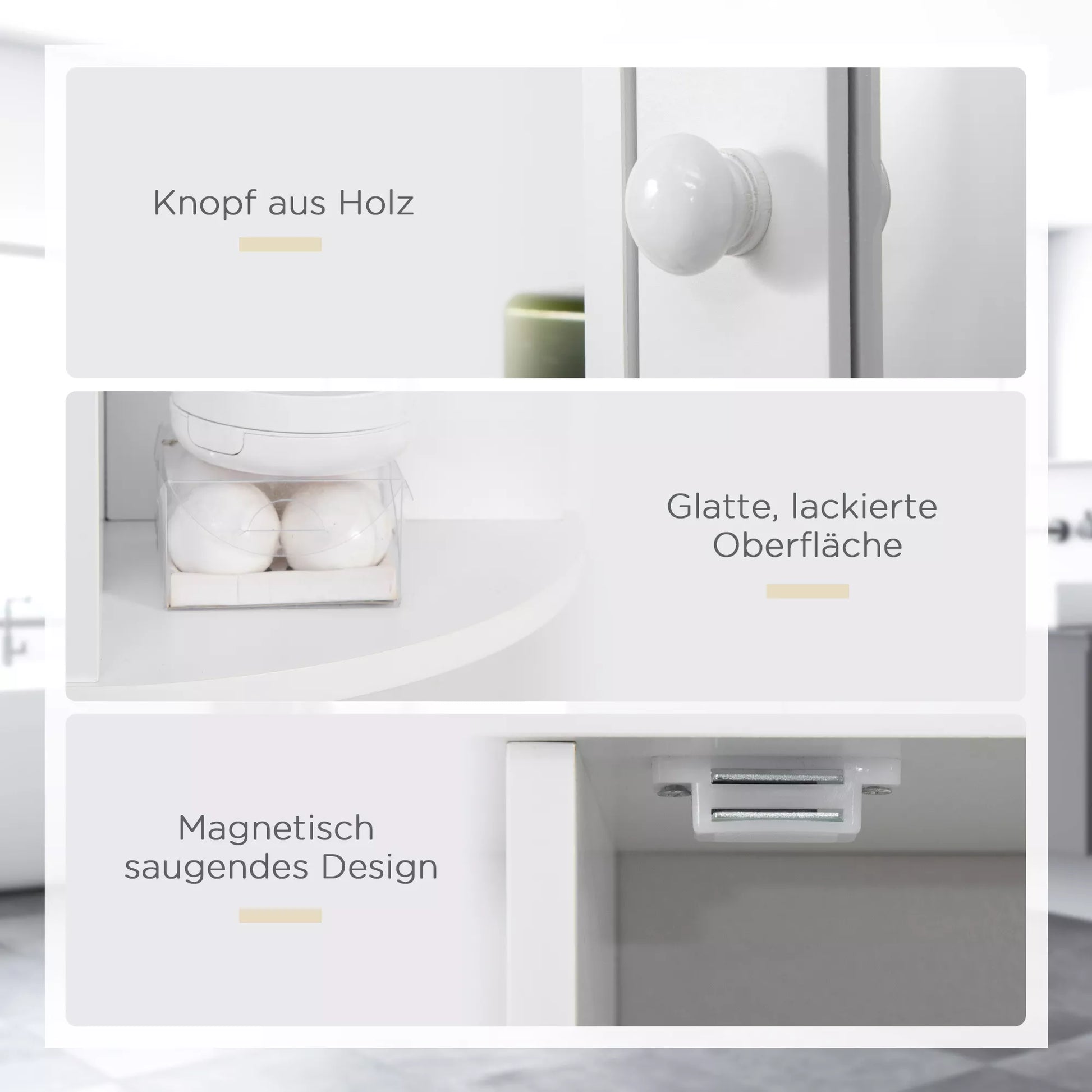 Vonios spintelė turi vietos įvairioms higienos priemonėms. Pakabinama spintelė turi du skyrelius už veidrodinių durelių. Šonuose yra šeši atviri lentynos. Ji pagaminta iš tvirtos MDF plokštės ir padengta baltu, vandeniui atspariu laku. Sidabro spalvos rankenėlė yra graži detalė ant šios paprastos ir funkcionalios vonios veidrodinės spintelės.