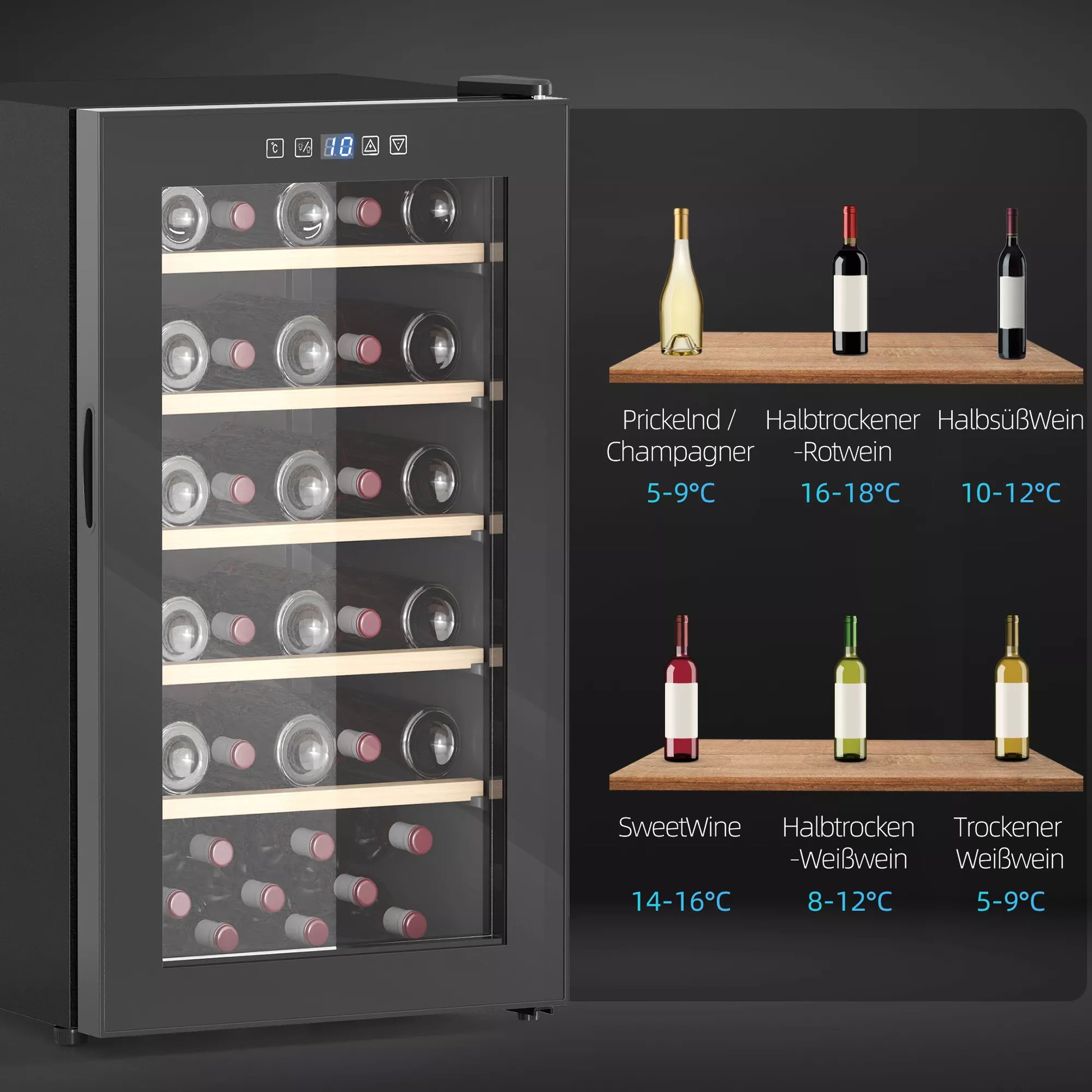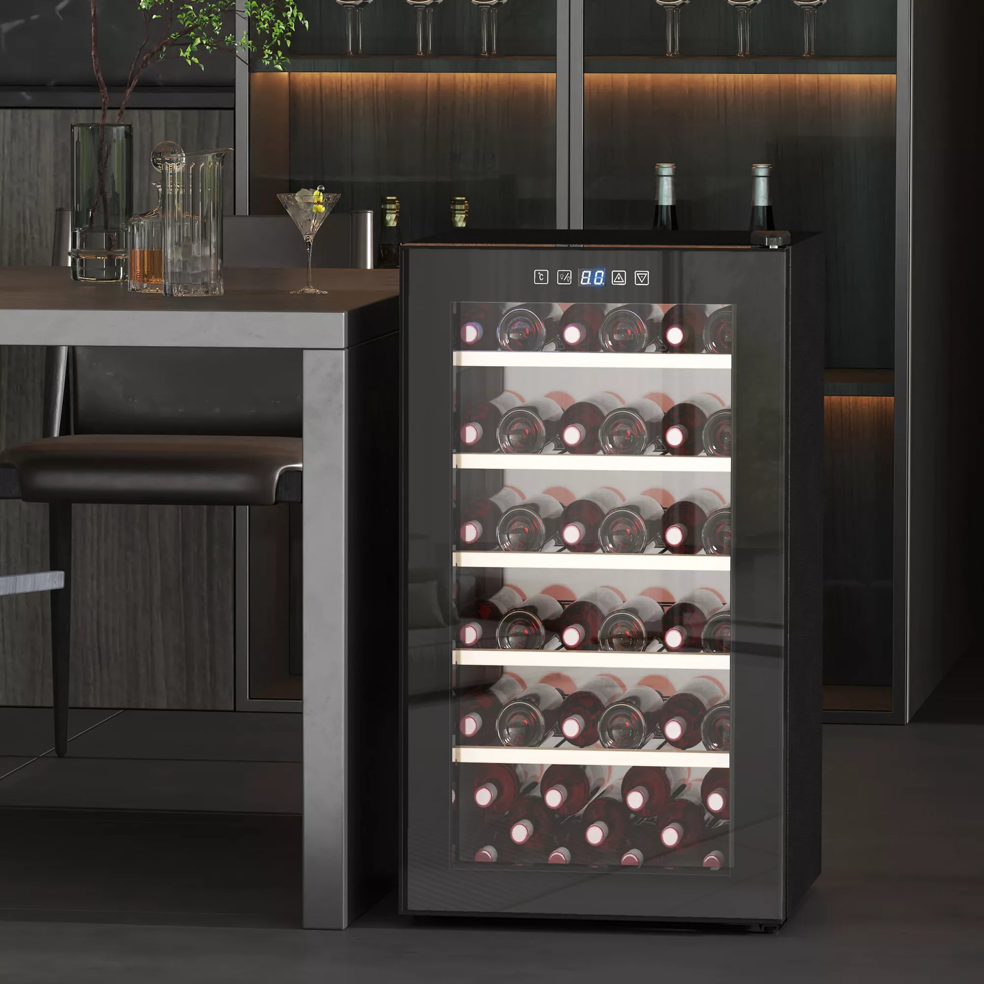 Vyno šaldytuvas 41 vyno buteliui, 91 litro talpos, gėrimų šaldytuvas su LED ekranu, jutikliniu ekranu, juodos spalvos
