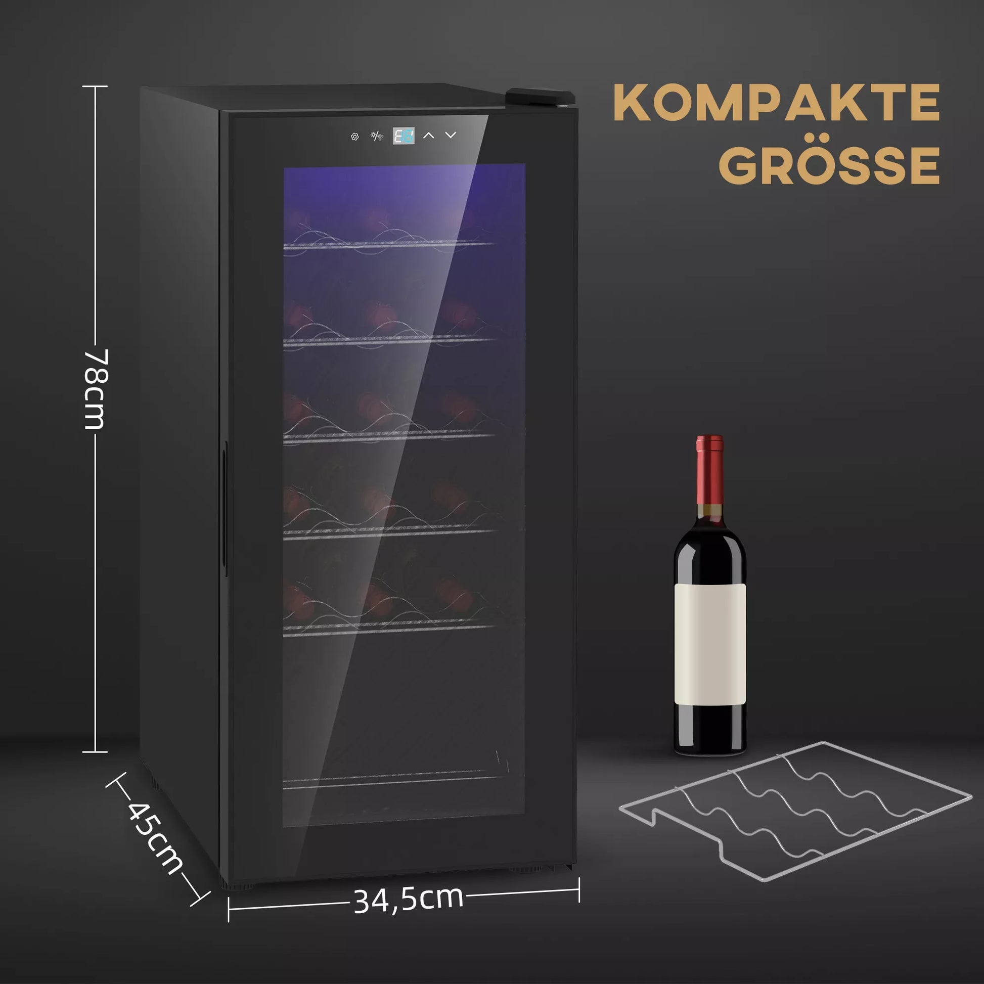 Vyno šaldytuvas, tylus, 5-18°C, jutiklinis ekranas, apšvietimas, 34,5x45x78cm, juodas