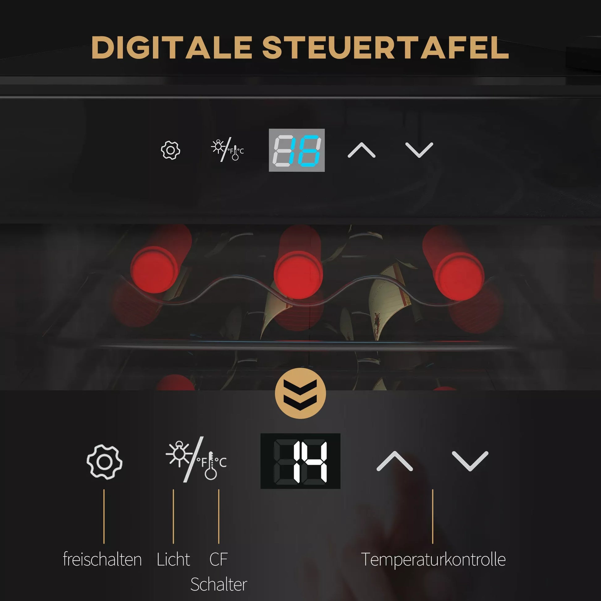 Atsisveikinkite su netvarkingomis virtuvės stalviršiais ir netinkamos temperatūros vynu: Šis vyno aušintuvas tiksliai ir efektyviai atšaldys jūsų mėgstamus raudonuosius ir baltuosius vynus ar alų. Dėl UV spindulių apsaugos stiklo durelių buteliai bus apsaugoti nuo šviesos, o tylus veikimas užtikrins ramius vakarus. Nepaisant kompaktiškų matmenų, jis talpina iki 18 butelių ir turi išimamus lentynėlius, todėl yra elegantiškas ir naudingas jūsų virtuvės, svetainės ar namų baro priedas.