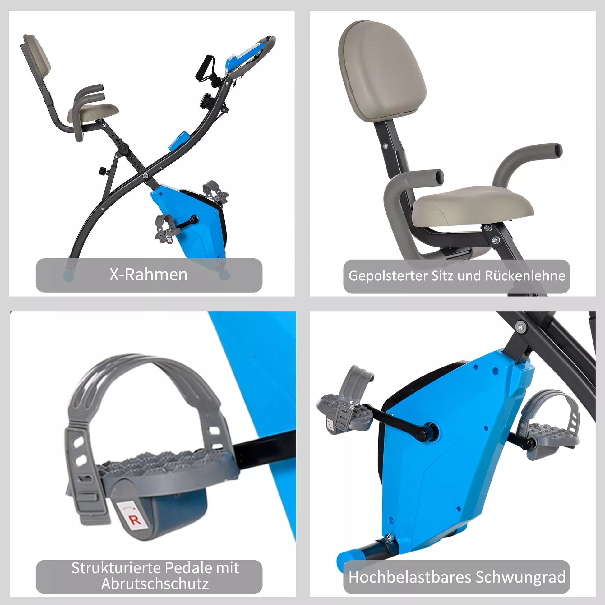 X-Bike 2-in-1 dviratis treniruoklis su LCD ekranu, širdies ritmo matuokliu, sulankstomas namų treniruoklis su 8 lygių magnetine varža, 1 pora tempiamųjų trosų, plienas, mėlynas, 105x48x118 cm