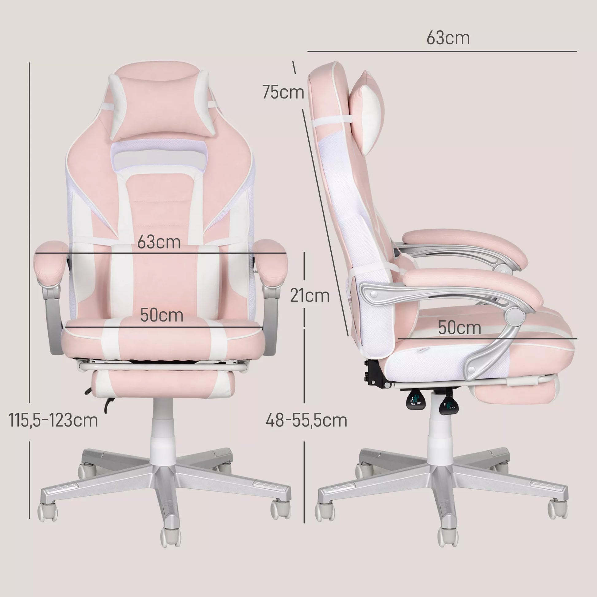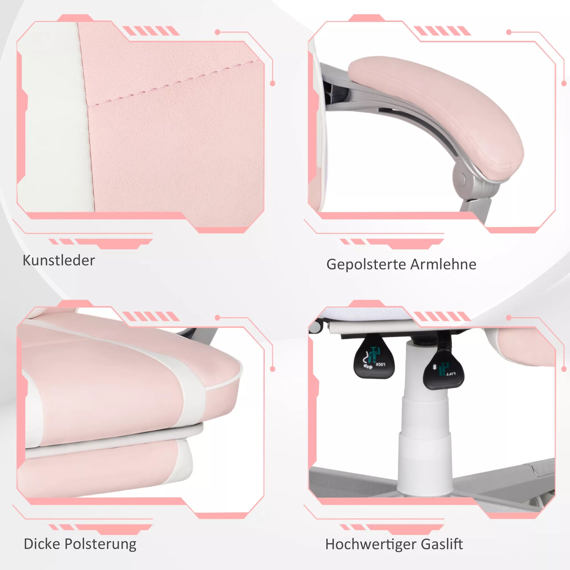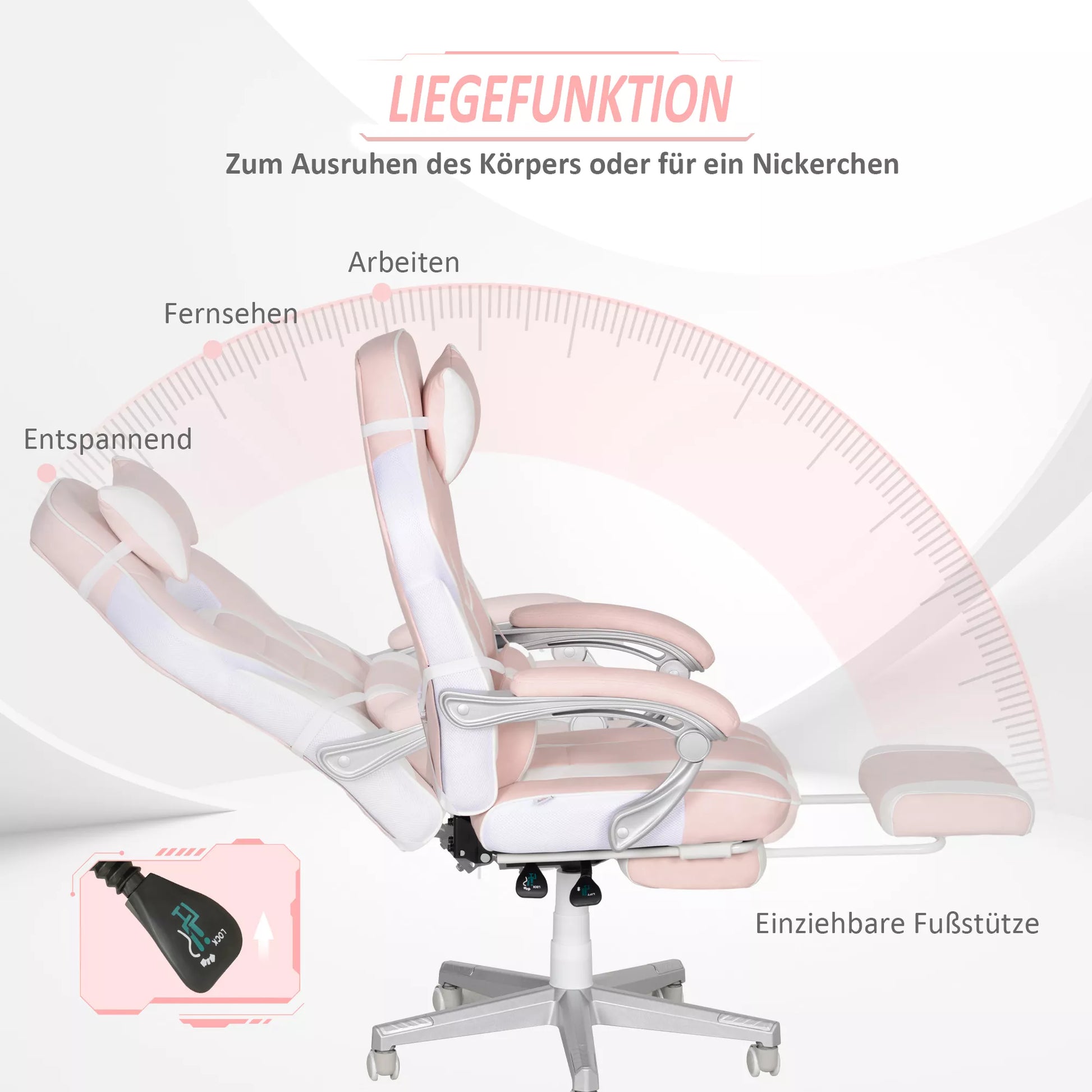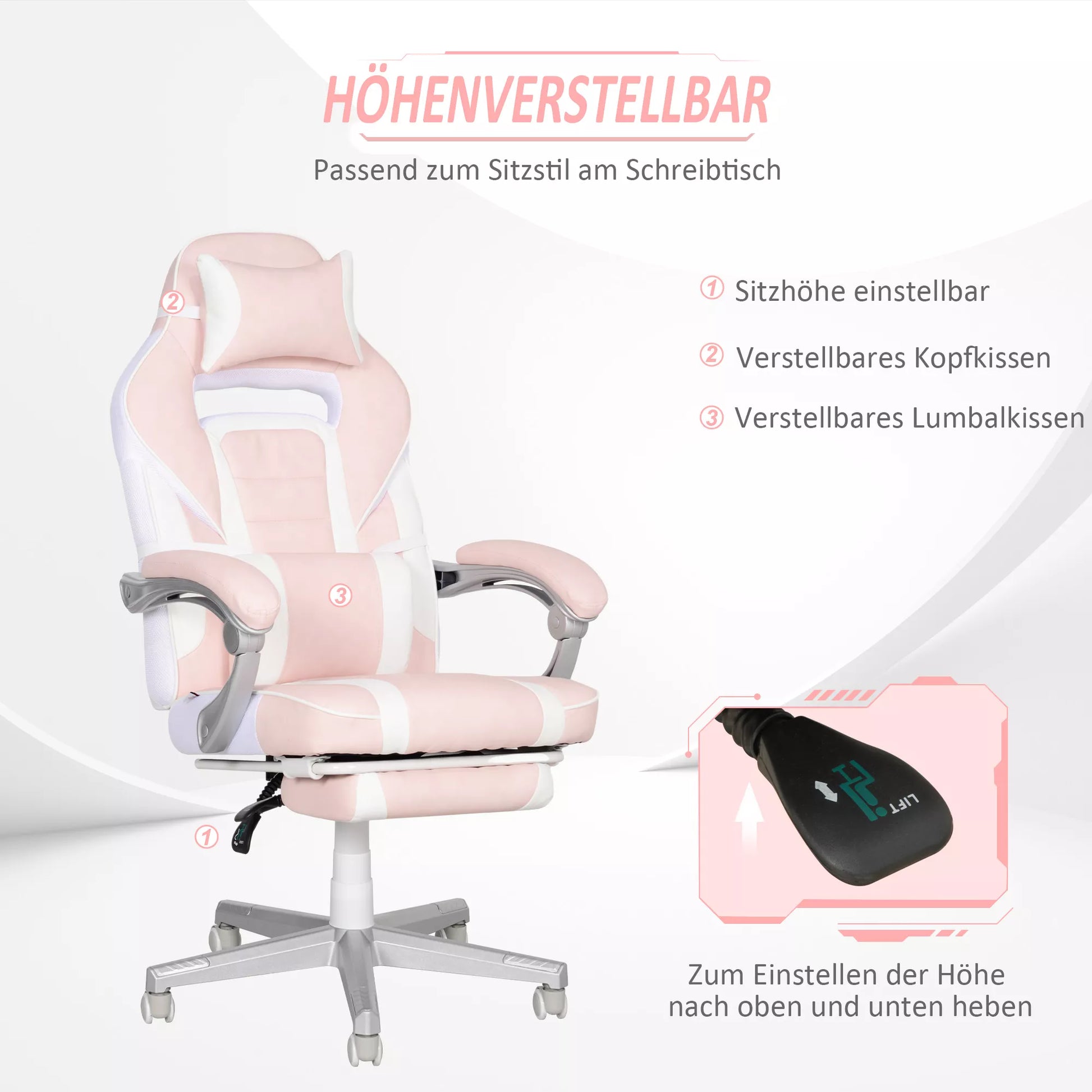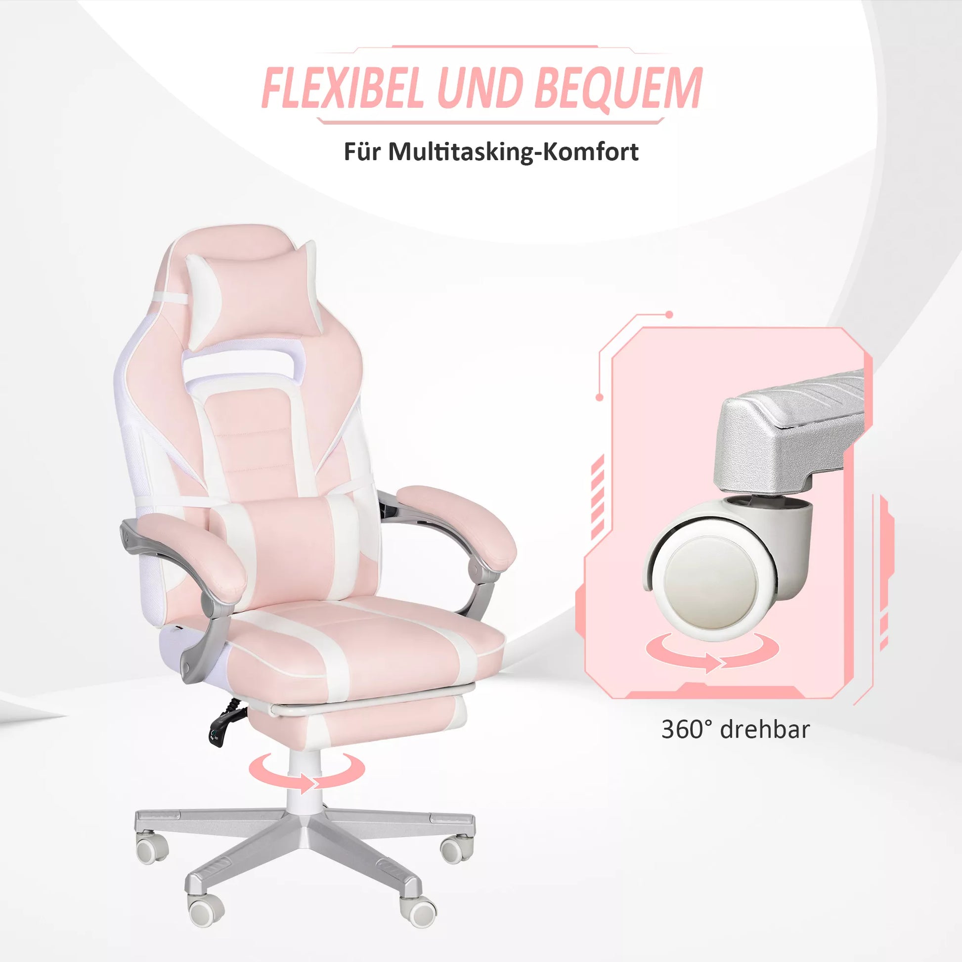 Žaidimų kėdė su atrama kojoms, galvos ir juosmens pagalvėlėmis, pasukama, reguliuojamo aukščio, Rožinė