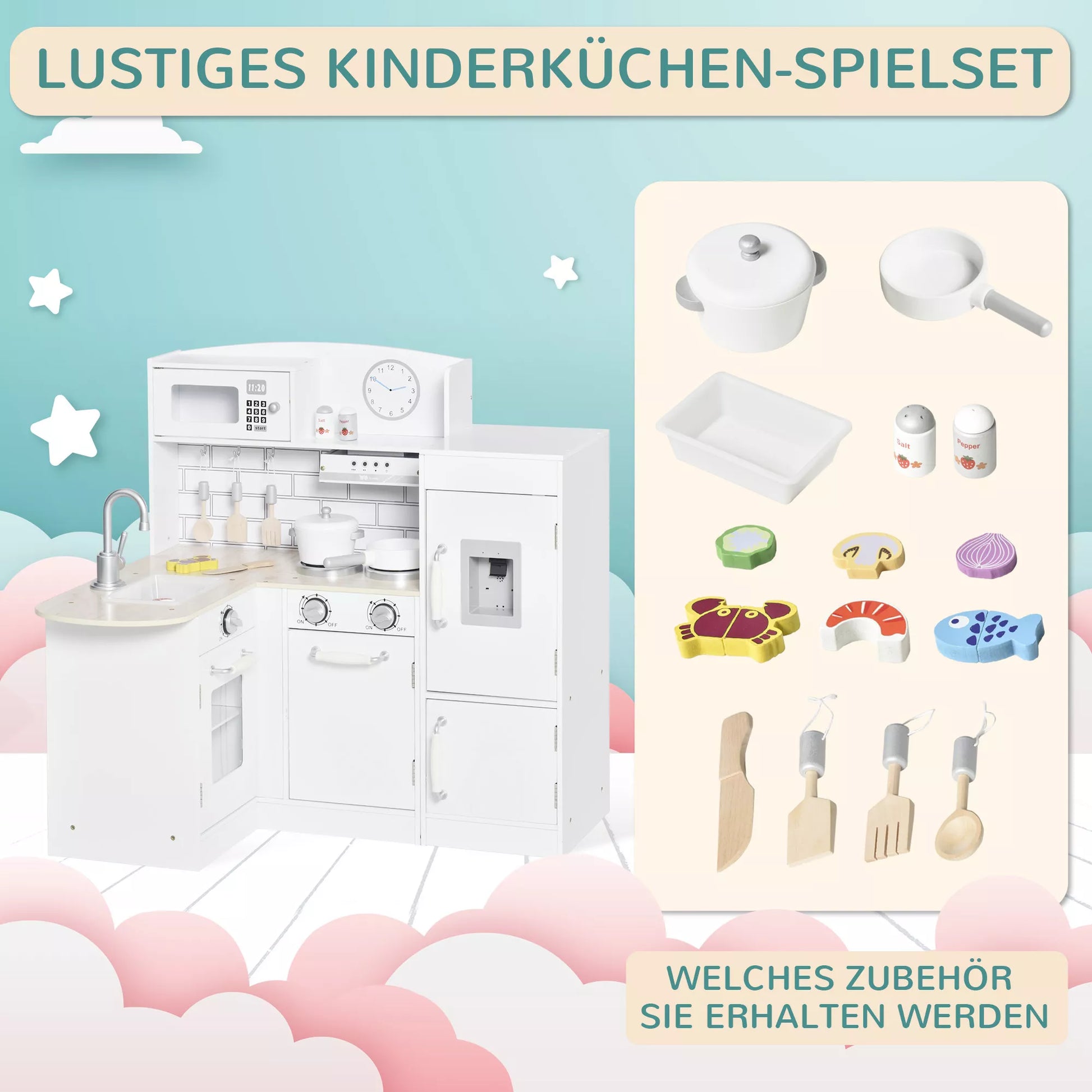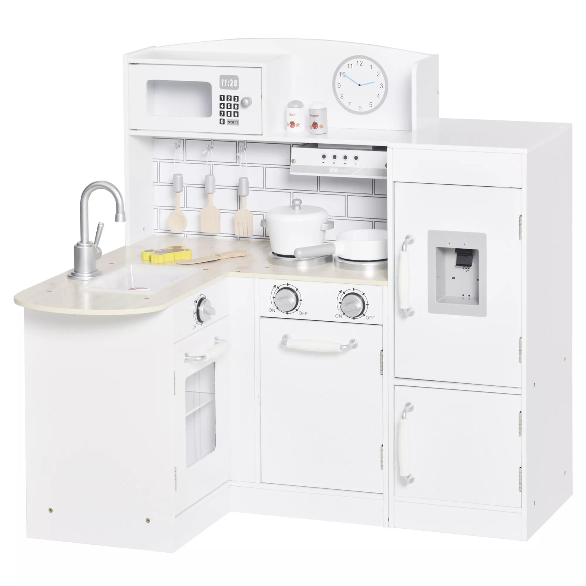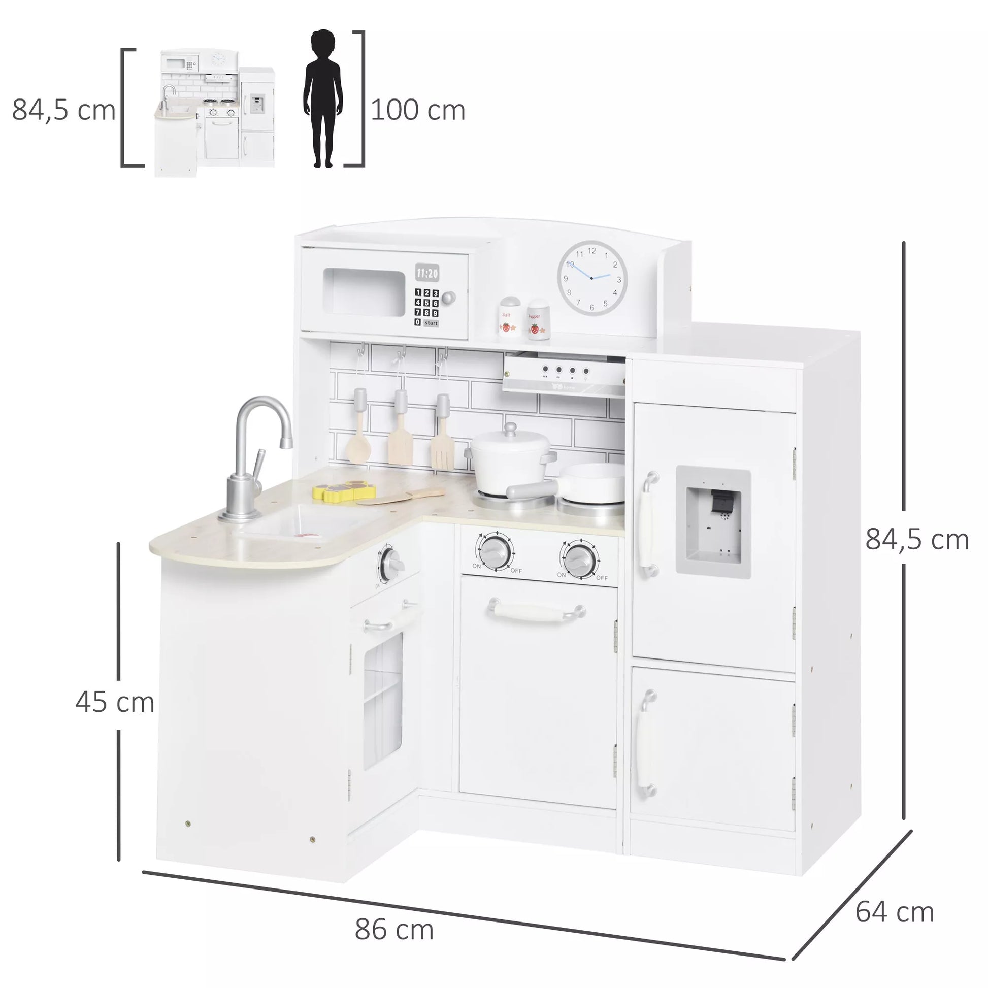 Vaikiška virtuvėlė, 14 priedų, elektrinis vandens dozatorius, 86 x 64 x 84,5 cm, Balta