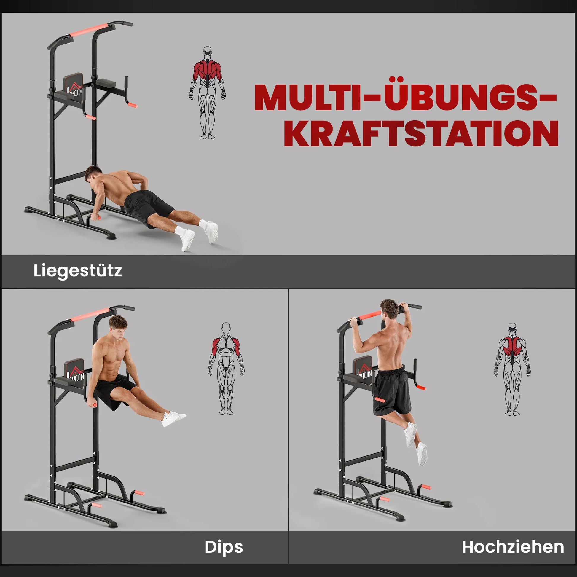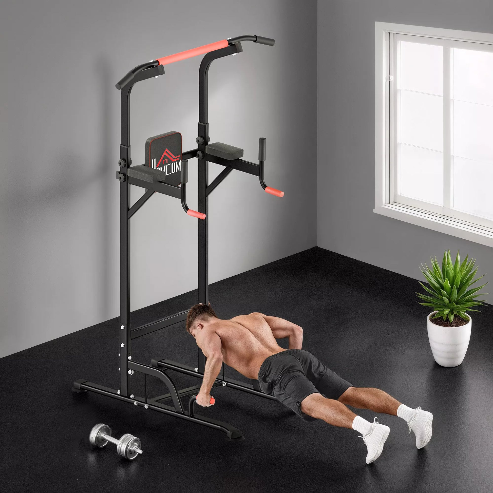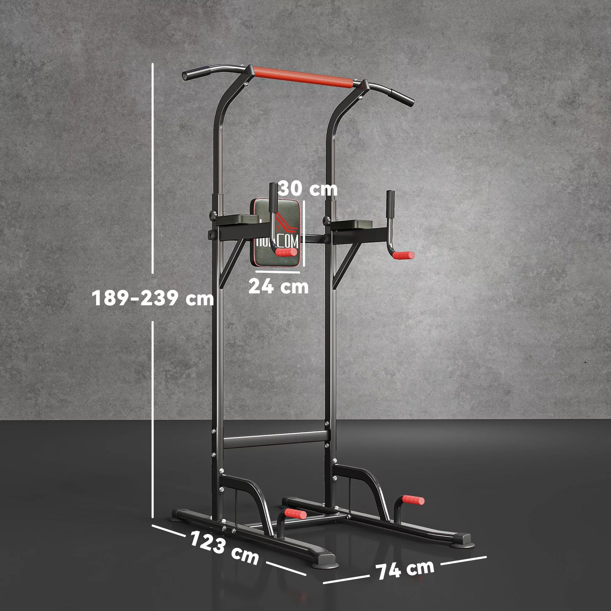 - ✔ Tvirtas plieninis fitneso bokšto rėmas saugiam kasdieniam prisitraukimų ir atsispaudimų stoties naudojimui