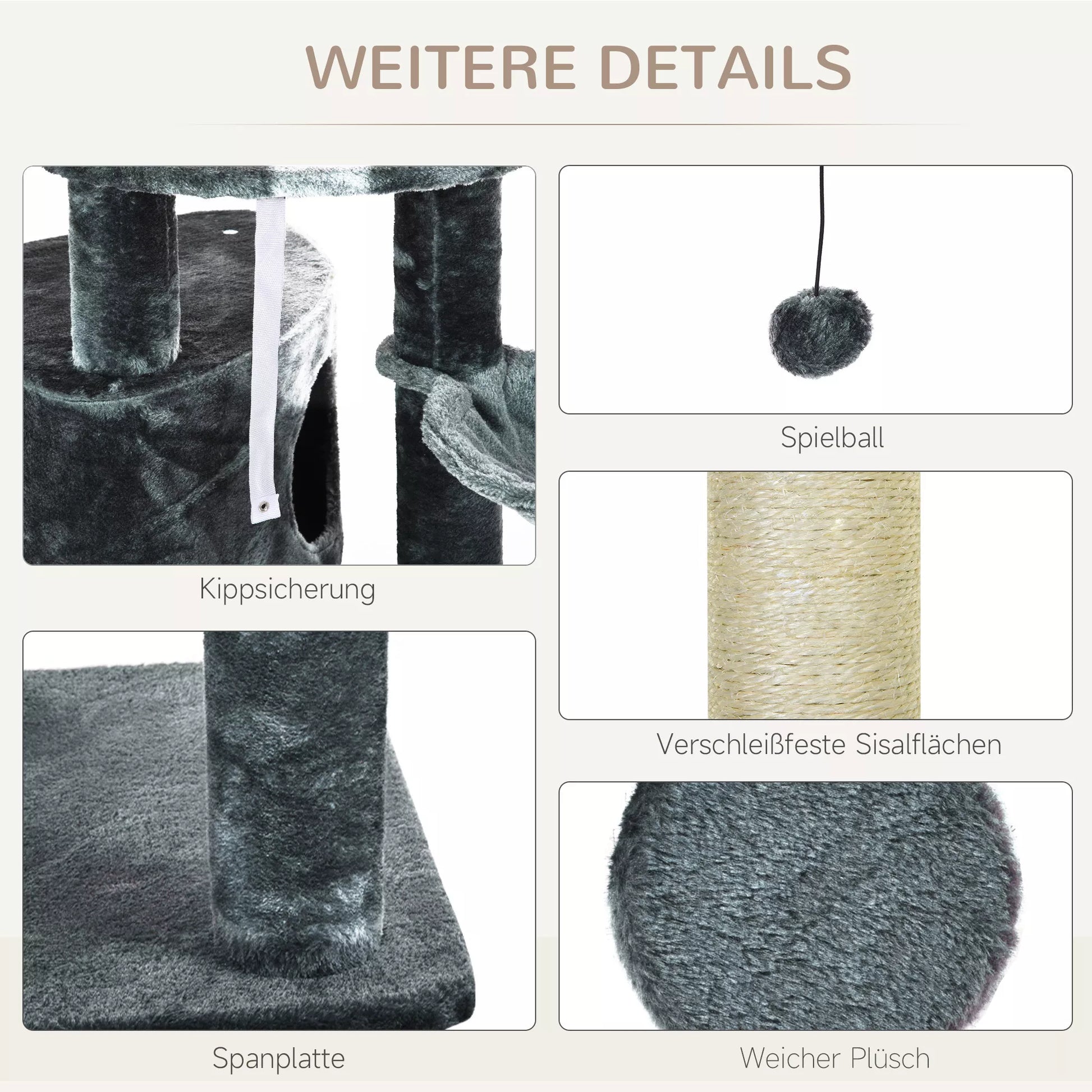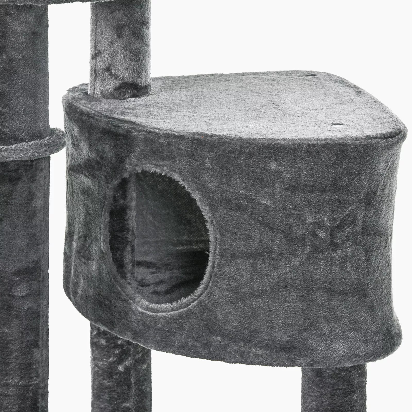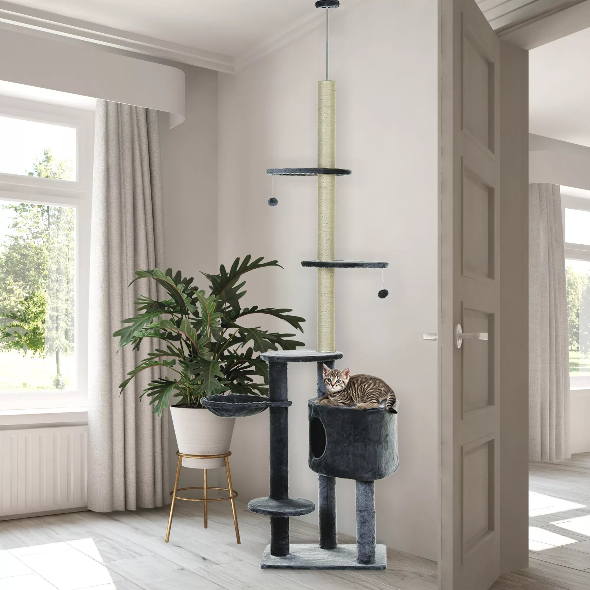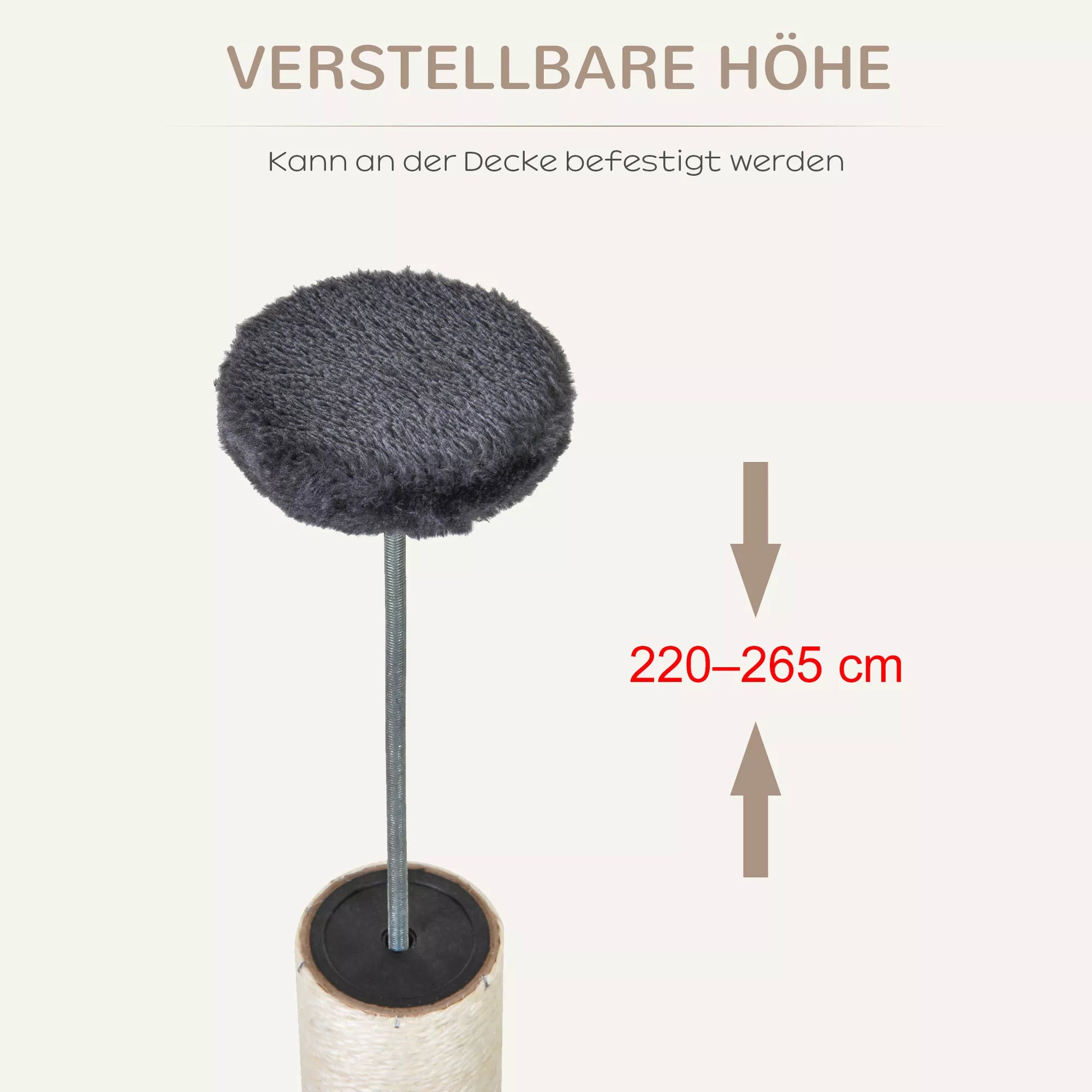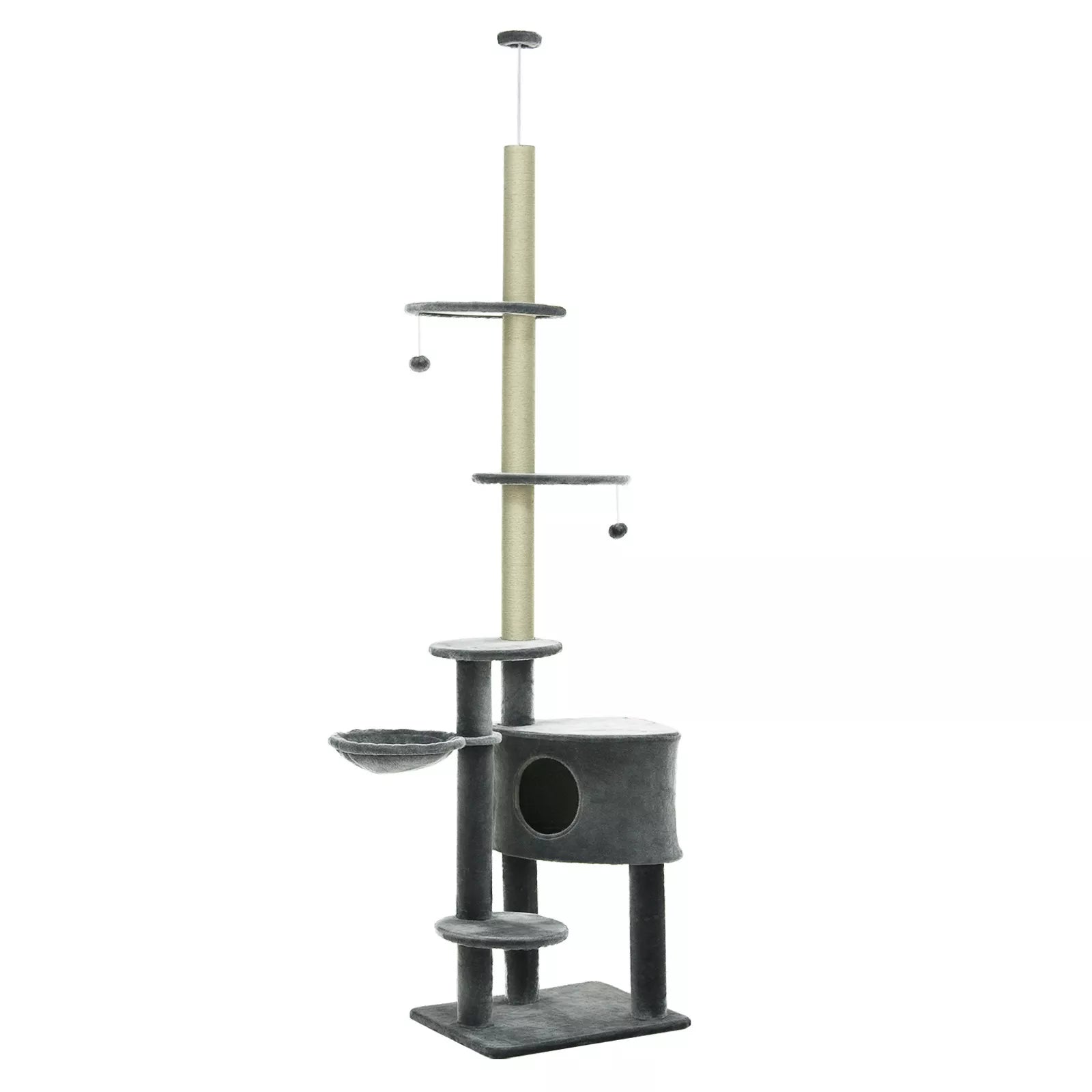 Aukštas iki lubų katės medis 220–265 cm, su žaisliukais, guoliu, hamaku, sizaliniais stulpais, platformomis, daugiaaukštis katės draskomasis medis, laipiojimo medis vidutinio dydžio katėms, tamsiai pilkos spalvos