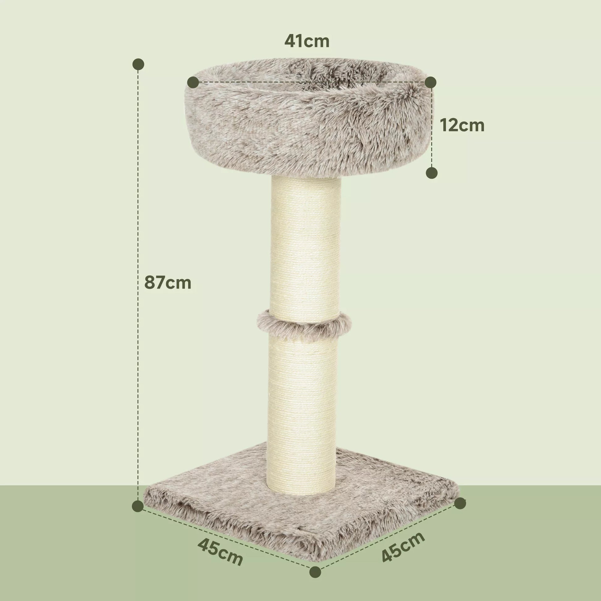Kačių medis, 87 cm, kačių bokštelis su storu draskymo stulpu, pliušinė lova, skirtas naudoti patalpoje, atlaiko iki 6 kg, rudas