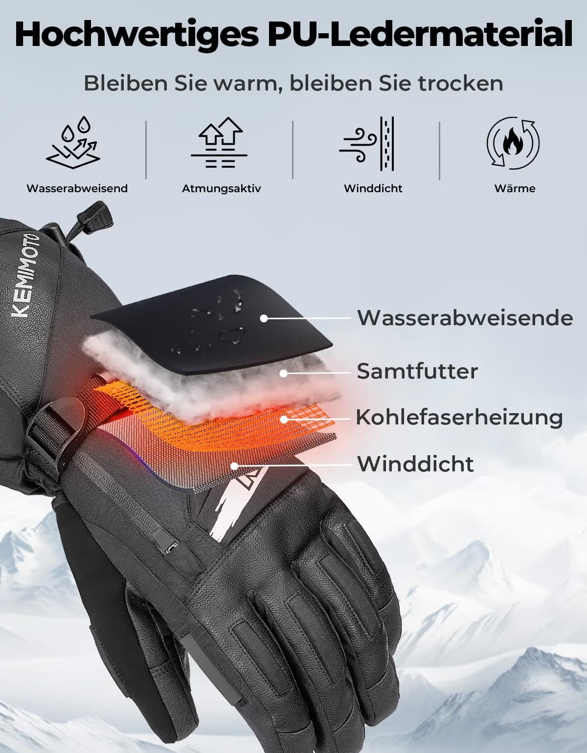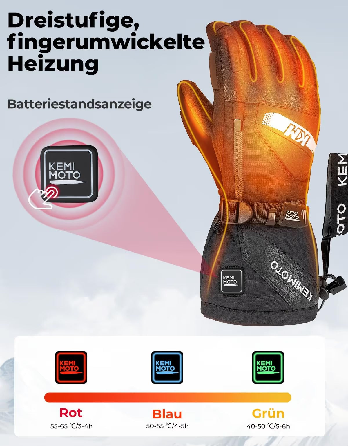 - ✔ 1 x pora šildomų „Kemimoto“ pirštinių