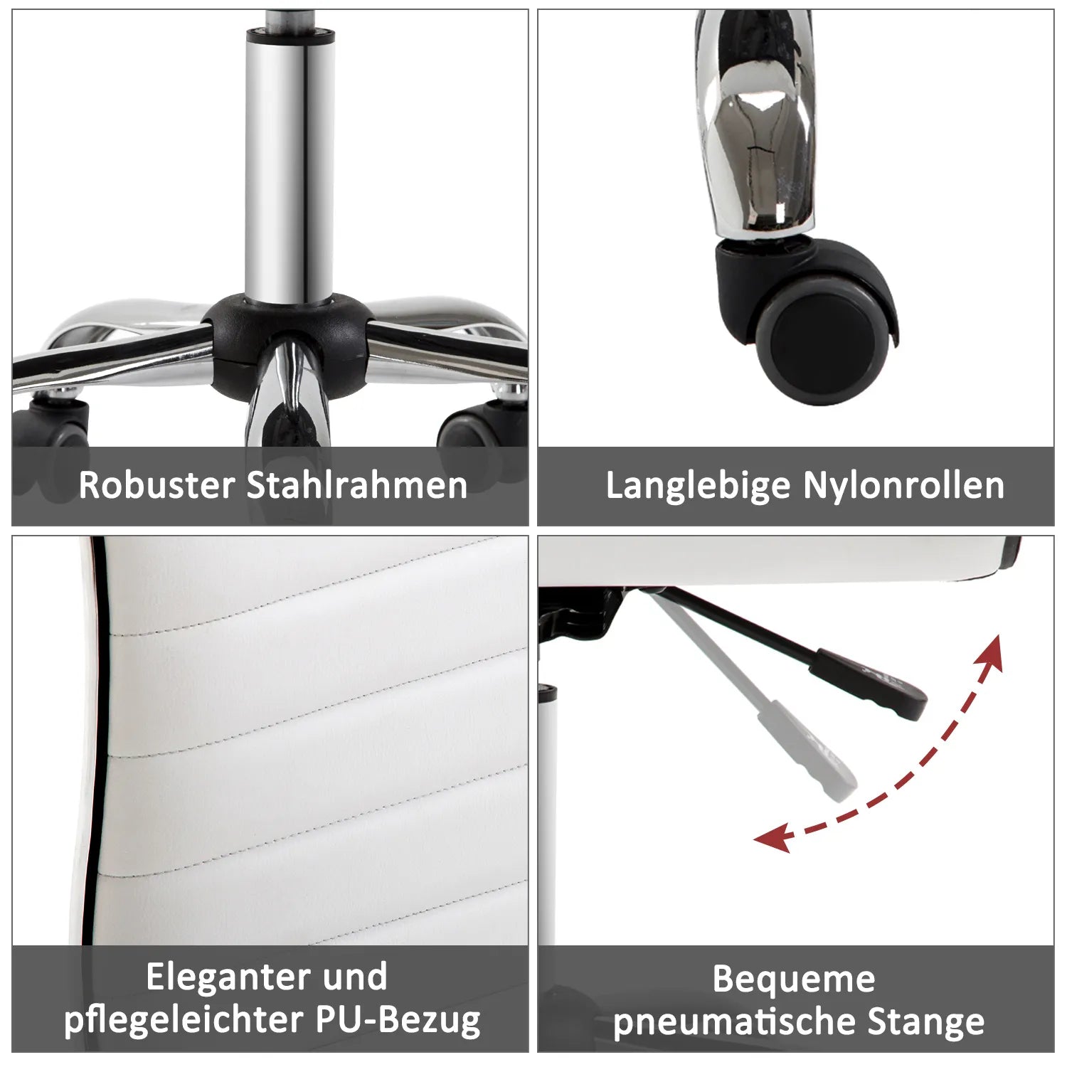 Kirpyklos kėdė, Salono kėdė su atlošu, Reguliuojamo aukščio, Plienas PU, Balta, 48 x 52 x 78-90 cm