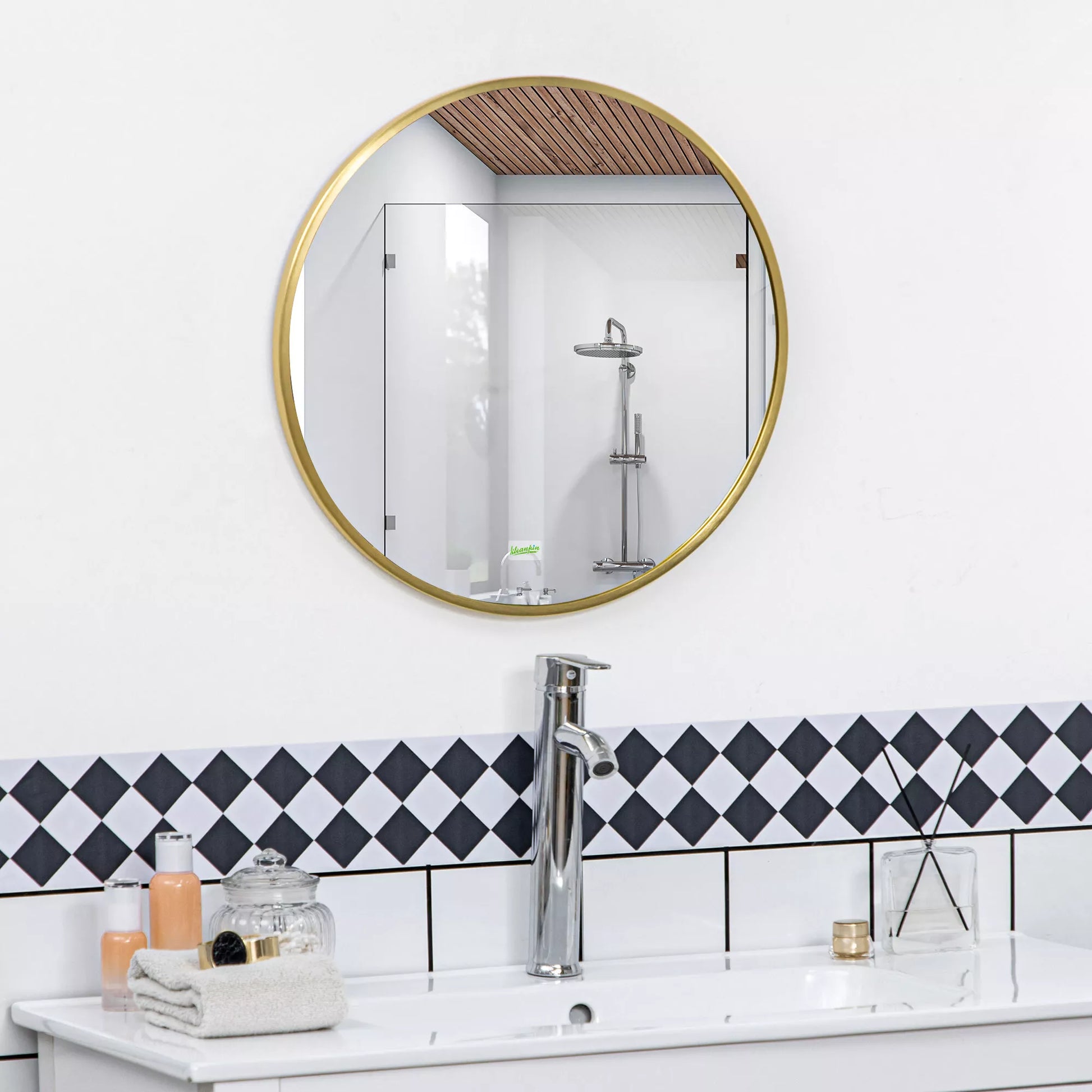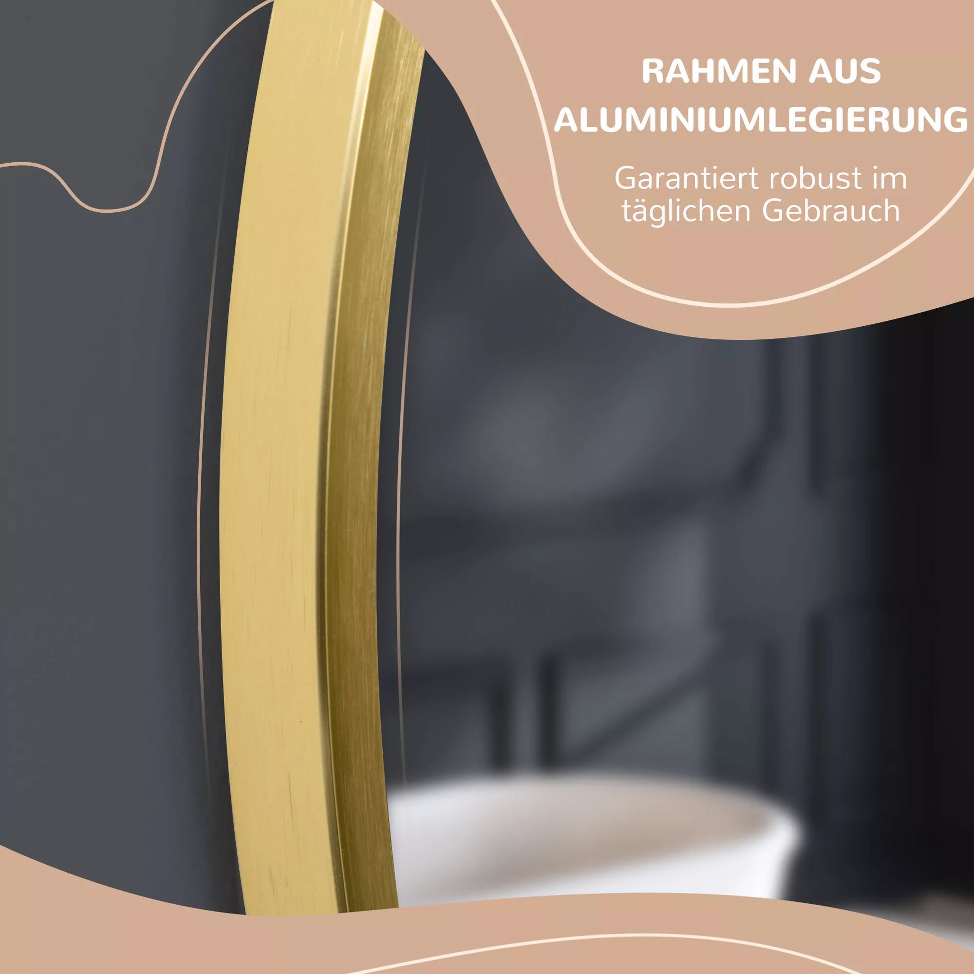 Apvalus sieninis veidrodis voniai, miegamajam, prieškambariui, metalinis rėmas, auksinės spalvos, Ø50 cm
