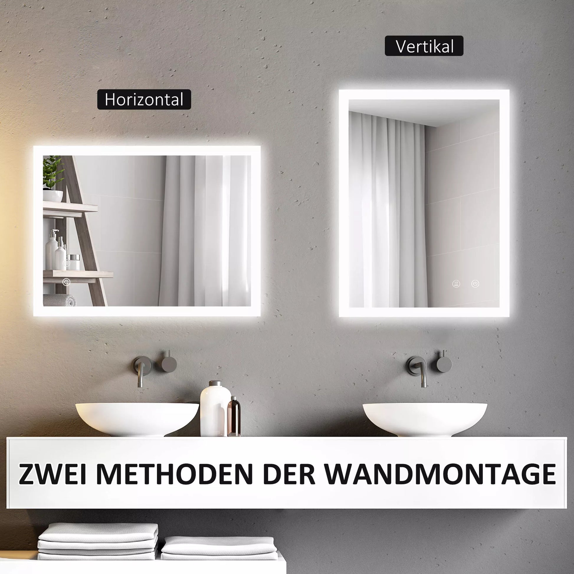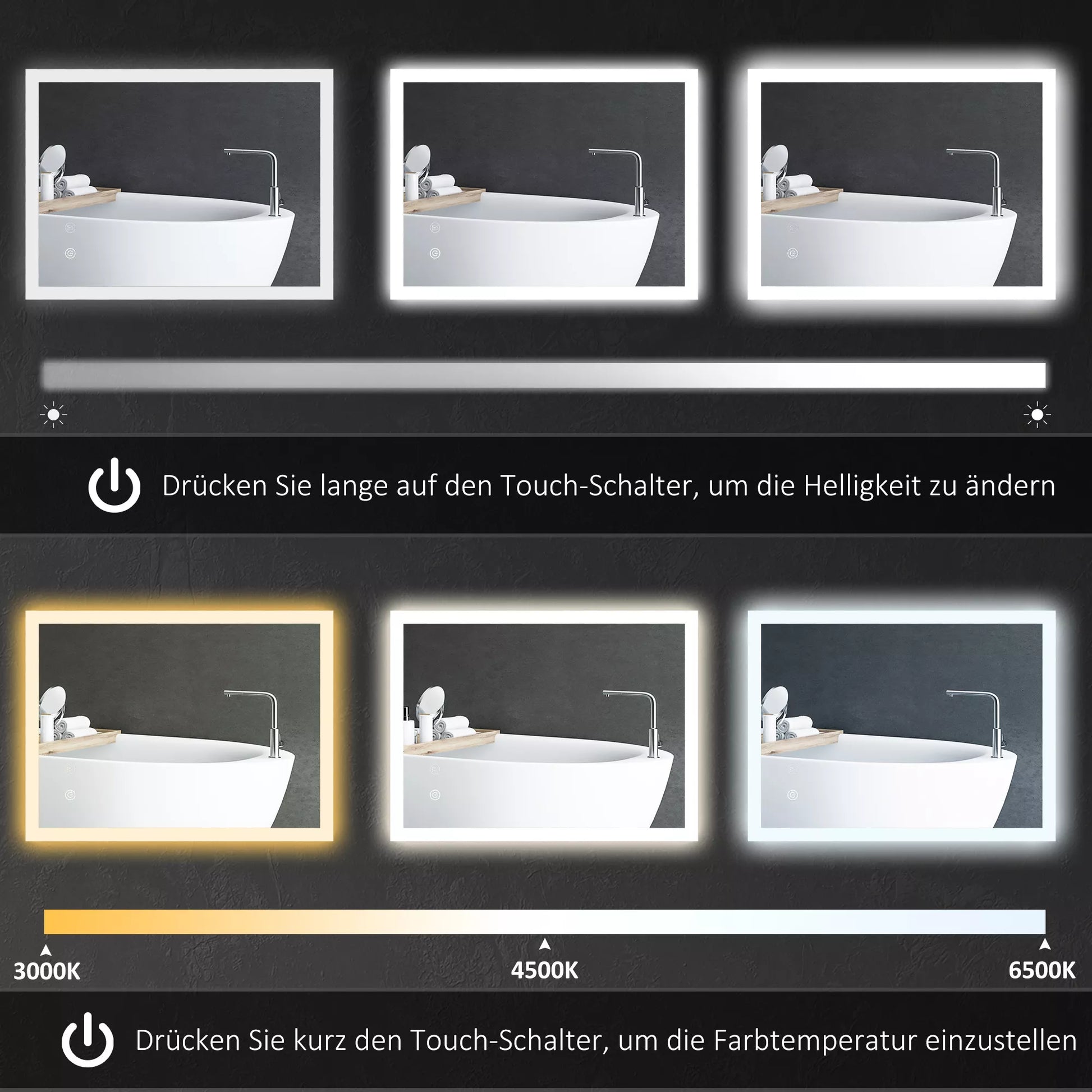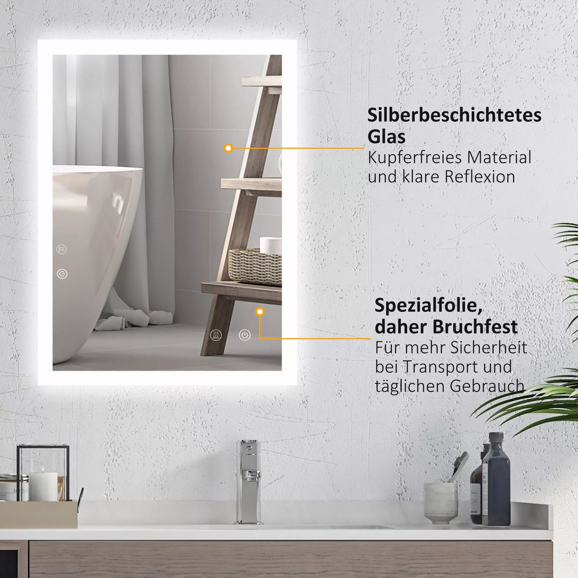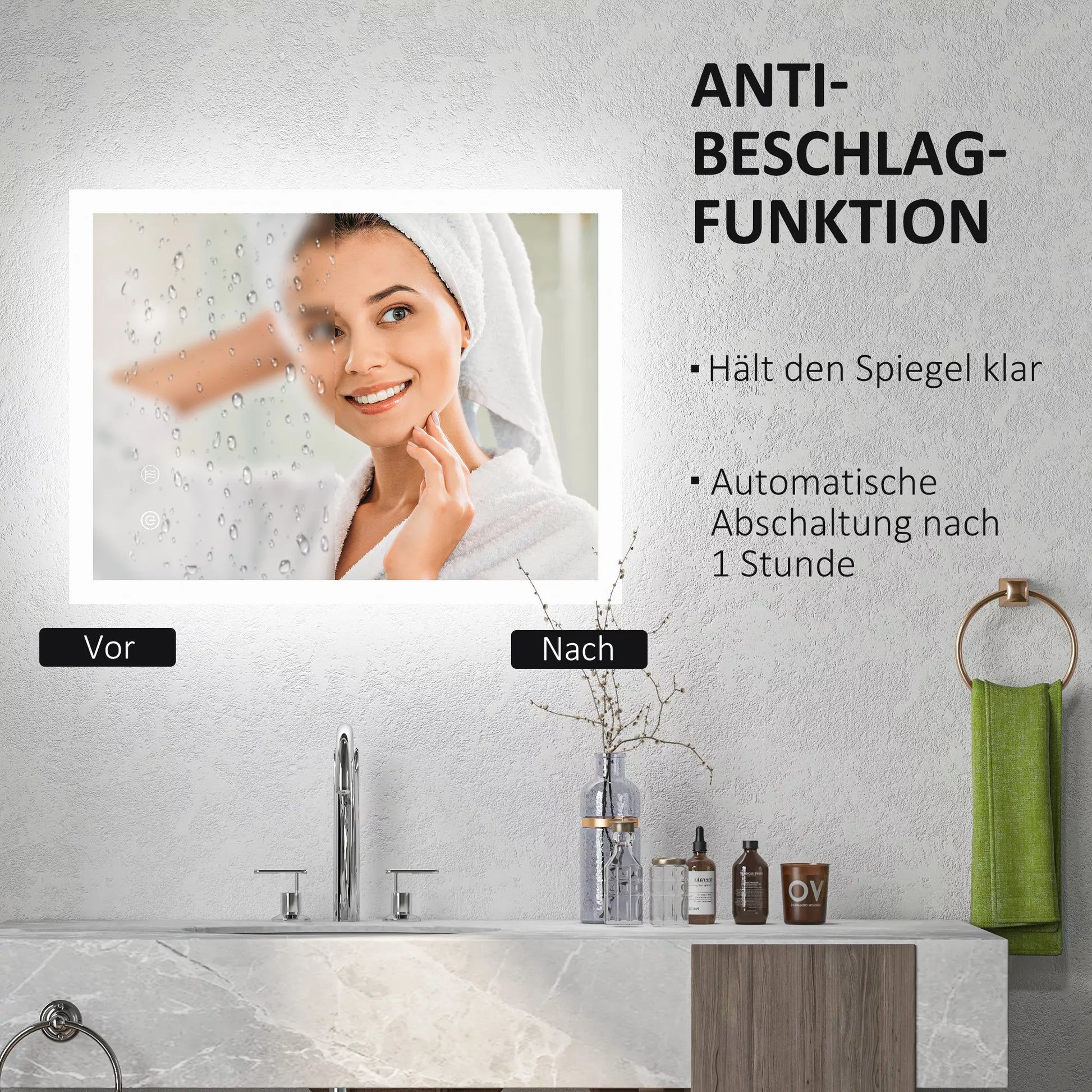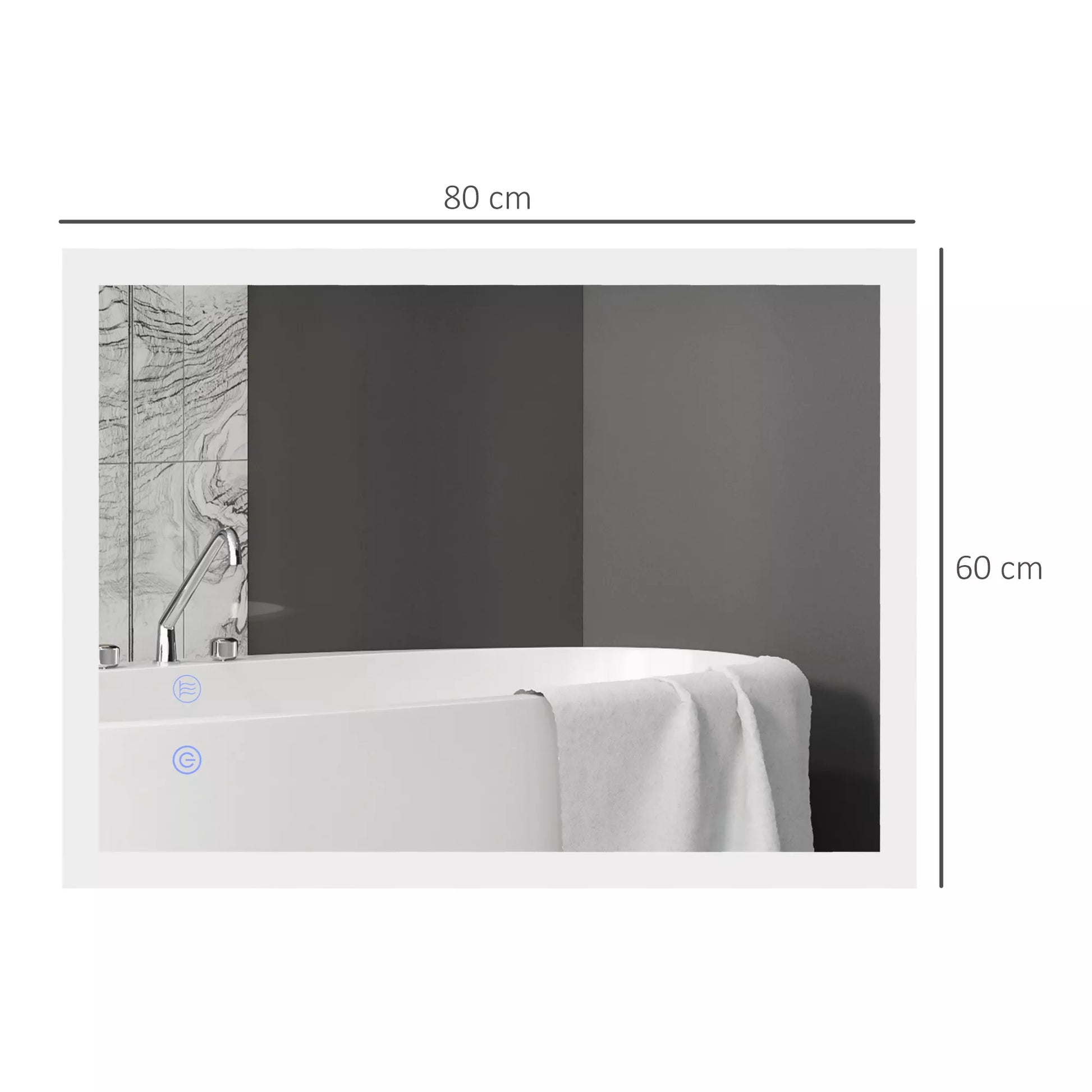 LED vonios veidrodis su foniniu apšvietimu, lietimo funkcija, atminties funkcija, apsaugantis nuo rasojimo, 80 x 60 cm