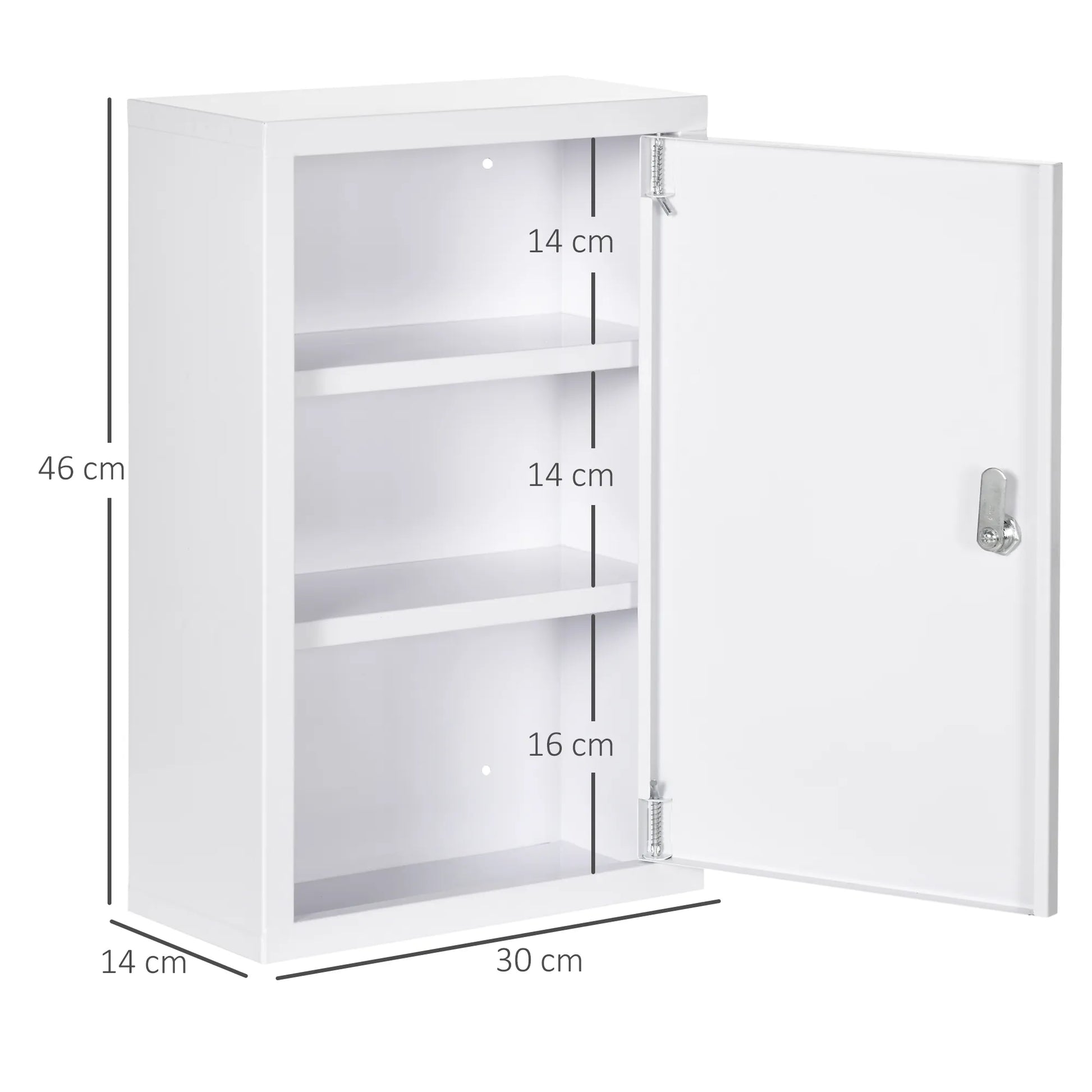 Medicininė spintelė, 3 skyriai, su užrakinamomis durimis, tvirtas plieninis korpusas, balta, 30 x 14 x 46 cm