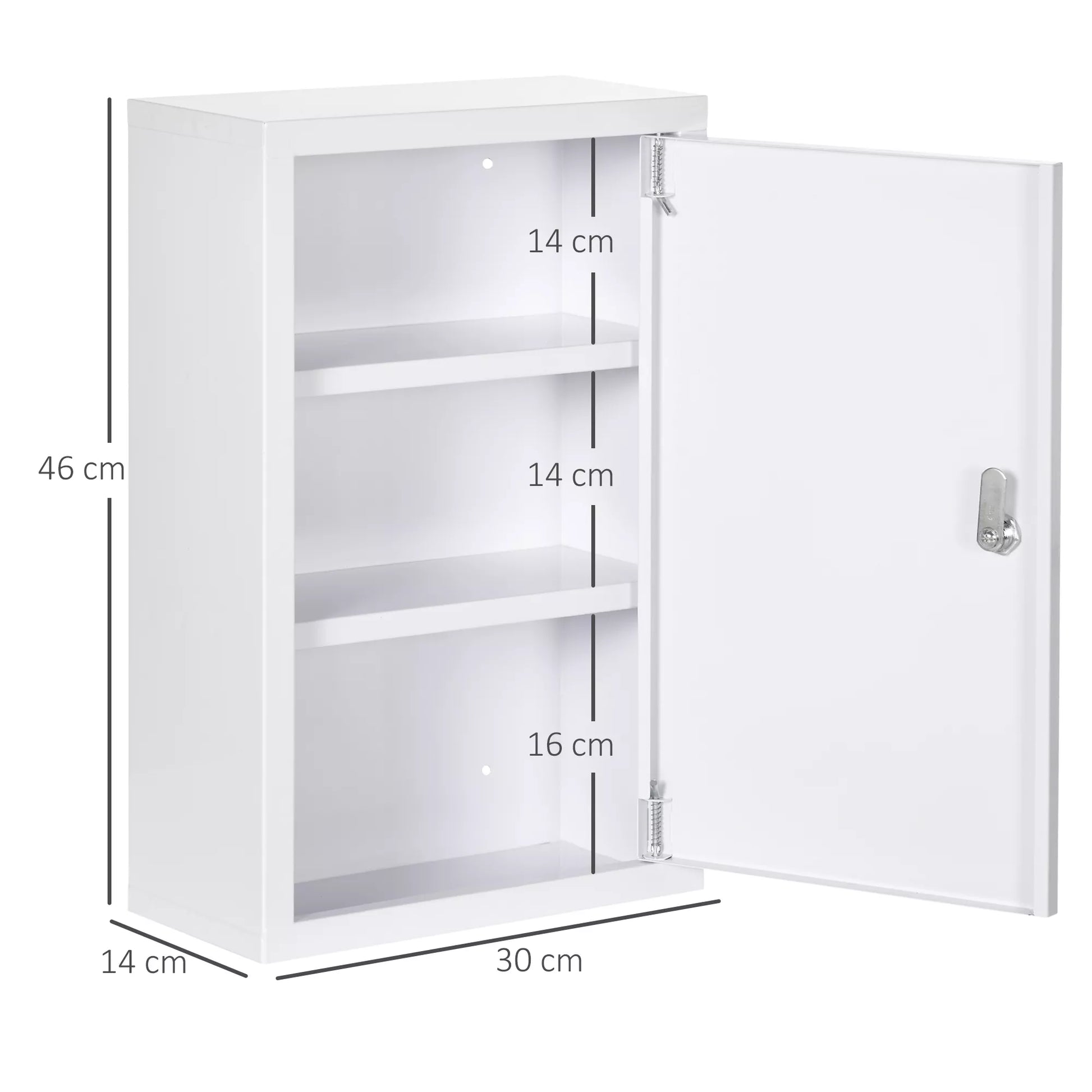 Vaistinėlė, užrakinama, su lentynomis, plieniniu korpusu, 30x14x46 cm, balta
