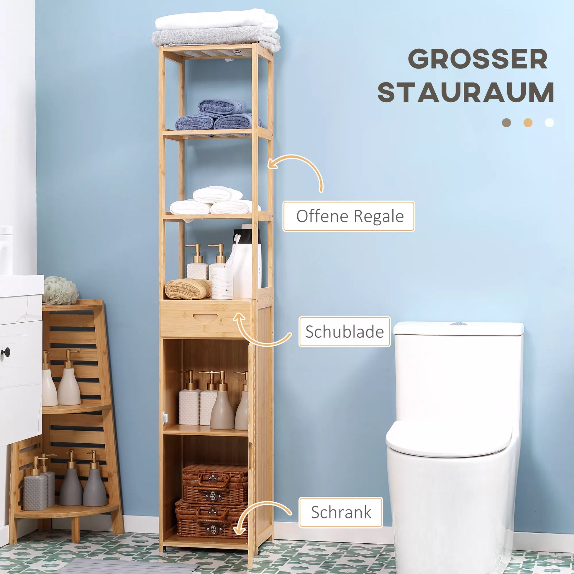 Šis stilingas, plonas vonios spintelė suteiks Jūsų vonios kambariui tvarkos, derindama atvirą ir uždarą daiktų laikymą – idealiai tinka mažesnėms patalpoms. Pagaminta iš patvaraus bambuko, ši vonios spintelė suteikia Jūsų vonios kambariui natūralią, šiltą išvaizdą ir yra puikiai tinkama kasdieniam naudojimui. Mėgaukitės vonios spintelės funkcionalumo ir estetikos deriniu, stilingai tvarkydami savo būtiniausius daiktus.