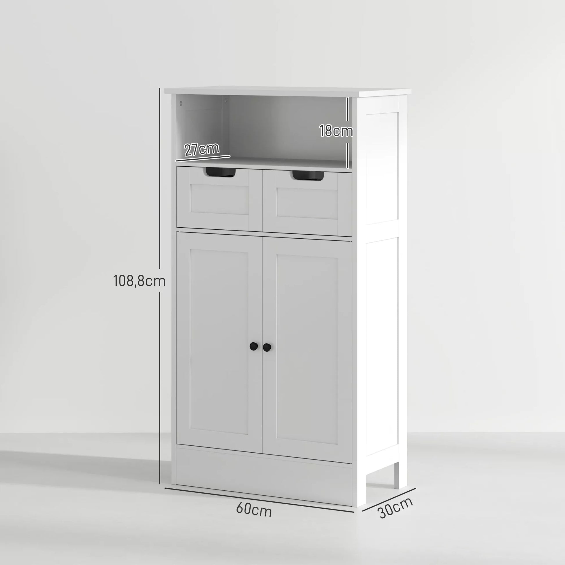 Vonios spintelė su 2 stalčiais, durimis, 60 x 30 x 109 cm, balta