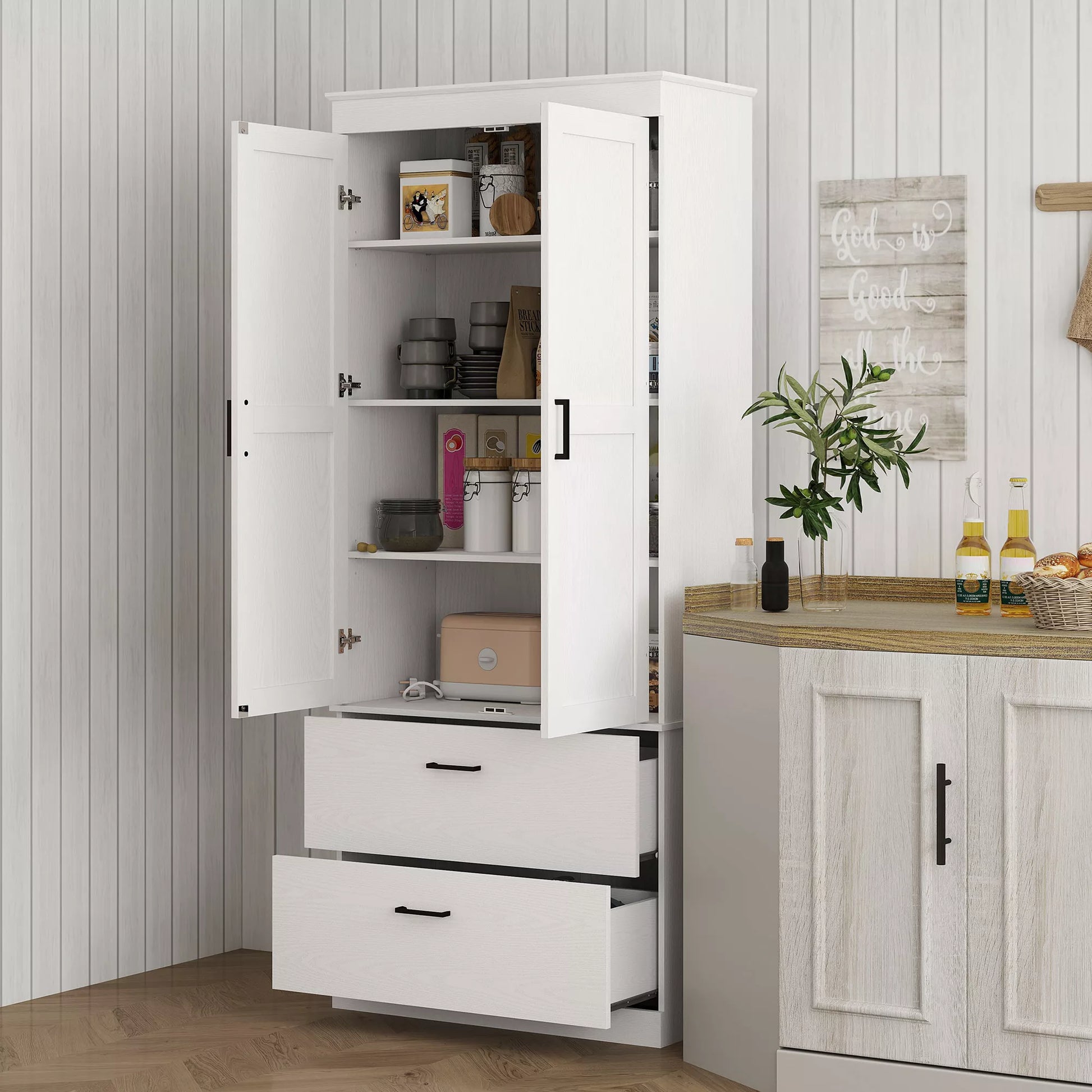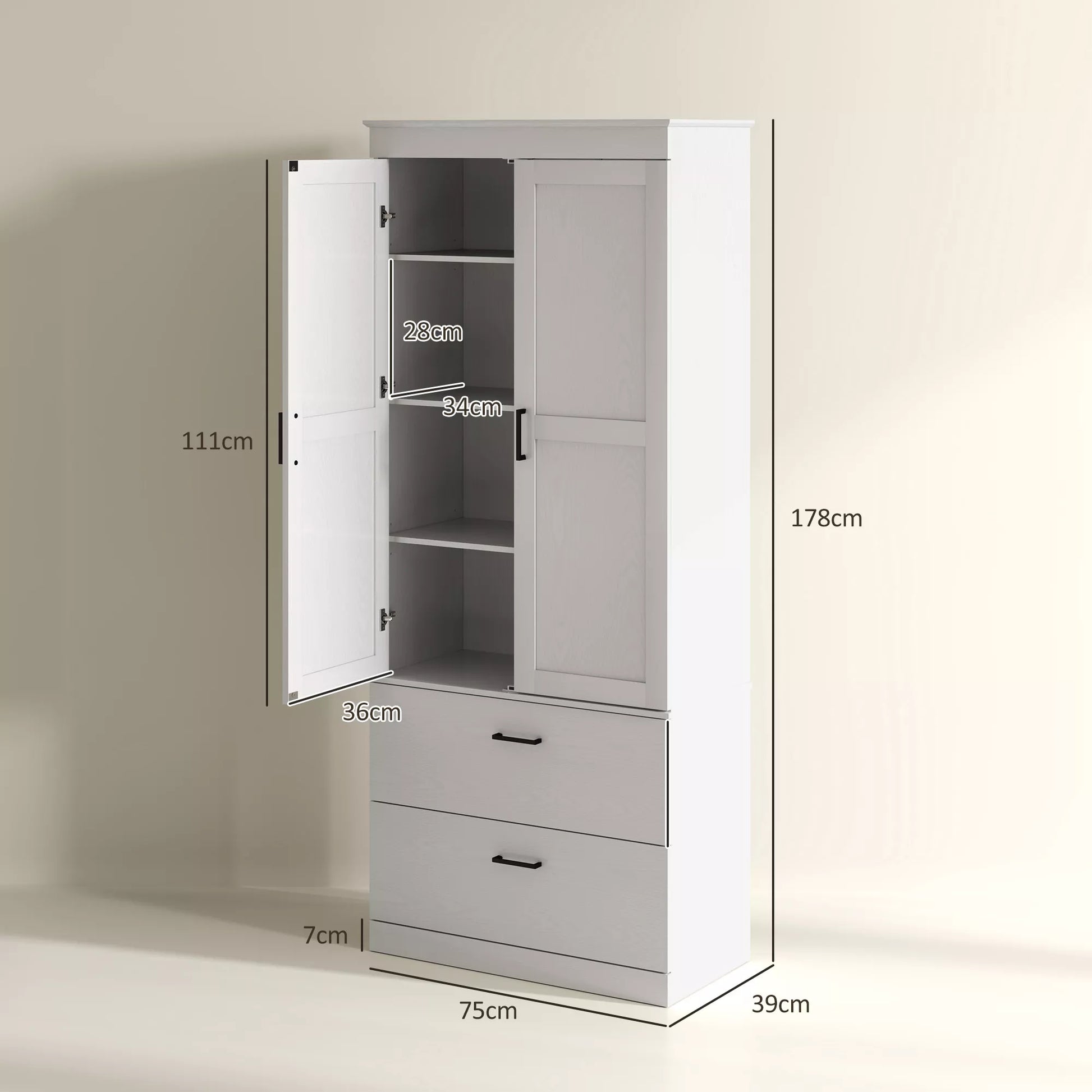 Atraskite kaimišką žavesį su šiuo aukštuoju spintu: Dėl didelės spintos ir dviejų plačių stalčių turėsite daug vietos įvairiems daiktams laikyti. Jo unikalus dizainas su juodomis, U formos rankenėlėmis ir „Shaker“ tipo durelėmis puikiai dera bet kurioje virtuvėje. Reguliuojamos sandėliuko lentynos taip pat užtikrina lankstų erdvės panaudojimą ir individualias laikymo galimybes.