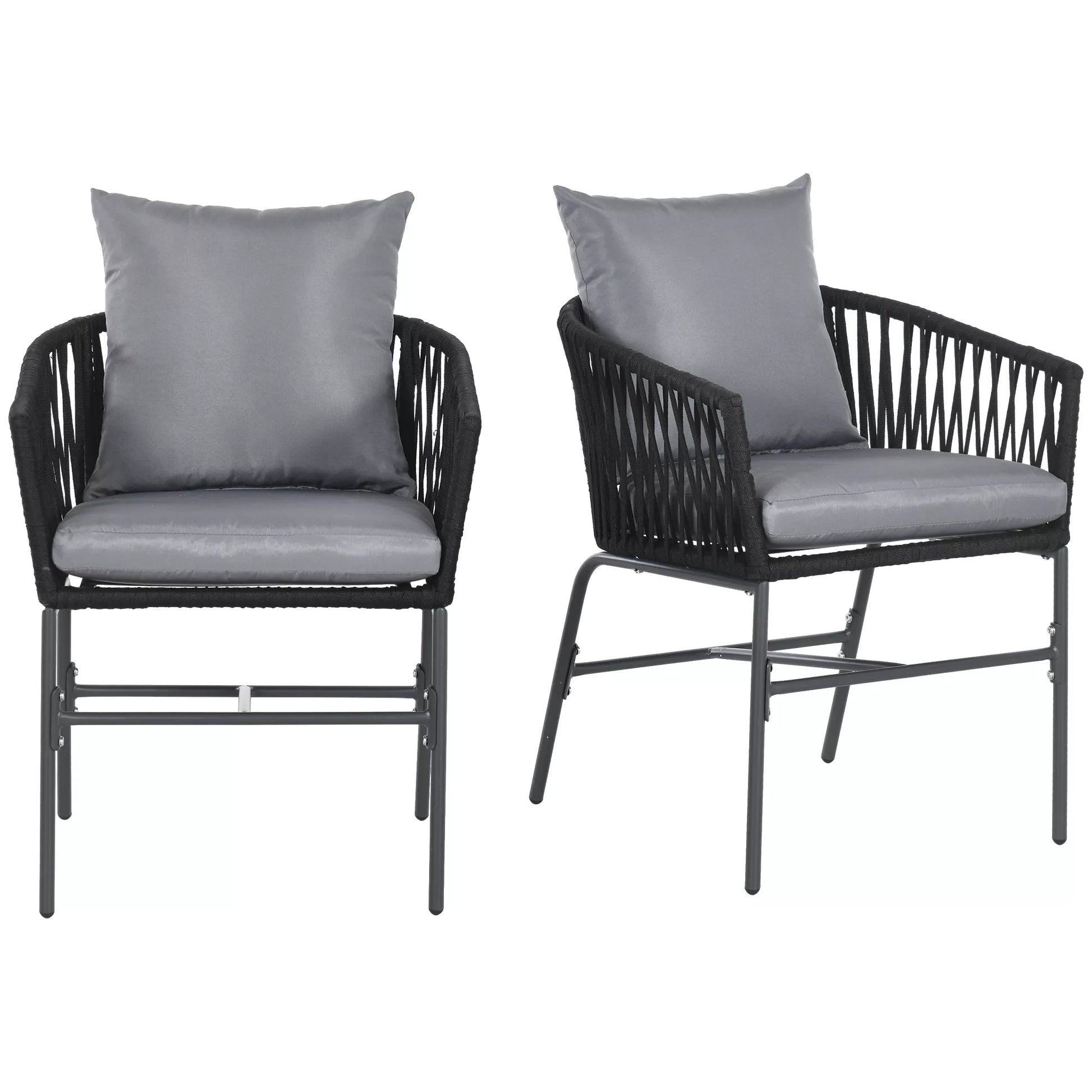 Lauko kėdės, 2 vnt. komplektas, Boho dizaino, su sėdynės ir atlošo pagalvėlėmis, patogia sėdimąja dalimi, metaliniu rėmu, juodos.