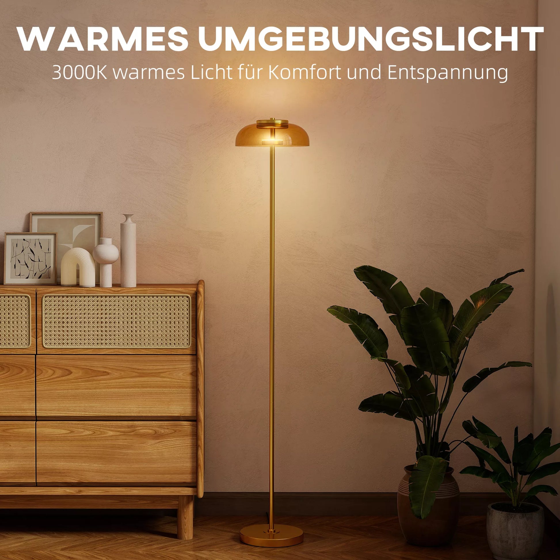 LED grindinė lempa svetainei, stovas šviestuvas su 3000 K šilta šviesa, kojiniu jungikliu, 25 x 25 x 134 cm, žalvaris
