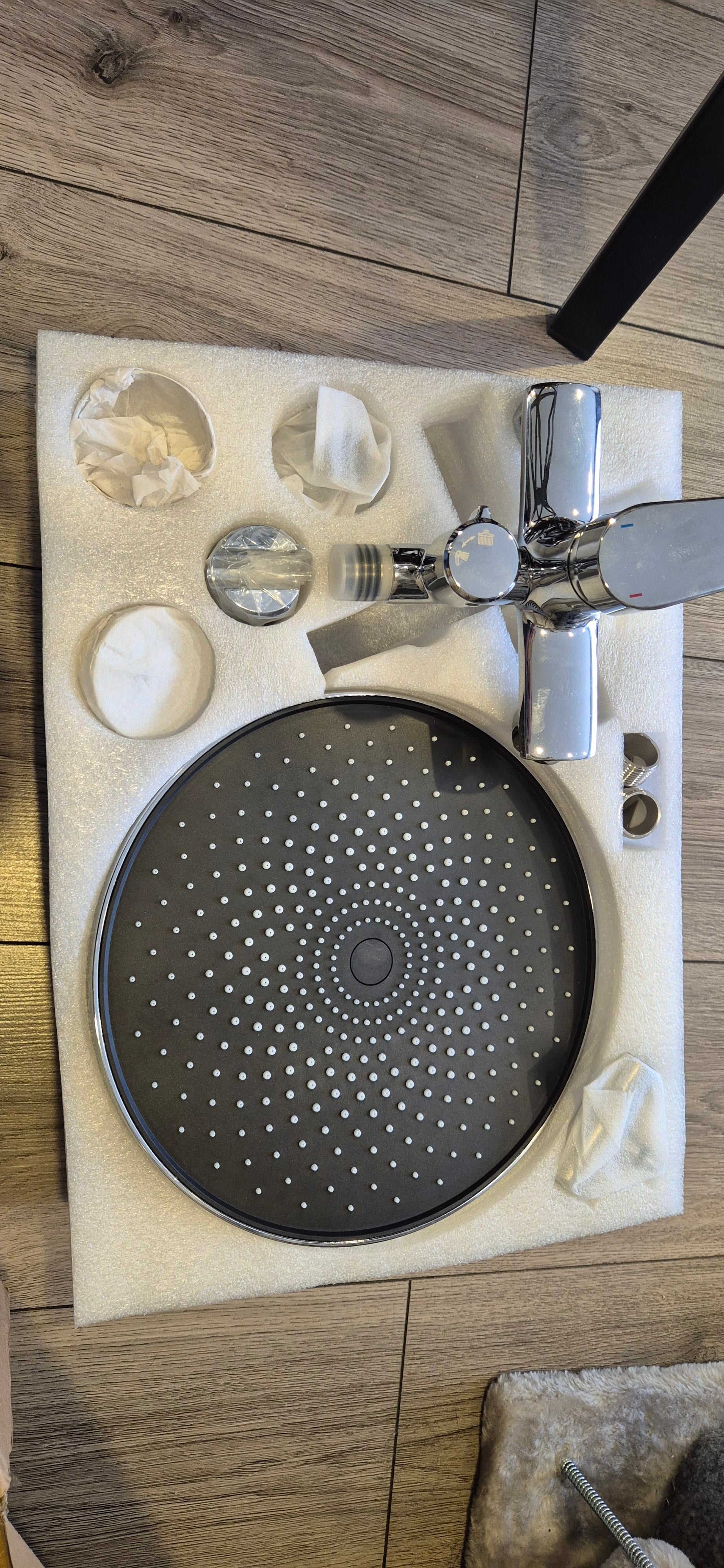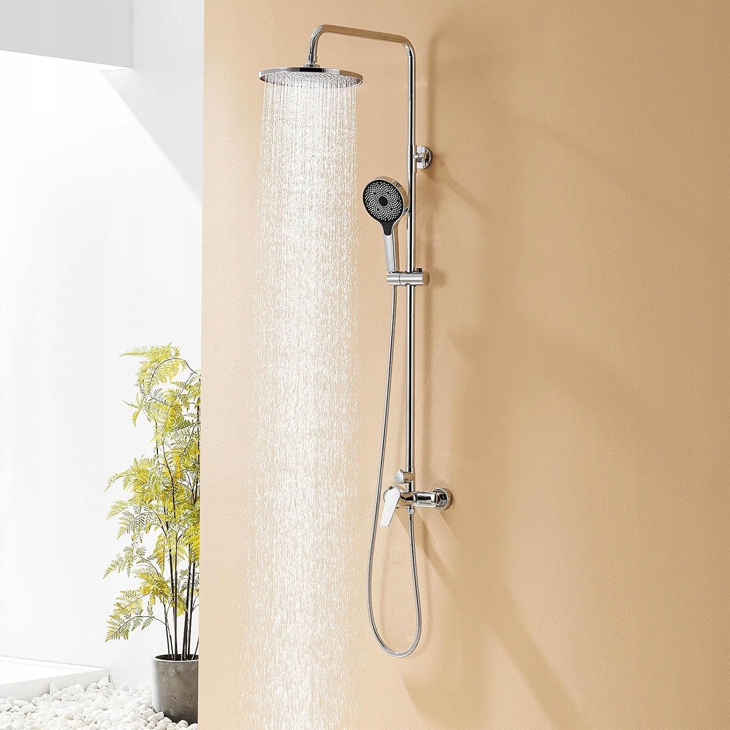 Prekės pakuotė buvo atidaryta, tačiau pats daiktas yra visiškai naujas, nenaudotas ir pilnos komplektacijos. Dviejų jungčių sistema leidžia lengvai perjungti du vandens paskirstymo režimus: 29 × 19 cm dušo galvutę ir rankinį dušą su žarna ir rankena 🔄💧. Dušo kolonėlė derina praktiškumą ir estetiką. Chromuota apdaila ir nerūdijantis plienas suteikia vonios kambariui modernumo ✨🏡.