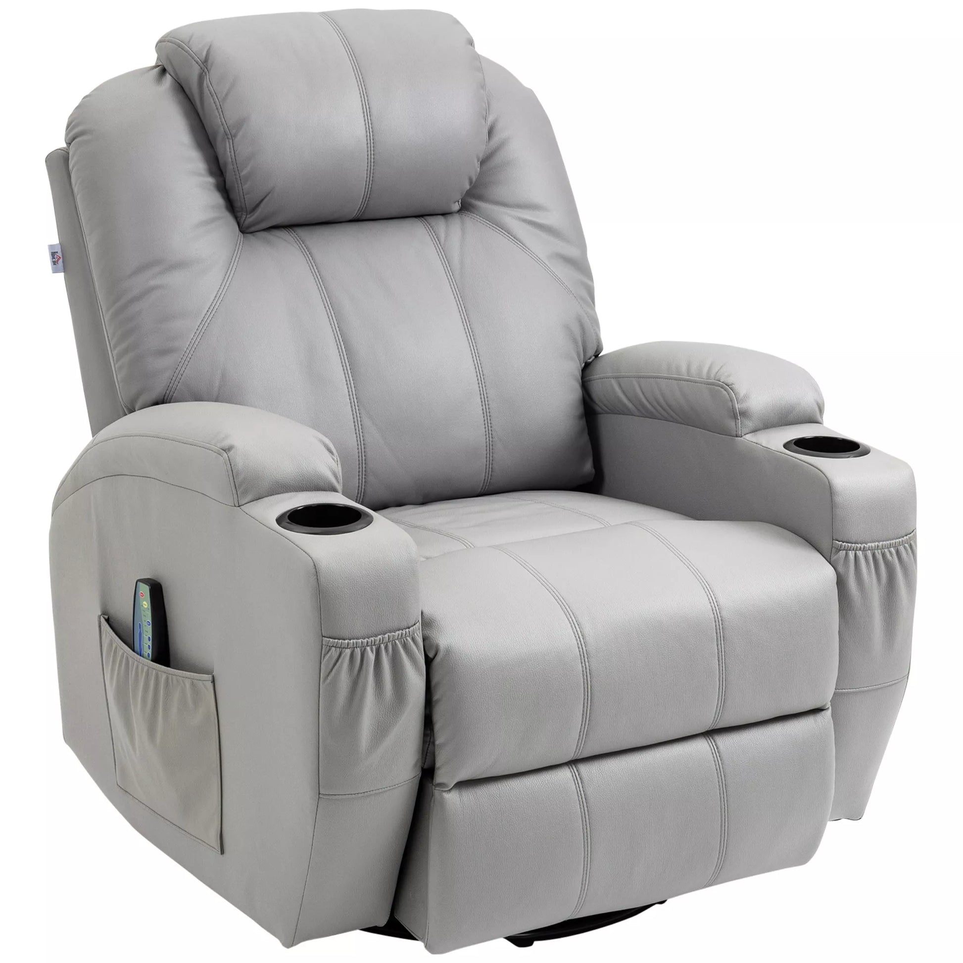 Masažinė kėdė su kojų atrama, 8 vibravimo taškai, 5 režimai, su nuotolinio valdymo pultu, šviesiai pilka.