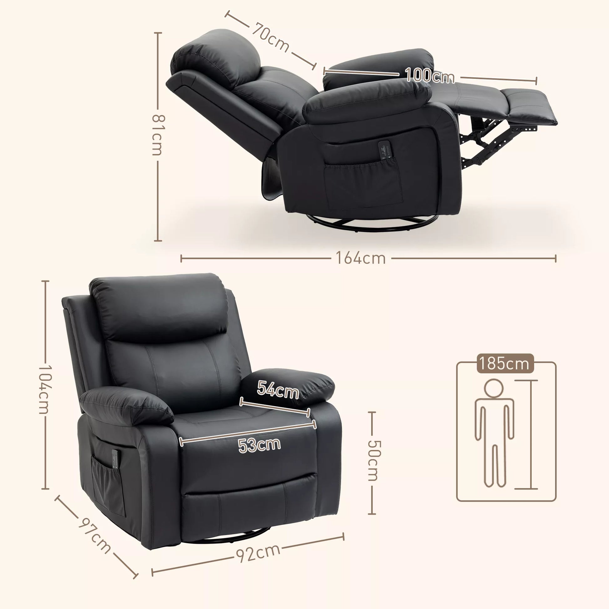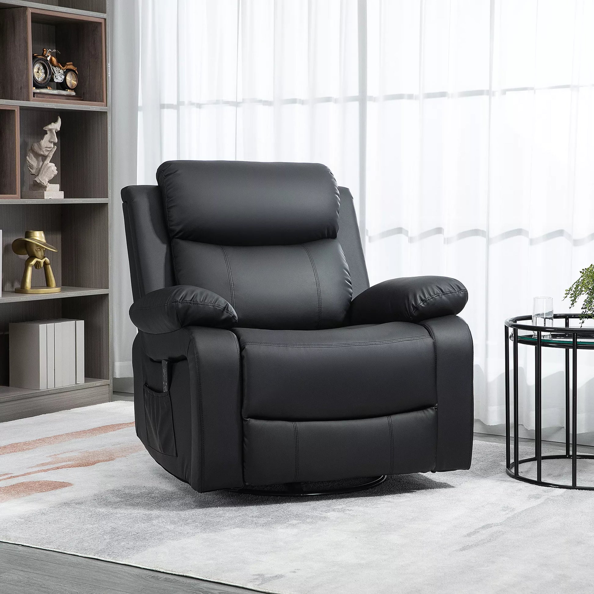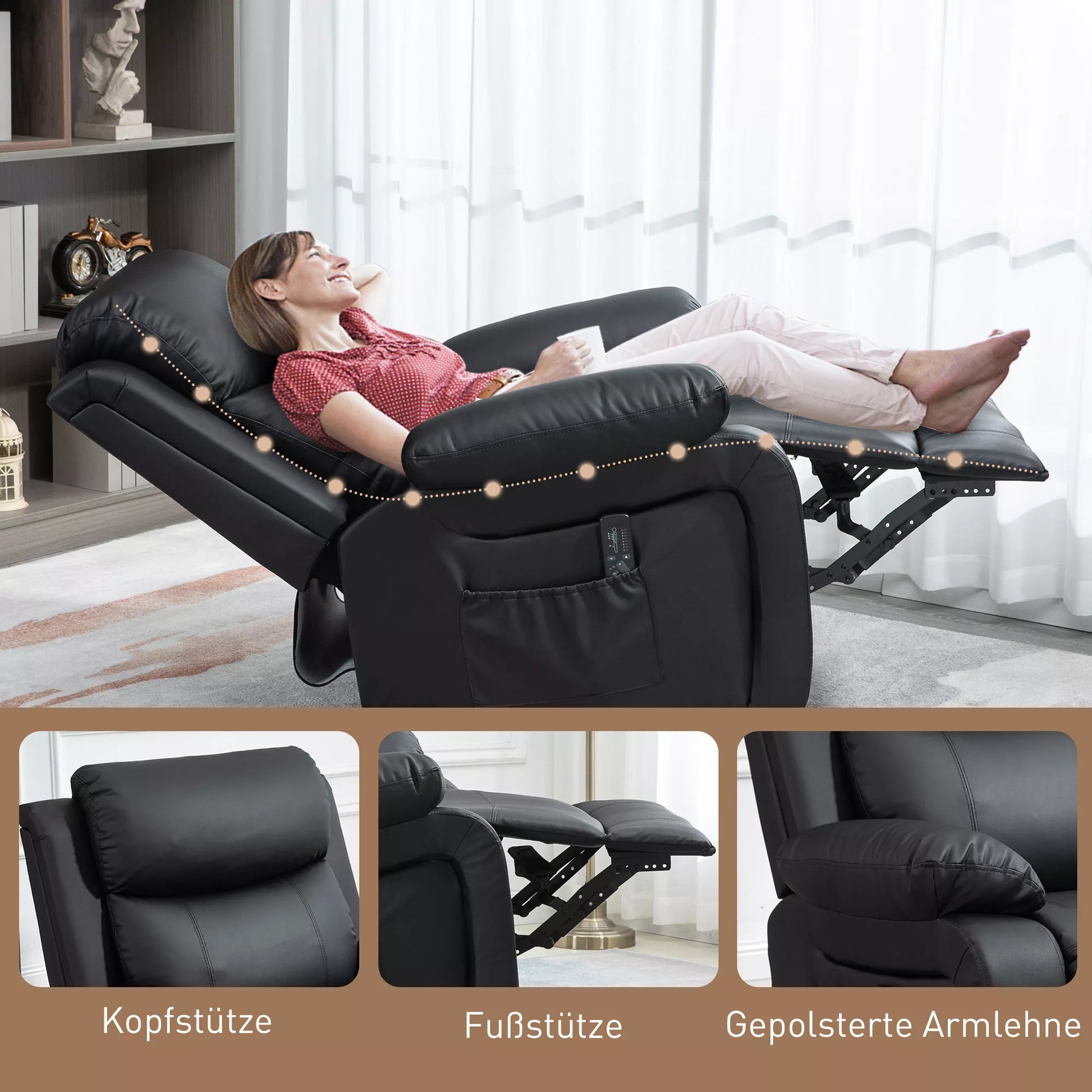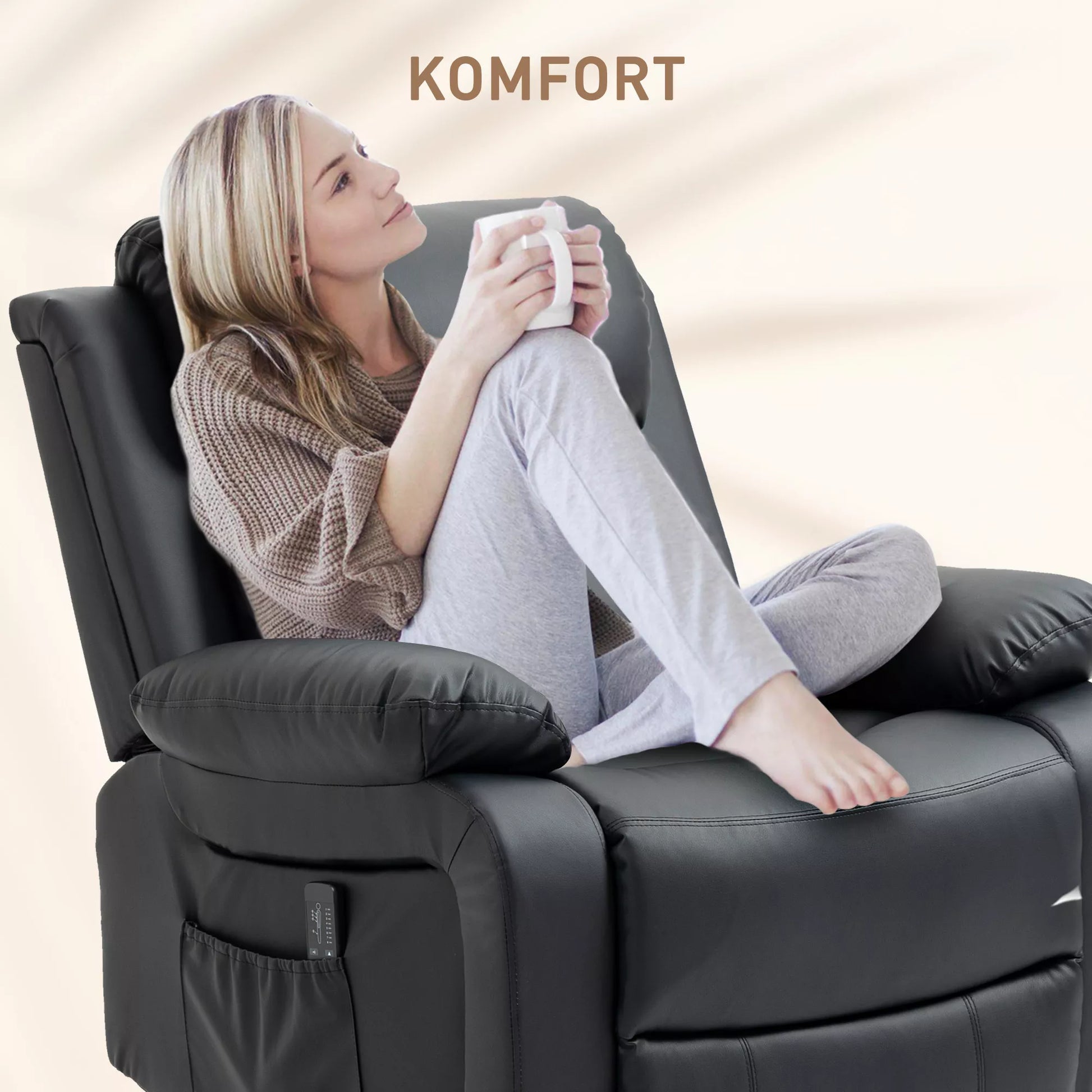 Atraskite didžiausią komfortą su šia masažine relaksacijos kėde! Pasinerkite į gryną jaukumą – sėdėdami ar ilsėdamiesi pusiau gulint, mėgaukitės neribota judėjimo laisve dėl laisvai besisukančios sėdynės. Ši televizoriaus kėdė su 8 vibracijos taškais suteikia malonų masažą juosmeniui, šlaunims ir blauzdoms. Patogiai valdykite masažo funkciją nuotolinio valdymo pulteliu ir pasinerkite į svajingą atsipalaidavimą.