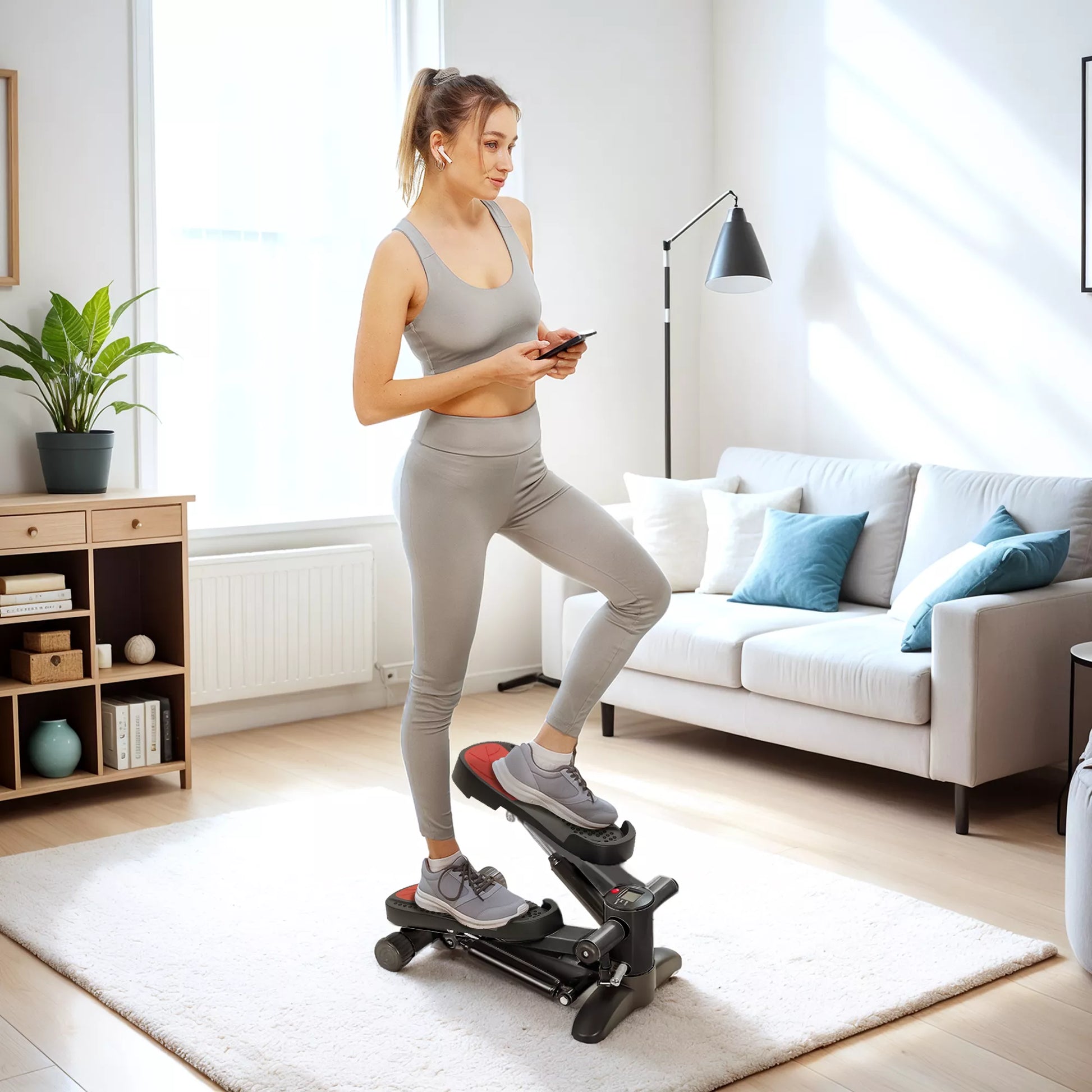 Pagerinkite savo fizinę formą su mini steperiu! Kompaktiškas jo dizainas stiprina kojų raumenis, didina raumenų masę ir ištvermę. LCD monitoriuje galite stebėti kalorijų suvartojimą, žingsnius ir laiką, o švelnūs hidrauliniai cilindrai užtikrina tylų treniruotes. Namams skirtas steperis turi neslystančius pedalus, kurie užtikrina papildomą saugumą. Puikiai tinka mažoms patalpoms ir visada paruoštas naudoti.