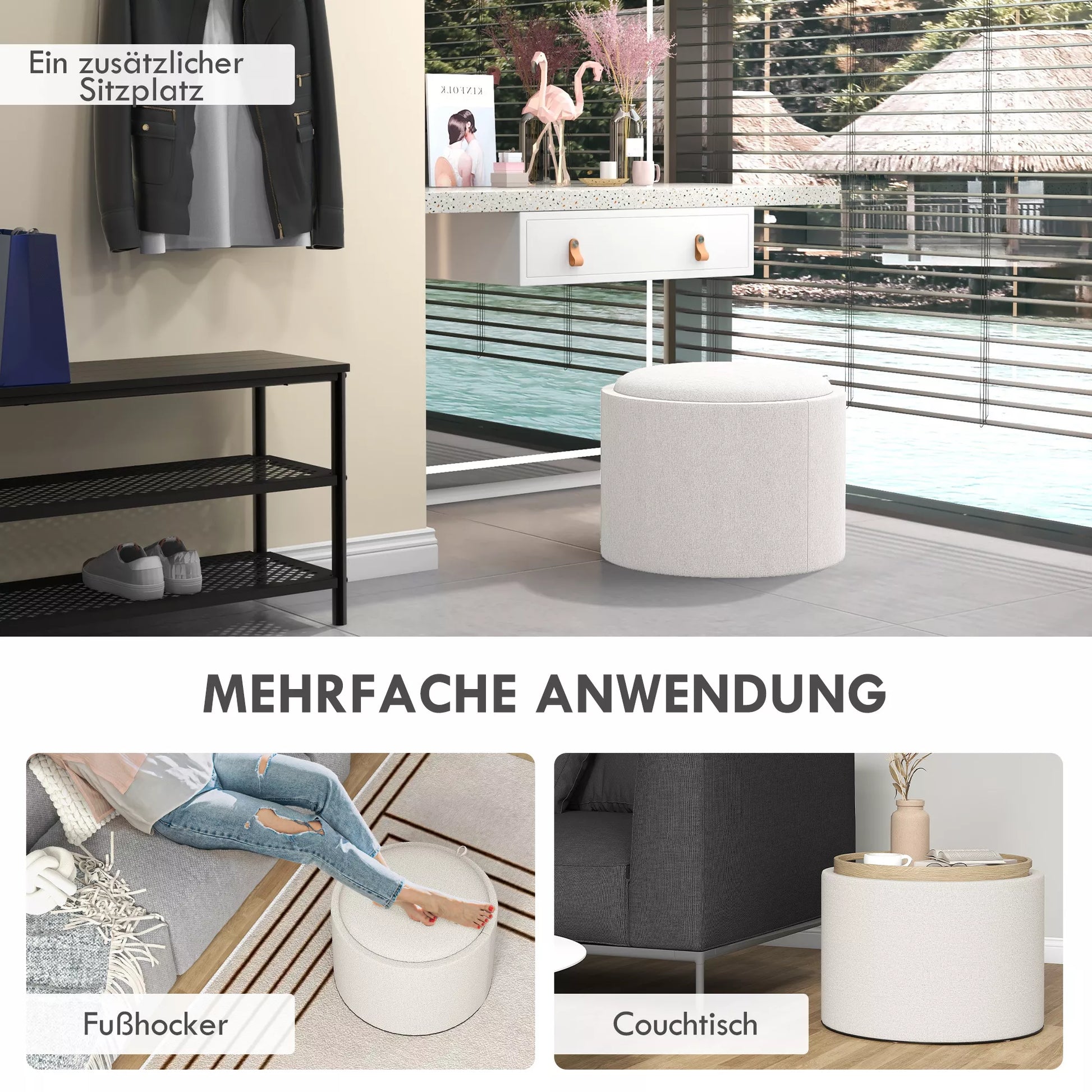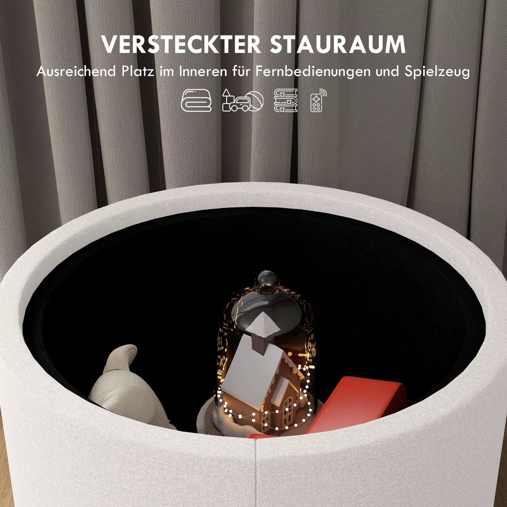 Jei jums reikia papildomos vietos daiktams laikyti ir norite suteikti savo namams stiliaus akcentą, šis pufas su laikymo funkcija yra kaip tik jums. Modernaus dizaino pufas su lino imitacijos apdaila yra stilingas ir suteikia jums ar jūsų svečiams papildomą sėdimą vietą. Šis sėdimasis pufas turi nuimamą plokštę, kurią galima naudoti kaip padėklą ir kuri paslepia daiktų laikymo vietą. Su juo jausitės kaip namie.