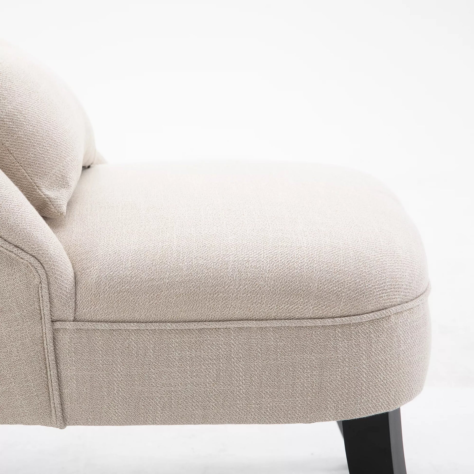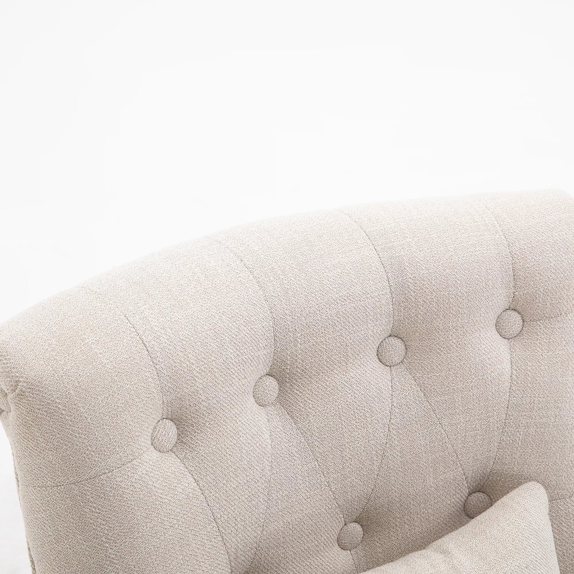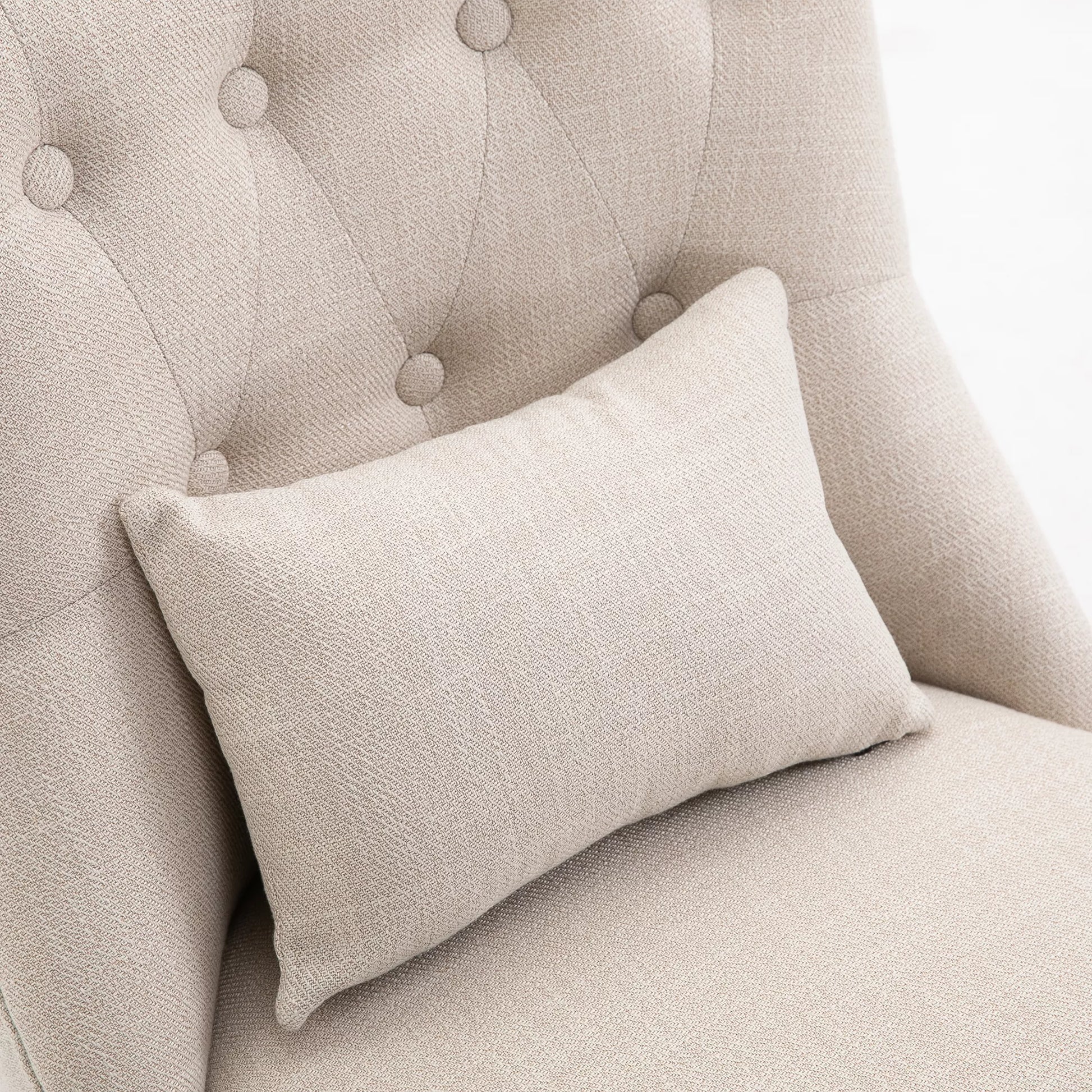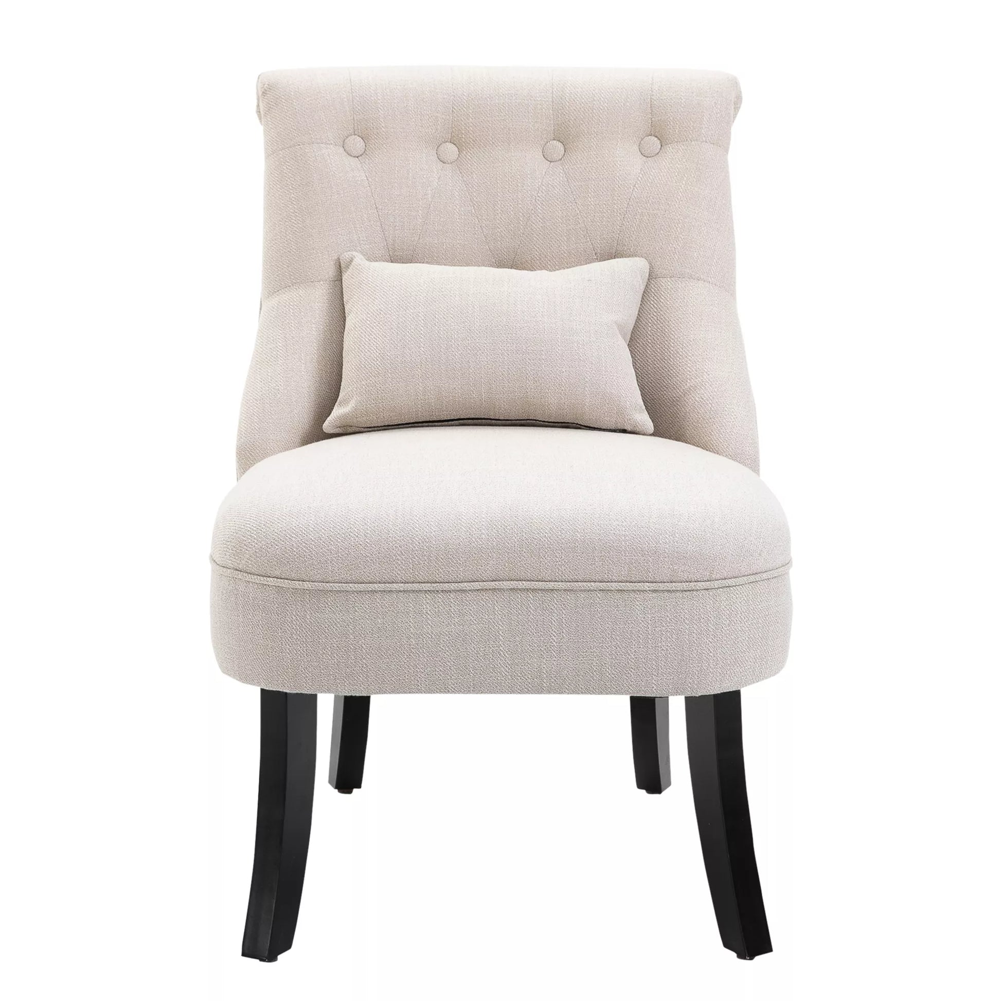 Minkštas fotelis su atlošo pagalvėle, skirtas skaitymui ir poilsiui, audinio apmušalas su lino išvaizda, 52,5 x 69 x 77 cm, kreminės baltos spalvos