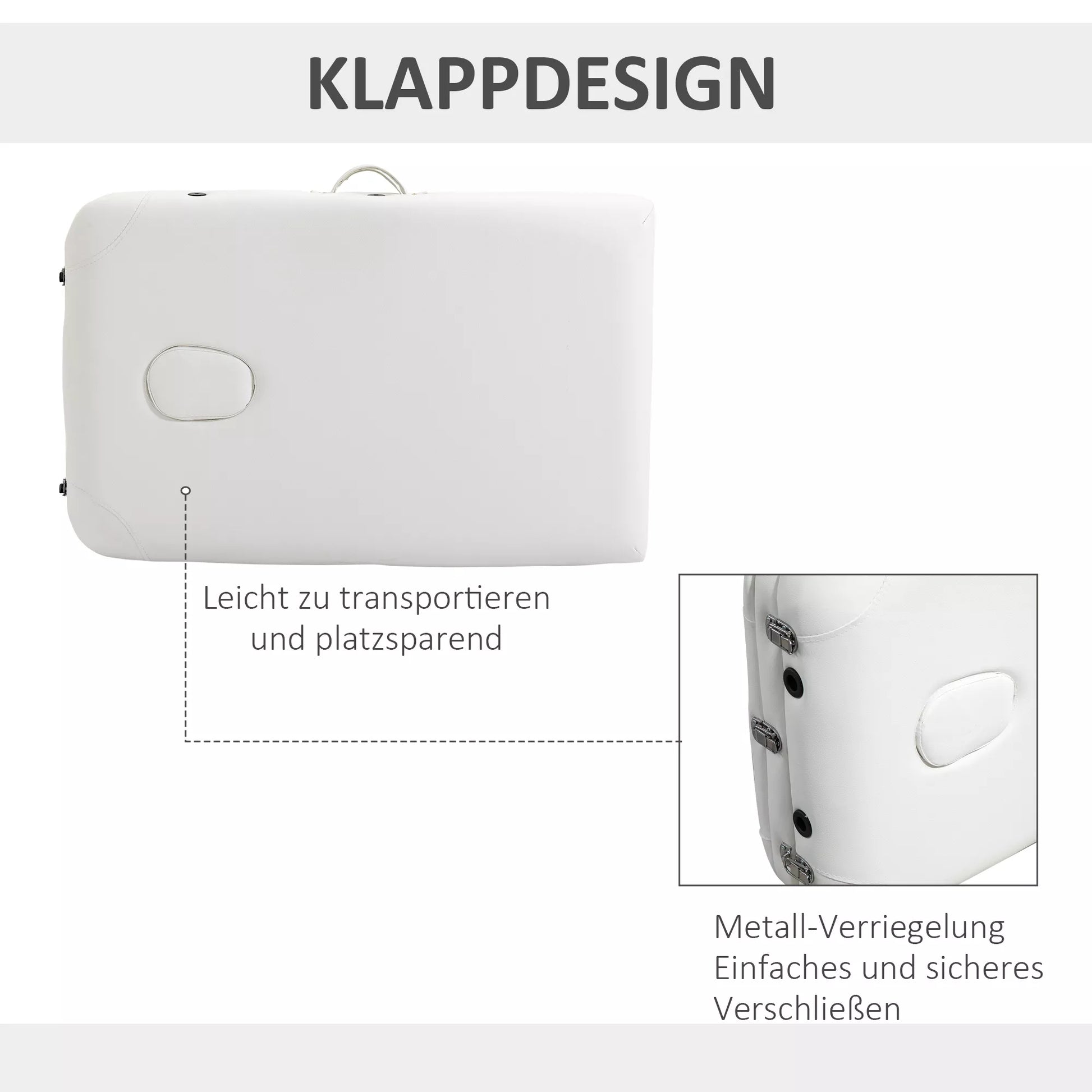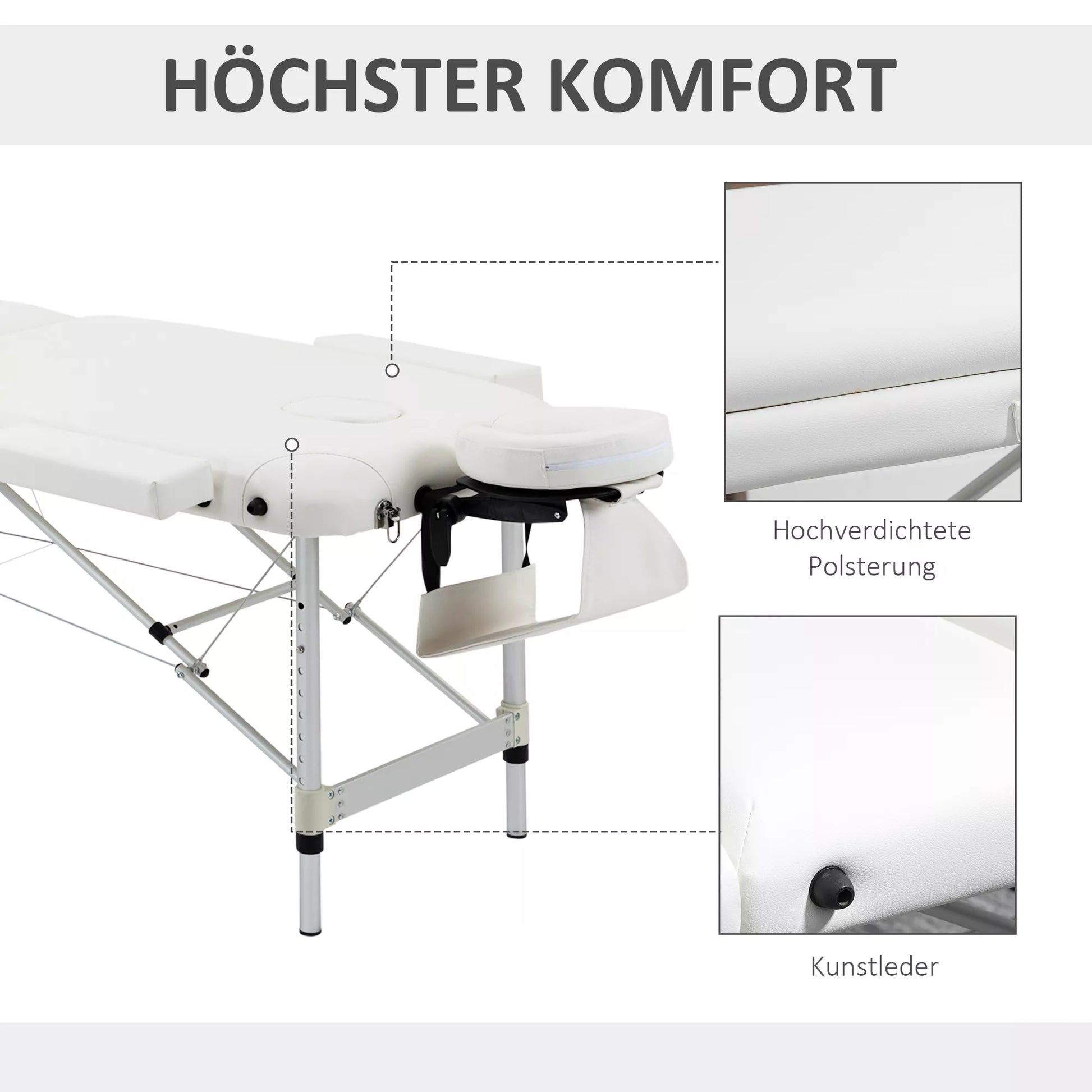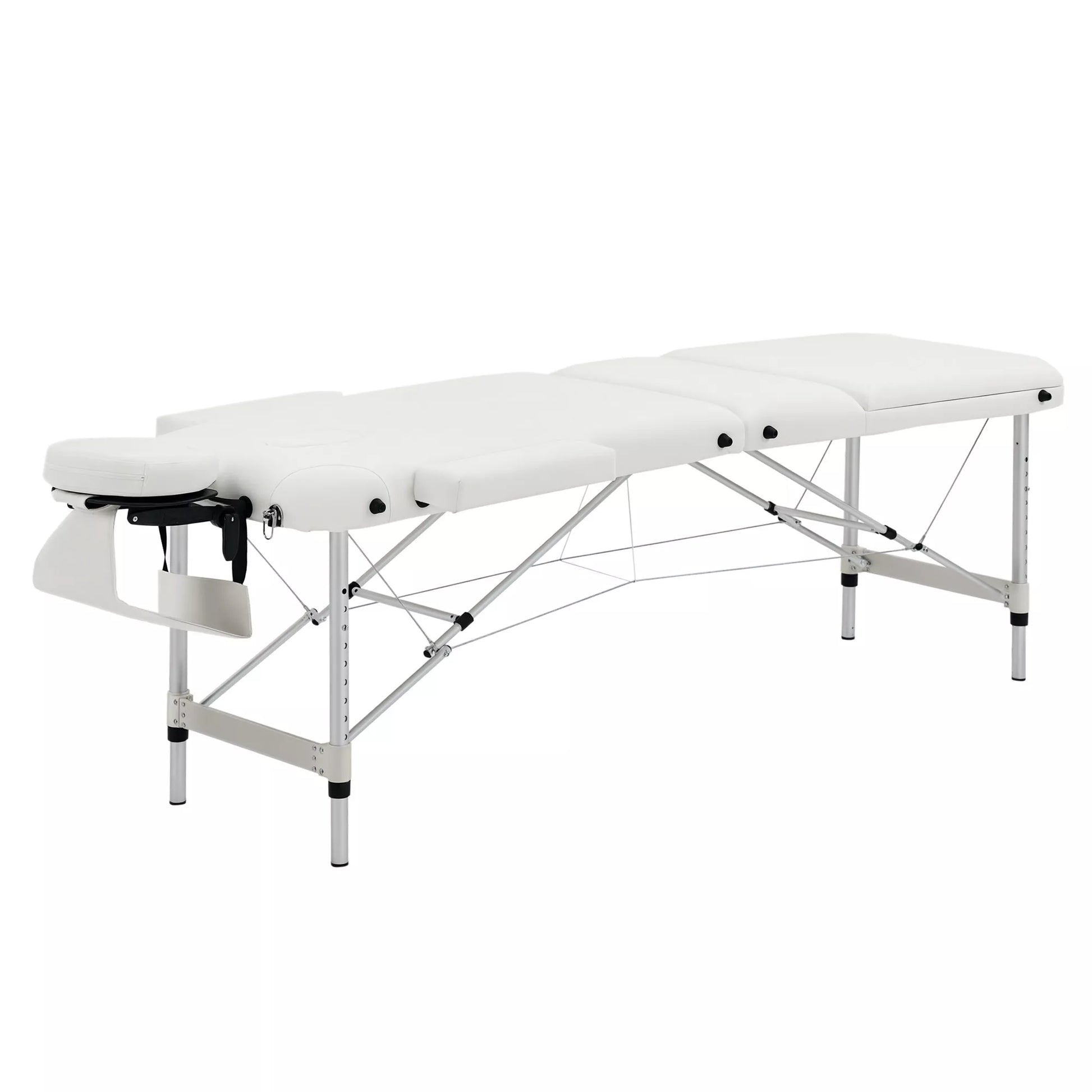 Nešiojama sulankstoma 3 zonų masažo kušetė su galvos atrama, atrama rankoms, transportavimo krepšiu, reguliuojamo aukščio aliumininė masažo kušetė, nešiojama, su priedais, iki 225 kg apkrovos, balta