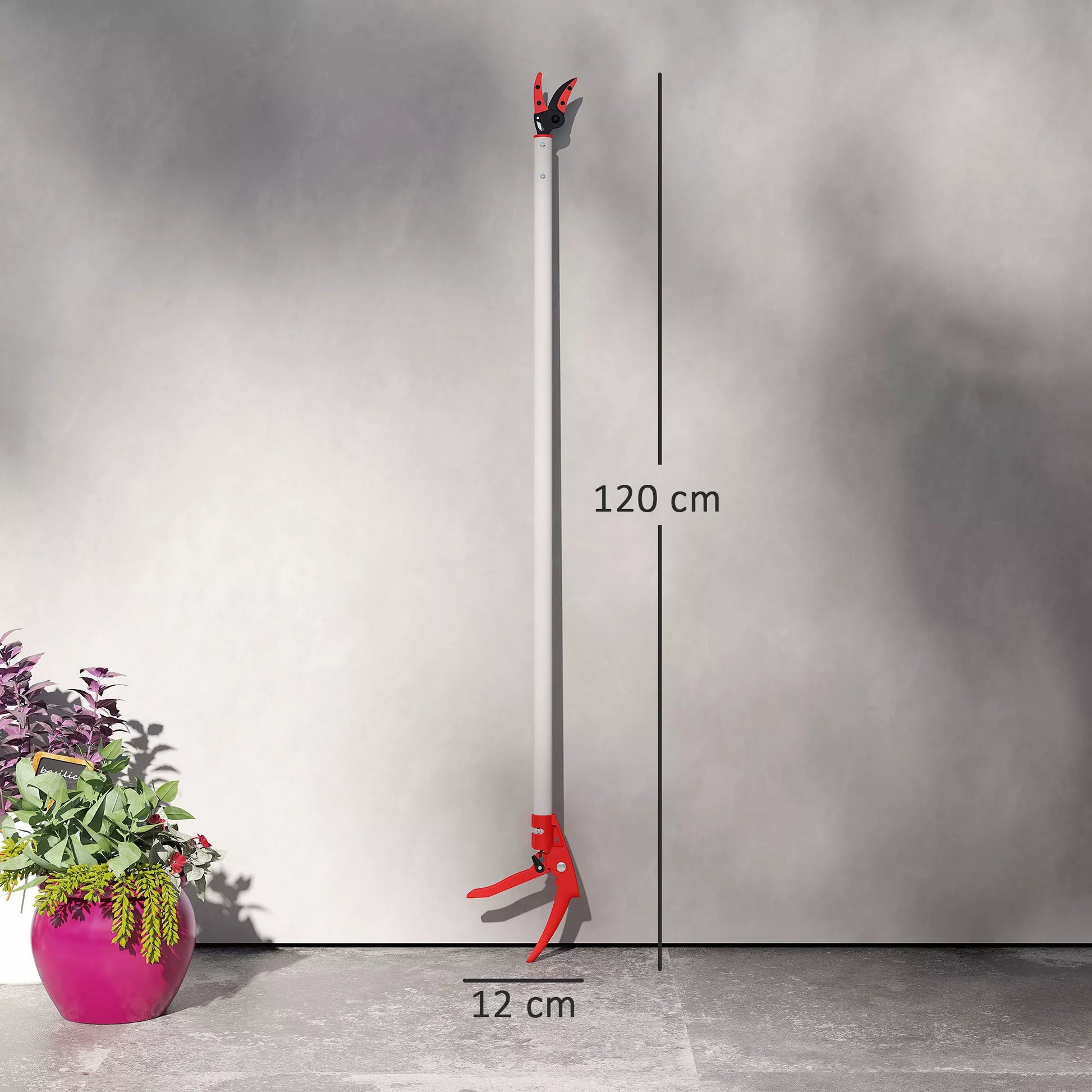 - ✔ 120 cm ilgio genėjimo įrankis leidžia genėti aukštai esančias šakas