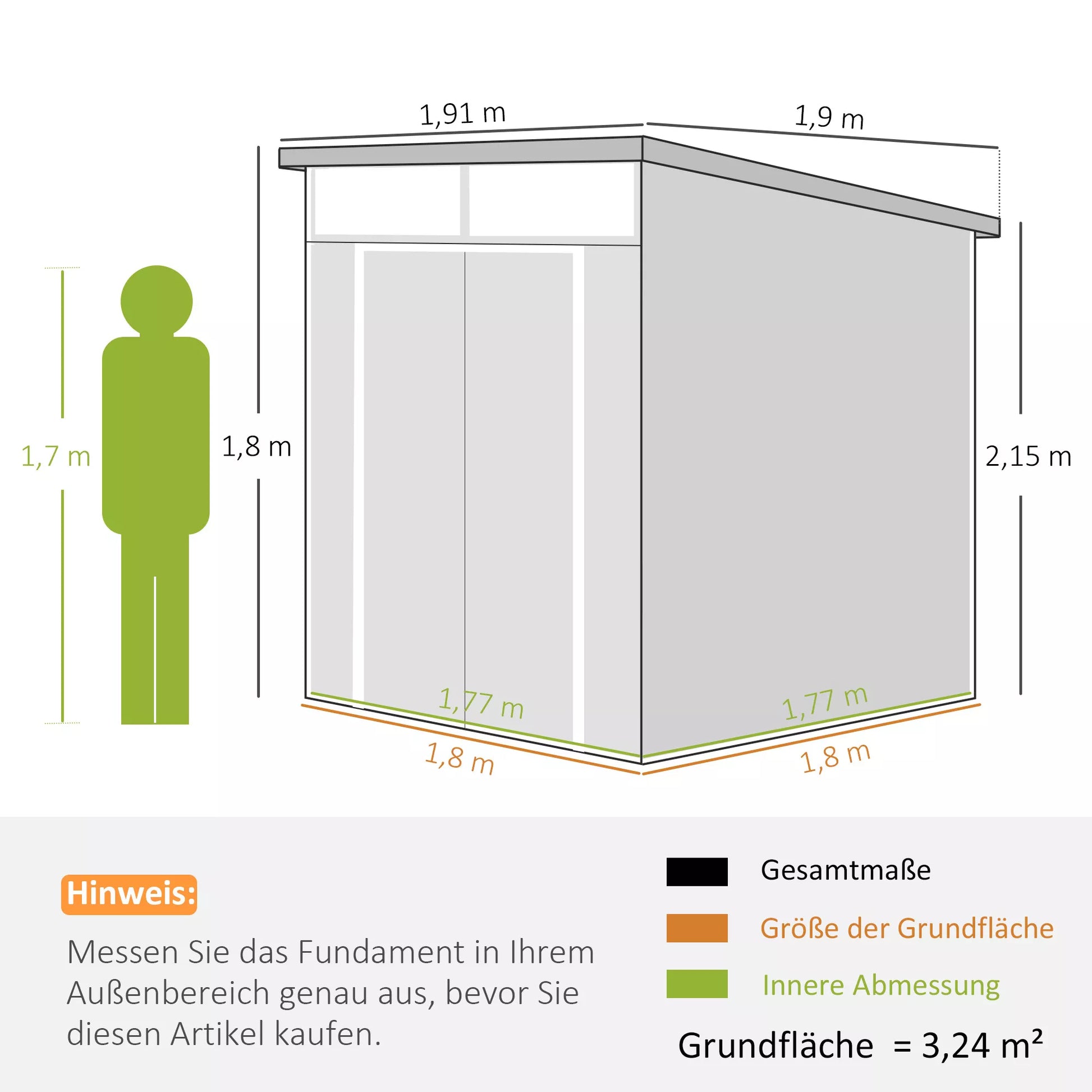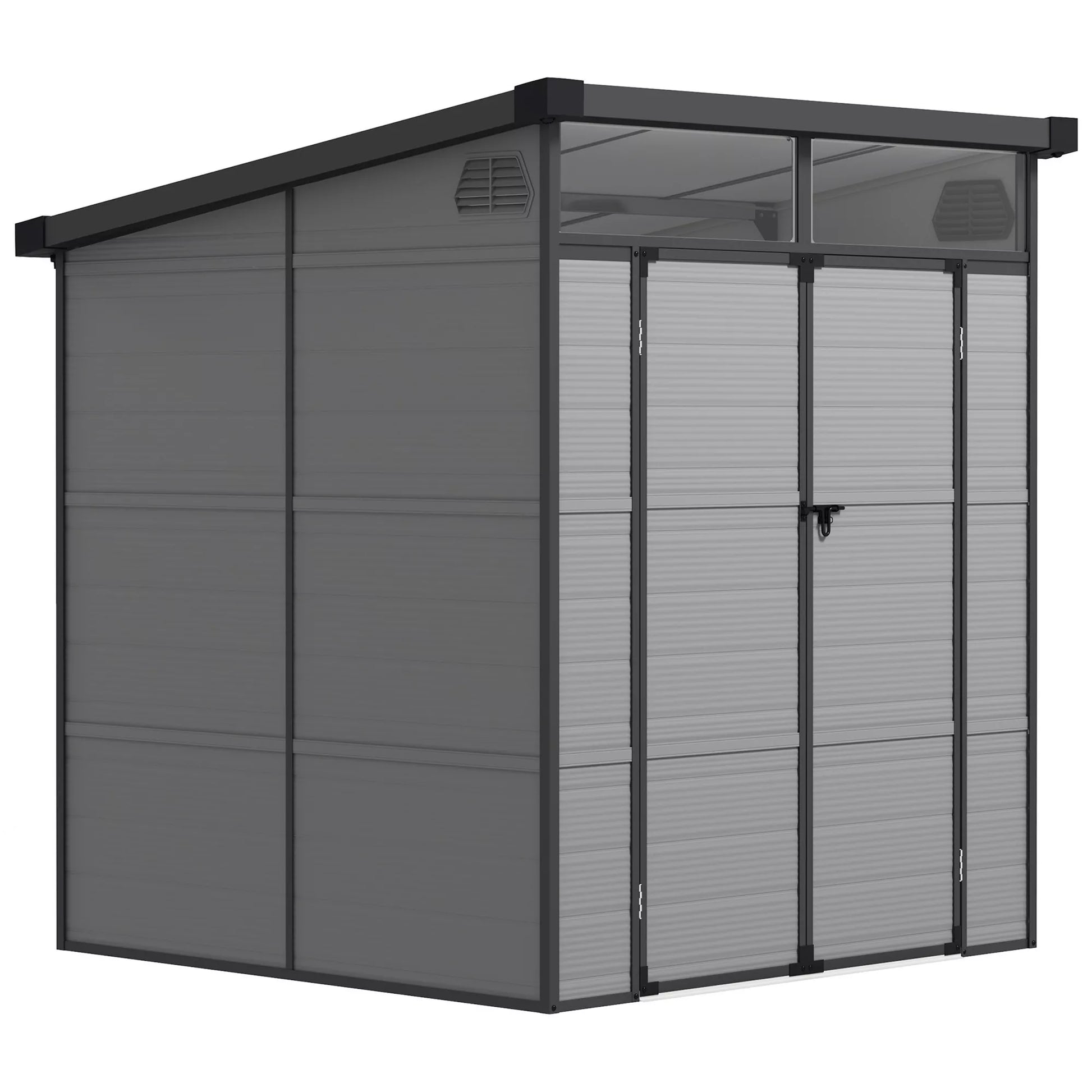 1,9 x 1,9 m sodo ir įrankių namelis iš plastiko, su užrakinamomis durimis, 2 ventiliacijos angomis, šviesiai pilkas