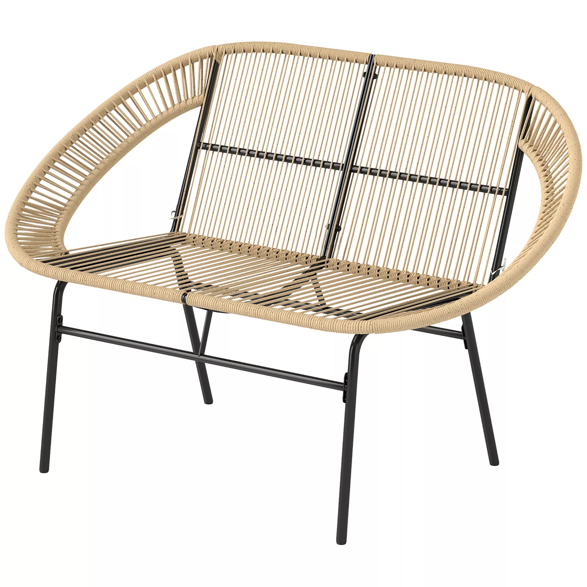 2 vietų sodo suolas Poliratano, atsparus oro sąlygoms Sėdimoji dalis ratano pynimo dizaino, atsparus UV spinduliams 260kg apkrova Chaki