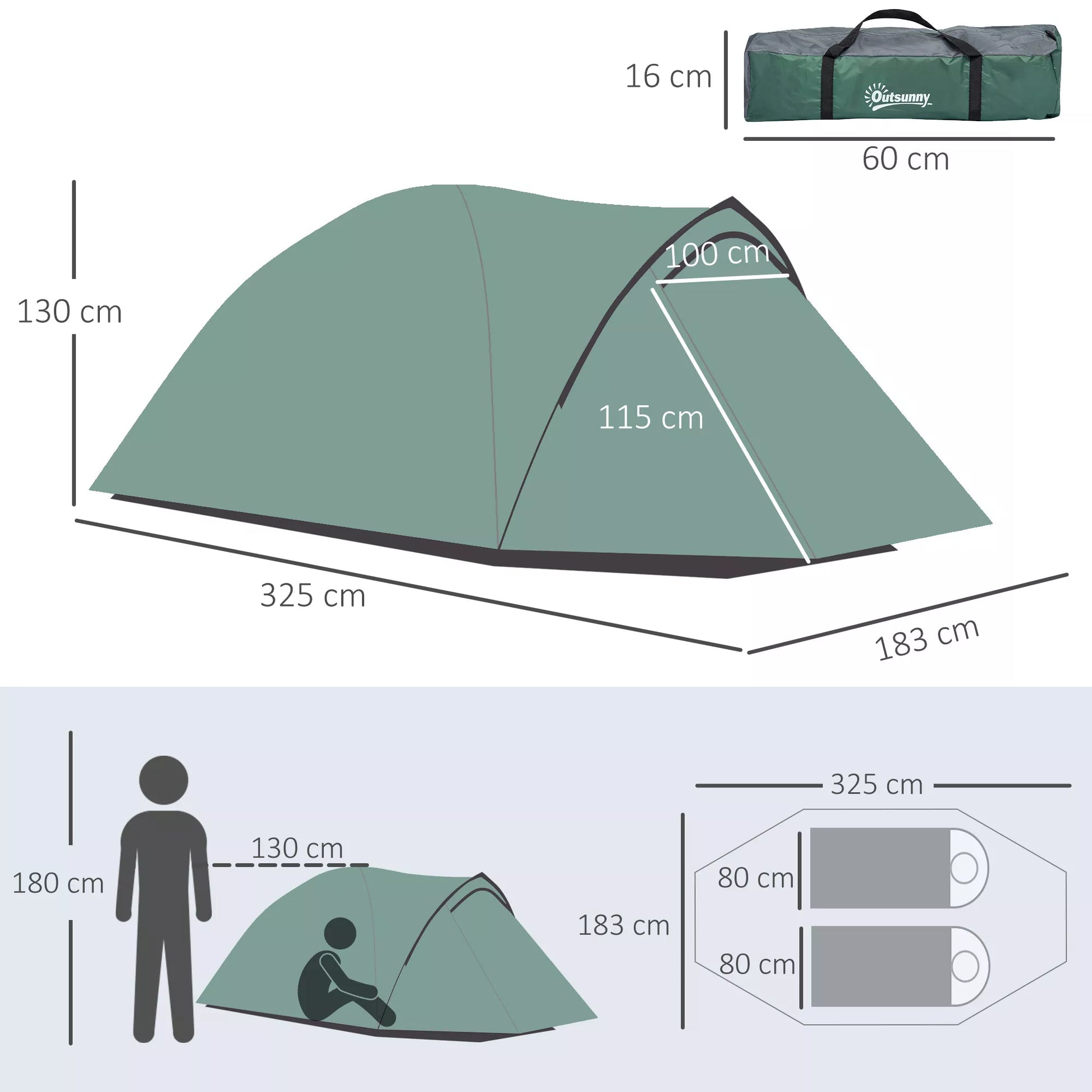 - ✔ Bendras Dydis: 325I x 183P x 130A cm