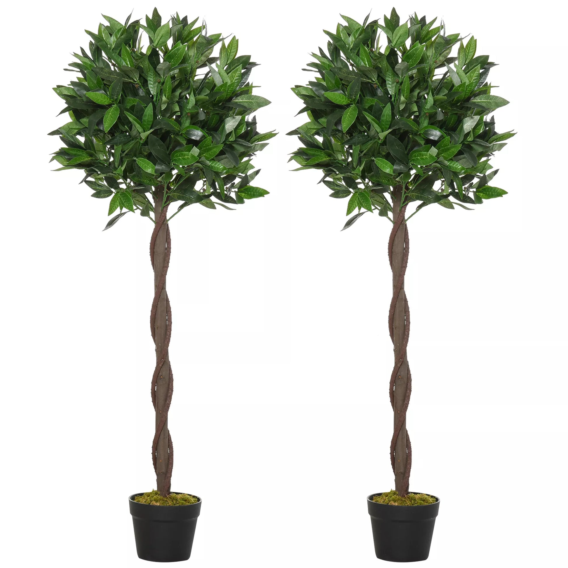 Rinkinys iš 2 dirbtinių lauramedžių, 120 cm, dirbtiniai augalai cemento vazone, plastikiniai augalai vidaus ir lauko sąlygoms, žali