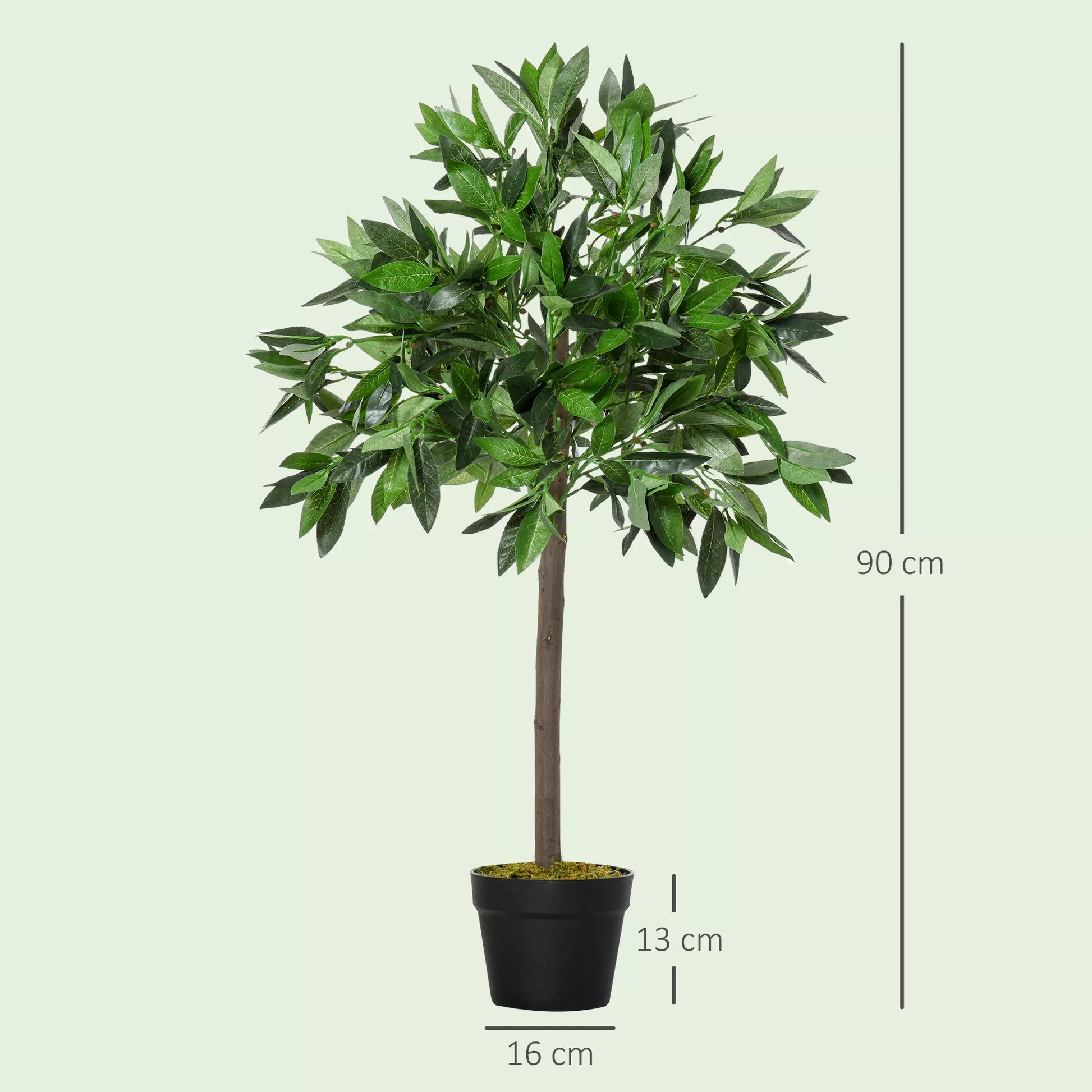 2 vnt. dirbtinių lauramedžių rinkinys, 90 cm, dirbtiniai augalai cementiniame vazone, plastikiniai augalai laukui ir patalpai, žali