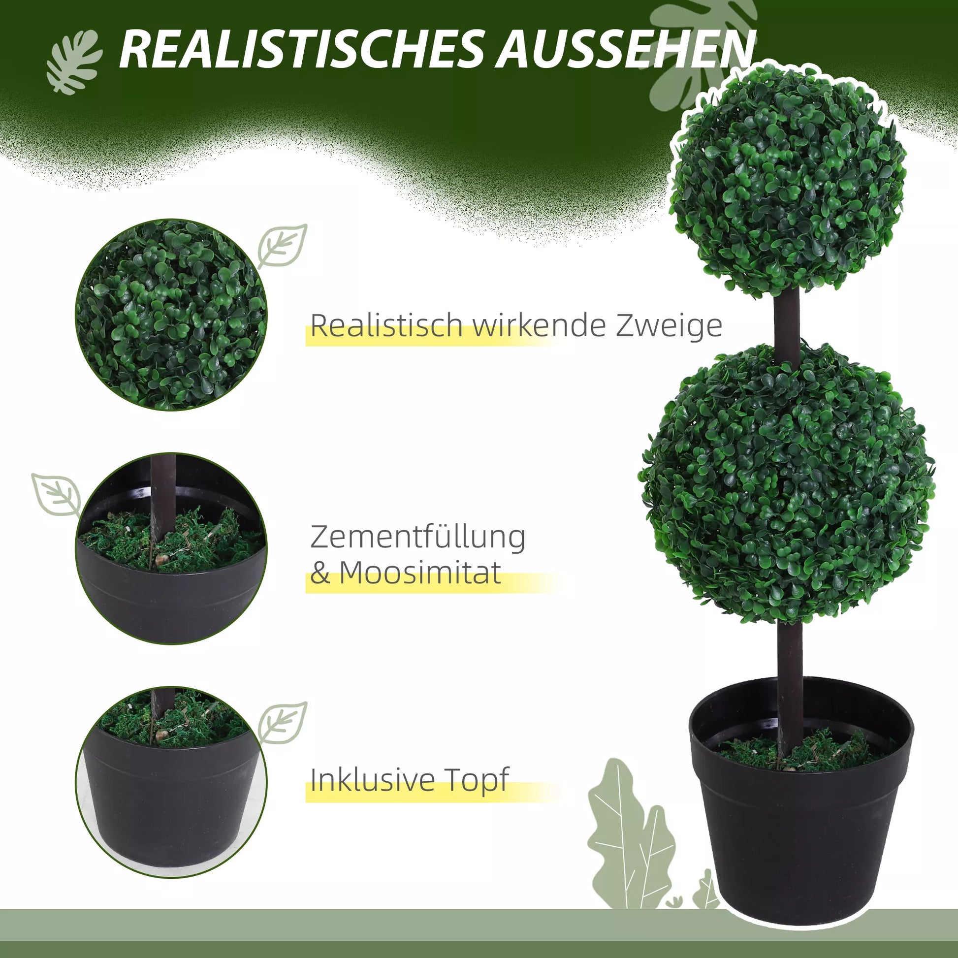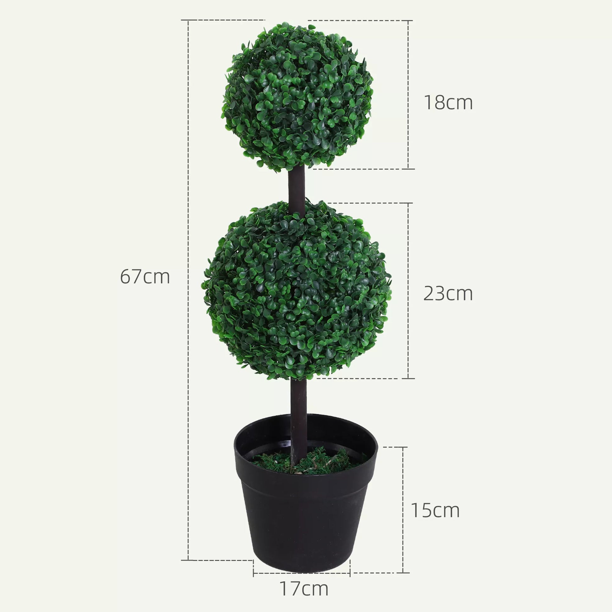 2 vnt. rinkinys Dirbtinis augalas, Dirbtiniai augalai rutulio dizaino, Dirbtinis medis cemento vazone, Plastikinis augalas, Žalias+Juodas